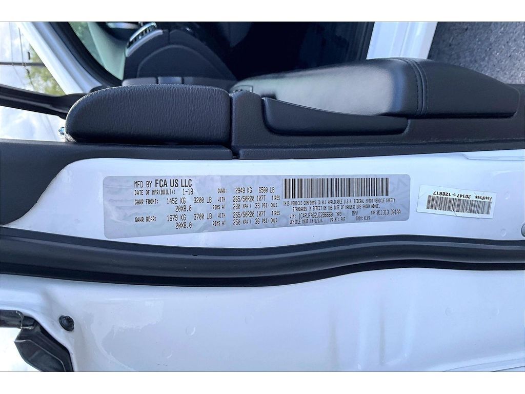 Equipment This unit keeps you comfortable with Auto Climate. Start the Jeep Grand Cherokee from inside with remote start. The leather seats in this unit are a must for buyers looking for comfort, durability, and style. Our dealership has already run the CARFAX report and it is clean. A clean CARFAX is a great asset for resale value in the future. The rear parking assist technology on this mid-size suv will put you at ease when reversing. The system alerts you as you get closer to an obstruction. The satellite radio system in the vehicle gives you access to hundreds of nation-wide radio stations with a clear digital signal. with XM/Sirus Satellite Radio you are no longer restricted by poor quality local radio stations while driving this model. Anywhere on the planet, you will have hundreds of digital stations to choose from. This mid-size suv offers Apple CarPlay for seamless connectivity. Packages Quick Order Package 2BZ Altitude: 1-Year SiriusXM Radio Service Body Color Fascia Front Accent/body Color Fascia Uconnect 4C Navigation Radio with 8.4' Display Rear View Auto Dim Mirror Body Color Shark Fin Antenna Rear Accent/body Color Fascia Power 8-Way Driver/manual Passenger Seat Power 4-Way Driver Lumbar Adjust Dark Headlamp Bezel Finish Body Color Claddings Delete Laredo Badge Altitude Grille 20' X 8.0' Gloss Black Aluminum Wheels Altitude IV Package Black Suede Seats with Black Stitching SiriusXM Satellite Radio Rear Fascia Black MIC Step Pad Steering Wheel Mounted Audio Controls Single Exhaust with Bright Tip Dark Day Light Opening Moldings Gloss Black Rear Fascia Applique Dark Lens Taillamps Jeep Black Gloss Badging. Security and Convenience Group: Remote Start System 115V Auxiliary Power Outlet Universal Garage Door Opener Heated Front Seats Heated Steering Wheel Power Liftgate Security Alarm. Power Sunroof. Equipment listed is based on original vehicle build and subject to change. Please confirm the accuracy of the included equipment by calling the dealer prior to purchase.