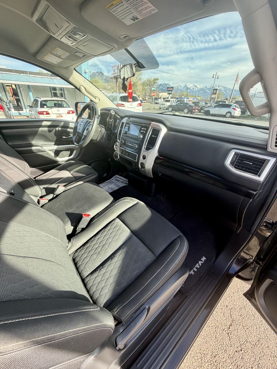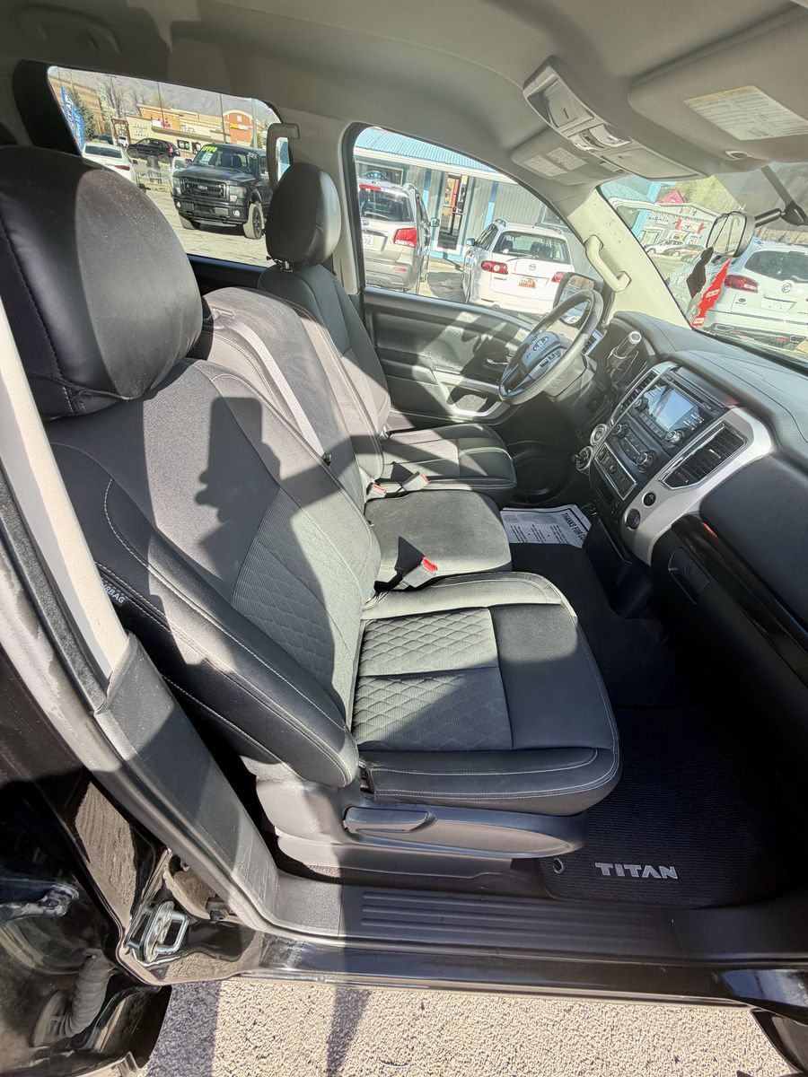Get ready to be impressed by this bold and dependable 2017 Nissan Titan Crew Cab SV Pickup! With its striking black exterior and spacious gray interior, this pickup is designed to turn heads wherever you go. Whether you need a reliable companion for work or a versatile truck for your weekend getaways, this Titan brings power and style together for an unforgettable driving experience.