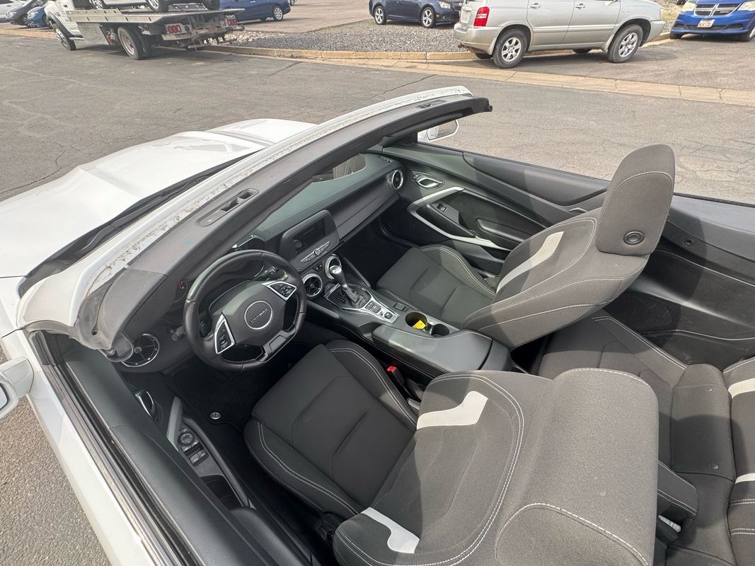 Sunroof/Moonroof,Bluetooth,Backup Camera,Convertible rear window: glass,Convertible roof: power remote operation, soft top,Driver seat power adjustments: height reclining, 8,Front headrests: adjustable 2,Front seat type: sport bucket,Passenger seat power adjustments: height reclining, 6,Rear seat type: bench,Upholstery: cloth,ABS: 4-wheel,Braking assist: ,Electronic brakeforce distribution: ,Electronic parking brake: auto off,Front brake diameter: 12.6,Front brake type: ventilated disc,Front brake width: 1.18,Power brakes: ,Rear brake diameter: 12.4,Rear brake type: ventilated disc,Rear brake width: 0.9,Battery: maintenance-free,Battery saver: ,Daytime running lights: LED,Headlights: LED auto delay off, auto on/off, wiper activated,Taillights: LED,Camera system: rearview,Child seat anchors: LATCH system,Crumple zones: front rear,Emergency interior trunk release: ,Programmable safety key: ,Rearview monitor: in dash,Airbag deactivation: occupant sensing passenger,Front airbags: dual,Knee airbags: dual front,Side airbags: front head protection chambers,Side mirror adjustments: power,Front wipers: variable intermittent,Power windows: safety reverse,Window defogger: rear,Anti-theft system: alarm vehicle immobilizer,Power door locks: anti-lockout,Steering ratio: 17,Turns lock-to-lock: 2.5,Front seatbelts: 3-point,Rear seatbelts: 3-point,Seatbelt pretensioners: front,Seatbelt warning sensor: front,Axle ratio: 3.27,Drive mode selector: ,Front shock type: twin-tube gas,Front spring type: coil,Front stabilizer bar: ,Front struts: MacPherson,Front suspension classification: independent,Front suspension type: double ball joint,Rear shock type: twin-tube gas,Rear spring type: coil,Rear stabilizer bar: ,Rear suspension classification: independent,Rear suspension type: multi-link,Tuned suspension: sport,Driver assistance app: roadside assistance,Electronic messaging assistance: voice operated with read function,Phone: voice operated,Satellite communications: OnStar voice guided directions,Smart device app compatibility: myChevrolet with Connected Access,Smart device app function: maintenance status,Wi-Fi: hotspot,Wireless data link: Bluetooth,Antenna type: diversity mast,Auxiliary audio input: Bluetooth USB, iPod/iPhone, jack,Radio: AM/FM touch screen display, voice operated,Radio data system: ,Satellite radio: SiriusXM,Speed sensitive volume control: ,Total speakers: 6,Spare tire kit: inflator kit tire sealant,Tire Pressure Monitoring System: ,Tire type: all season,Wheels: painted aluminum,Clock: ,Compass: ,Digital odometer: ,Fuel economy display: MPG range,Gauge: oil pressure tachometer,Instrument cluster screen size: 4.2 in.,Multi-function display: ,Trip odometer: ,Warnings and reminders: low fuel level low oil level, maintenance due,Air filtration: ,Front air conditioning: automatic climate control,Front air conditioning zones: single,Floor mat material: carpet,Floor material: carpet,Floor mats: front,Shift knob trim: leather,Steering wheel trim: leather,Door handle color: body-color,Exhaust: dual tip,Exhaust tip color: stainless steel,Front bumper color: body-color,Grille color: black,Mirror color: body-color,Rear bumper color: body-color,Rear spoiler: wing,Rear spoiler color: body-color,Window trim: black,Capless fuel filler system: ,Center console: front console with armrest and storage,Cruise control: ,Cupholders: front 2,Multi-function remote: panic alarm proximity entry system, trunk release,One-touch windows: 2,Power outlet(s): 12V front,Power steering: variable/speed-proportional,Push-button start: ,Reading lights: front,Rearview mirror: manual day/night,Steering wheel: tilt and telescopic,Steering wheel mounted controls: audio cruise control, voice control,Storage: door pockets,Vanity mirrors: dual,Connected in-car apps: Google POIs Google search,Infotainment: Chevrolet Infotainment System,Infotainment screen size: 7 in.,Smartphone integration: Android Auto Apple CarPlay,Stability control: ,Traction control: