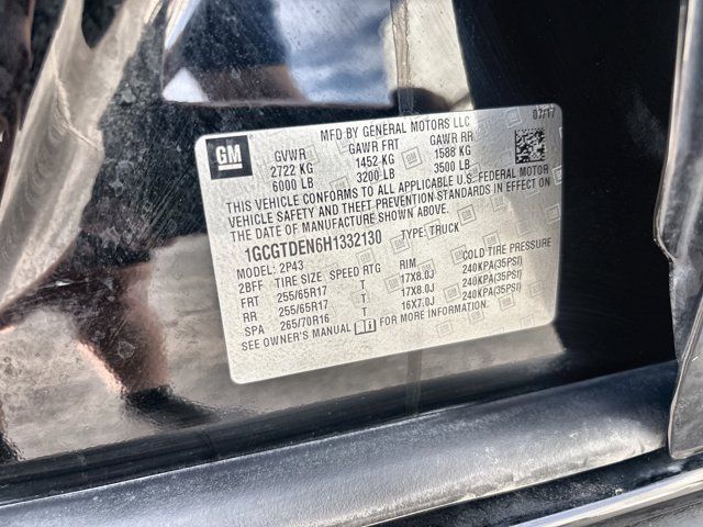 Discover the perfect blend of power, capability, and style in the 2017 Chevrolet Colorado Z71. This rugged midsize truck is built to conquer any terrain, whether you're tackling the daily commute or embarking on your next outdoor adventure.Boasting a 3.6L V6 engine and 8-speed automatic transmission with 4-wheel drive, the Colorado Z71 delivers impressive performance and exceptional off-road capabilities. Key features include:- Heavy-Duty Trailering Package- Black Spray-On Bedliner with Chevrolet Logo- Heated Driver and Front Passenger Seats- Power Driver and Passenger Seats with Lumbar Control- Integrated Trailer Brake Controller- Chevrolet MyLink Premium Audio System with 8 TouchscreenThis Colorado is also equipped with a wealth of advanced safety and technology features, including:- Rear Vision Camera- OnStar Guidance Emergency Communication System- Apple CarPlay- Dual-Zone Automatic Climate Control- Remote Keyless EntryWith its rugged good looks, refined interior, and exceptional capability, the 2017 Chevrolet Colorado Z71 is the perfect companion for your active lifestyle. Experience the difference for yourself and schedule a test drive today.This Colorado has been meticulously maintained and is ready to take you wherever the road (or trail) may lead. With just 50,648 miles on the odometer, it's a well-cared-for vehicle that still has plenty of life left.Discover the freedom and versatility of the 2017 Chevrolet Colorado Z71. Visit our showroom today and let us demonstrate how this capable truck can enhance your driving experience. We're confident you'll be impressed by its performance, features, and value. Take the first step towards your next adventure and come see us soon.KBB.com 10 Best Used Trucks Under $20,000. Only 50,648 Miles! Scores 24 Highway MPG and 17 City MPG! This Chevrolet Colorado boasts a Gas V6 3.6L/222 engine powering this Automatic transmission. Z71 PREFERRED EQUIPMENT GROUP includes standard equipment, TRANSMISSION, 8-SPEED AUTOMATIC (STD), TRAILERING PACKAGE, HEAVY-DUTY includes trailer hitch and 7-pin connector.* This Chevrolet Colorado Features the Following Options SEATS, FRONT BUCKET (STD), REAR AXLE, 3.42 RATIO, LICENSE PLATE KIT, FRONT, JET BLACK, CLOTH/LEATHERETTE SEAT TRIM, GVWR, 6000 LBS. (2722 KG) (STD), ENGINE, 3.6L DI DOHC V6 VVT (308 hp [230.0 kW] @ 6800 rpm, 275 lb-ft of torque [373 N-m] @ 4000 rpm) (STD), BLACK, BEDLINER, SPRAY-ON, BLACK WITH CHEVROLET LOGO, AUDIO SYSTEM, CHEVROLET MYLINK RADIO WITH 8 DIAGONAL COLOR TOUCH-SCREEN, AM/FM STEREO seek-and-scan and digital clock, includes Bluetooth streaming audio for music and select phones; voice-activated technology for radio and phone; featuring Apple CarPlay capability for compatible phone; includes auxiliary jack (STD), Windows, power with driver Express-Up and Down. The Votes are Counted KBB.com Best Resale Value Awards, KBB.com 10 Best Used Trucks Under $20,000, KBB.com 10 Most Awarded Brands. Visit Us Today *Treat yourself- stop by Larry H Miller Chevrolet Murray located at 5500 South State St, Murray, UT 84107 to make this car yours today!