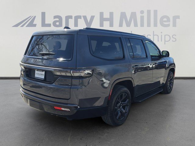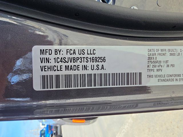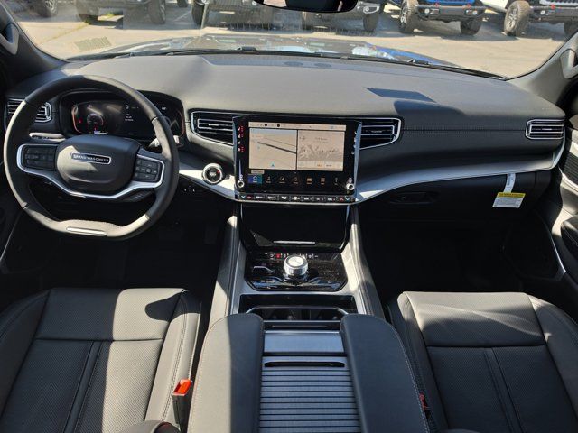 Quick Order Package 29X Altitude,MyFlexCare Service Plan,HD Trailer Tow Package,Altitude Appearance Package,Selec-Speed Control,2 Speed on Demand Transfer Case,Electronic Rear Limited Slip Differential,Leather Trimmed Bucket Seats,Auto-Dimming Exterior Driver Mirror,118 Mph Maximum Speed Calibration,Trailer Light Monitoring,Heated Exterior Mirrors,Exterior Mirrors Approach Lamps,Exterior Mirrors with Supplemental Signals,Exterior Mirrors with Memory,Auto Adjust in Reverse Exterior Mirrors,Black Exterior Accents,Titanium Upper Grille Applique,Titanium Daylight Opening Upper,Adjustable Roof Rail Crossbars,Normal Duty Suspension,Radio: Uconnect 5 Nav with 12.0 Display,Wheels: 20 x 9 Aluminum Painted,Trailer Tire Pressure Monitoring System,Trailer Brake Control,Trailer Hitch Zoom,Blind Spot with Trailer Detection,Removable Rear Tow Hooks,Vapor Tow Hooks,Manufacturer Statement of Origin,4-Wheel Disc Brakes,Emergency communication system: Jeep Connect,Apple CarPlay/Android Auto,AM/FM radio: SiriusXM with 360L,Auto High-beam Headlights,Exterior Parking Camera Rear,Driver's Seat Mounted Armrest,Front Center Armrest w/Storage,Compass,Speed-Sensitive Wipers,Auto-dimming Rear-View mirror,Ventilated rear seats,Ventilated front seats,Variably intermittent wipers,Turn signal indicator mirrors,Trip computer,Traction control,Tilt steering wheel,Telescoping steering wheel,Steering wheel mounted audio controls,Steering wheel memory,Split folding rear seat,Speed-sensing steering,Speed control,Security system,Remote keyless entry,Reclining 3rd row seat,Rear window wiper,Rear window defroster,Rear seat center armrest,Rear reading lights,Rear anti-roll bar,Rear air conditioning,Rain sensing wipers,Radio data system,Power windows,Power steering,Power passenger seat,Power driver seat,Power door mirrors,Passenger vanity mirror,Passenger seat mounted armrest,Passenger door bin,Panic alarm,Overhead console,Overhead airbag,Outside temperature display,Occupant sensing airbag,Memory seat,Low tire pressure warning,Knee airbag,Illuminated entry,Heated steering wheel,Heated rear seats,Heated front seats,Heated door mirrors,Garage door transmitter,Fully automatic headlights,Front reading lights,Front fog lights,Front dual zone A/C,Front anti-roll bar,Four wheel independent suspension,Dual front side impact airbags,Dual front impact airbags,Driver vanity mirror,Driver door bin,Delay-off headlights,Bumpers: body-color,Brake assist,Automatic temperature control,Auto-leveling suspension,Auto-dimming door mirrors,Audio memory,Anti-whiplash front head restraints,Alloy wheels,ABS brakes,3rd row seats: bench,Voltmeter,Tachometer,Power Liftgate,Navigation System,Front Bucket Seats,Electronic Stability Control,Air Conditioning,Adaptive Cruise Control,9 Speakers,3.92 REAR AXLE RATIO,MYFLEXCARE SERVICE PLAN,275/55R20 BSW ALL SEASON TIRES,7 400 LBS GVWR (STD),QUICK ORDER PACKAGE 29X ALTITUDE -inc: 3.0L I6 Hurricane SO Twin Turbo ESS Engine 8-Speed Auto 880RE Transmission Altitude Appearance Package Titanium Upper Grille Applique Titanium Daylight Opening Upper Black Exterior Accents,8-SPEED AUTO 880RE TRANSMISSION (STD),MANUFACTURER STATEMENT OF ORIGIN,3.0L I6 HURRICANE SO TWIN TURBO ESS ENGINE (STD),BALTIC GRAY METALLIC CLEARCOAT,HD TRAILER TOW PACKAGE -inc: Trailer Light Monitoring 275/55R20 BSW All Season Tires Removable Rear Tow Hooks Trailer Tire Pressure Monitoring System Vapor Tow Hooks Trailer Brake Control Electronic Rear Limited Slip Differential Trailer Hitch Zoom 2 Speed On Demand Transfer Case Adjustable Roof Rail Crossbars 3.92 Rear Axle Ratio Selec-Speed Control Blind Spot w/Trailer Detection,GLOBAL BLACK LEATHER TRIMMED BUCKET SEATS,Turbocharged,Four Wheel Drive,Tow Hitch,Power Steering,ABS,4-Wheel Disc Brakes,Brake Assist,Locking/Limited Slip Differential,Aluminum Wheels,Tires - Front Performance,Tires - Rear Performance,Conventional Spare Tire,Power Folding Mirrors,Heated Mirrors,Integrated Turn Signal Mirrors,Power Mirror(s),Rear Defrost,Privacy Glass,Intermittent Wipers,Variable Speed Intermittent Wipers,Rain Sensing Wipers,Running Boards/Side Steps,Remote Trunk Release,Power Liftgate,Power Door Locks,Daytime Running Lights,Automatic Headlights,LED Headlights,Fog Lamps,Automatic Highbeams,AM/FM Stereo,Navigation System,Bluetooth Connection,Premium Sound System,Satellite Radio,MP3 Capability,Steering Wheel Audio Controls,Auxiliary Audio Input,HD Radio,Requires Subscription,Premium Sound System,Bluetooth Connection,Power Driver Seat,Power Passenger Seat,Driver Adjustable Lumbar,Seat Memory,Heated Front Seat(s),Cooled Front Seat(s),Power Driver Seat,Driver Adjustable Lumbar,Power Passenger Seat,Passenger Adjustable Lumbar,Bucket Seats,Rear Bucket Seats,Heated Rear Seat(s),Cooled Rear Seat(s),Adjustable Steering Wheel,Trip Computer,Power Windows,WiFi Hotspot,3rd Row Seat,Heated Steering Wheel,Keyless Entry,Power Door Locks,Keyless Start,Keyless Entry,Power Door Locks,Hands-Free Liftgate,Universal Garage Door Opener,Cruise Control,Adaptive Cruise Control,Climate Control,Multi-Zone A/C,A/C,A/C,Rear A/C,Leather Seats,Bucket Seats,Auto-Dimming Rearview Mirror,Driver Vanity Mirror,Passenger Vanity Mirror,Driver Illuminated Vanity Mirror,Passenger Illuminated Visor Mirror,Floor Mats,Seat Memory,Remote Engine Start,Keyless Start,Remote Engine Start,Smart Device Integration,Requires Subscription,Navigation System,Smart Device Integration,Mirror Memory,Power Windows,Power Door Locks,Trip Computer,Security System,Immobilizer,Cruise Control Steering Assist,Traction Control,Stability Control,Traction Control,Front Side Air Bag,Telematics,Requires Subscription,Cross-Traffic Alert,Rear Collision Mitigation,Cross-Traffic Alert,Lane Departure Warning,Lane Keeping Assist,Lane Departure Warning,Front Collision Mitigation,Driver Monitoring,Rear Parking Aid,Blind Spot Monitor,Tire Pressure Monitor,Driver Air Bag,Passenger Air Bag,Front Head Air Bag,Rear Head Air Bag,Passenger Air Bag Sensor,Knee Air Bag,Child Safety Locks,Back-Up Camera