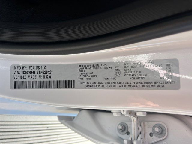 Quick Order Package 27M Limited,MyFlexCare Service Plan,Limited Level A Equipment Group,240 Amp Alternator,Tri-Fold Tonneau Cover,3.92 Rear Axle Ratio,Auto-Dimming Exterior Driver Mirror,Smartphone as a Key Capable,GPS Navigation,GPS Antenna Input,Active Noise Control System,Heads-Up Display,Exterior Mirrors with Supplemental Signals,Exterior Mirrors Courtesy Lamps,Exterior Mirrors with Memory,Chrome Exterior Mirrors,Convex Wide-Angle Exterior Mirror Insert,Auto Power-Folding Mirrors,LED CHMSL Lamp,Front License Plate Bracket,Exterior Mirrors with Heating Element,Global Telematics Box Module,HD Radio,Google Android Auto,USB Host Flip,Apple CarPlay,Disassociated Touchscreen Display,14.4 Touchscreen Display,Integrated Center Stack Radio,Connectivity - US/Canada,4G LTE Wi-Fi Hot Spot,SiriusXM with 360L,Connected Travel and Traffic Services,Premium Quilted Leather Bucket Seats,Traffic Sign Recognition,Hands-Free Active Driving Assist System,Evasive Steer Assist,Radio: Uconnect 5 Navigation with 12.0 Display,Radio: Uconnect 5 Nav with 14.4 Display,Wheels: 20 x 9 Premium Paint/Polished,SiriusXM Radio Service,Surround View Camera System,RamBox Cargo Management System,Exterior 115V AC Outlet,12-Way/1-Way Trailer Connector,Trailer Brake Control,Drowsy Driver Detection,Intersection Collision Assist System,Integrated Voice Command with Bluetooth,Manufacturer's Statement of Origin,4-Wheel Disc Brakes,Apple CarPlay/Android Auto,harman/kardon® Speakers,Auto High-beam Headlights,Exterior Parking Camera Rear,Front Center Armrest w/Storage,Compass,19 Speakers,Auto-dimming Rear-View mirror,Ventilated rear seats,Ventilated front seats,Variably intermittent wipers,Turn signal indicator mirrors,Trip computer,Traction control,Tilt steering wheel,Telescoping steering wheel,Steering wheel mounted audio controls,Split folding rear seat,Speed control,Security system,Remote keyless entry,Rear window defroster,Rear step bumper,Rear seat center armrest,Rear reading lights,Rear anti-roll bar,Rain sensing wipers,Radio data system,Power windows,Power steering,Power passenger seat,Power driver seat,Power door mirrors,Pedal memory,Passenger vanity mirror,Passenger door bin,Panic alarm,Overhead console,Overhead airbag,Outside temperature display,Occupant sensing airbag,Memory seat,Low tire pressure warning,Leather steering wheel,Illuminated entry,Heated steering wheel,Heated rear seats,Heated front seats,Heated door mirrors,Genuine wood door panel insert,Genuine wood dashboard insert,Genuine wood console insert,Garage door transmitter,Fully automatic headlights,Front wheel independent suspension,Front reading lights,Front fog lights,Front dual zone A/C,Front anti-roll bar,Dual front side impact airbags,Dual front impact airbags,Driver vanity mirror,Driver door bin,Delay-off headlights,Bumpers: chrome,Brake assist,Bodyside moldings,Automatic temperature control,Auto-leveling suspension,Auto-dimming door mirrors,Audio memory,Alloy wheels,Adjustable pedals,AM/FM radio,ABS brakes,Voltmeter,Tachometer,Navigation System,Front Bucket Seats,Electronic Stability Control,Air Conditioning,Adaptive Cruise Control,MYFLEXCARE SERVICE PLAN,BLACK PREMIUM QUILTED LEATHER BUCKET SEATS,IVORY WHITE TRI-COAT PEARLCOAT,TIRES: 275/55R20 OWL ALL SEASON (STD),MANUFACTURER'S STATEMENT OF ORIGIN,RADIO: UCONNECT 5 NAV W/14.4 DISPLAY,LIMITED LEVEL A EQUIPMENT GROUP -inc: Surround View Camera System LED CHMSL Lamp Tri-Fold Tonneau Cover Traffic Sign Recognition RamBox Cargo Management System Hands-Free Active Driving Assist System Head Up Display Evasive Steer Assist Drowsy Driver Detection Exterior 115V AC Outlet Intersection Collision Assist System Smartphone As A Key Capable 14.4 Touchscreen Display Radio: Uconnect 5 Nav w/14.4 Display 240 Amp Alternator 12-Way/1-Way Trailer Connector,TRI-FOLD TONNEAU COVER,ENGINE: 5.7L V8 HEMI MDS VVT ETORQUE -inc: 48V Belt Starter Generator Heavy Duty Engine Cooling Passive Tuned Mass Damper Delete Alternator G/T Exhaust 18 Aluminum Spare Wheel,TRANSMISSION: 8-SPEED AUTOMATIC (8HP75) (STD),TRAILER BRAKE CONTROL,FRONT LICENSE PLATE BRACKET,WHEELS: 20 X 9 PREMIUM PAINT/POLISHED (STD),QUICK ORDER PACKAGE 27M LIMITED -inc: Engine: 5.7L V8 HEMI MDS VVT eTorque Transmission: 8-Speed Automatic (8HP75),Four Wheel Drive,Tow Hitch,Air Suspension,Power Steering,Air Suspension,Air Suspension,ABS,4-Wheel Disc Brakes,Brake Assist,Locking/Limited Slip Differential,Aluminum Wheels,Tires - Front Performance,Tires - Rear Performance,Bed Liner,Conventional Spare Tire,Tow Hooks,Power Mirror(s),Integrated Turn Signal Mirrors,Power Folding Mirrors,Heated Mirrors,Rear Defrost,Privacy Glass,Intermittent Wipers,Variable Speed Intermittent Wipers,Rain Sensing Wipers,Running Boards/Side Steps,Power Retractable Running Boards,Power Door Locks,Fog Lamps,Automatic Highbeams,Daytime Running Lights,Automatic Headlights,LED Headlights,AM/FM Stereo,Navigation System,Satellite Radio,Bluetooth Connection,HD Radio,Requires Subscription,Premium Sound System,MP3 Capability,Steering Wheel Audio Controls,Auxiliary Audio Input,Premium Sound System,HD Radio,Satellite Radio,Requires Subscription,Heated Front Seat(s),Cooled Front Seat(s),Power Driver Seat,Power Passenger Seat,Driver Adjustable Lumbar,Seat Memory,Seat-Massage,Power Driver Seat,Driver Adjustable Lumbar,Seat-Massage,Power Passenger Seat,Passenger Adjustable Lumbar,Seat-Massage,Pass-Through Rear Seat,Heated Rear Seat(s),Cooled Rear Seat(s),Rear Bench Seat,Adjustable Steering Wheel,Trip Computer,Power Windows,Leather Steering Wheel,Heated Steering Wheel,Keyless Entry,Power Door Locks,Keyless Entry,Power Door Locks,Keyless Start,Universal Garage Door Opener,Cruise Control,Adaptive Cruise Control,Climate Control,Multi-Zone A/C,A/C,Woodgrain Interior Trim,Leather Seats,Bucket Seats,Premium Synthetic Seats,Auto-Dimming Rearview Mirror,Driver Vanity Mirror,Passenger Vanity Mirror,Driver Illuminated Vanity Mirror,Passenger Illuminated Visor Mirror,Floor Mats,Remote Engine Start,Smart Device Integrati