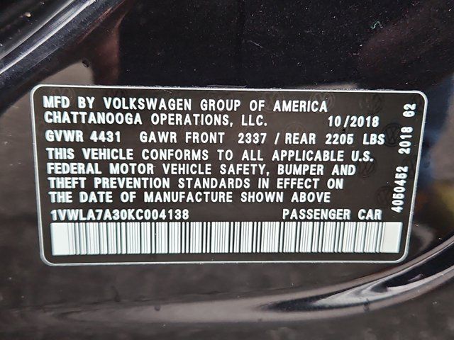 Ken Garff Chevrolet is very proud to offer this good-looking 2019 Volkswagen Passat. The 2.0T Wolfsburg is a refined midsize sedan that blends comfort, performance, and German engineering. Powered by a responsive 2.0-liter turbocharged engine, it delivers smooth acceleration and confident highway cruising. The Wolfsburg Edition adds premium touches like leather seating, heated front seats, dual-zone climate control, and advanced tech features. With a spacious cabin, generous trunk space, and composed handling, this Passat offers a comfortable, stylish ride perfect for daily driving and long trips.25/36 City/Highway MPG Includes GarffCare! (Complimentary Towing along Wasatch Front, Roadside Assistance, Complimentary Annual State Safety Inspection, Flat Tire Repair, and Car Wash with every Service Visit)Recent Arrival! Black 2019 Volkswagen Passat 2.0T WolfsburgAwards: * 2019 KBB.com 10 Most Comfortable Cars Under $30,000
