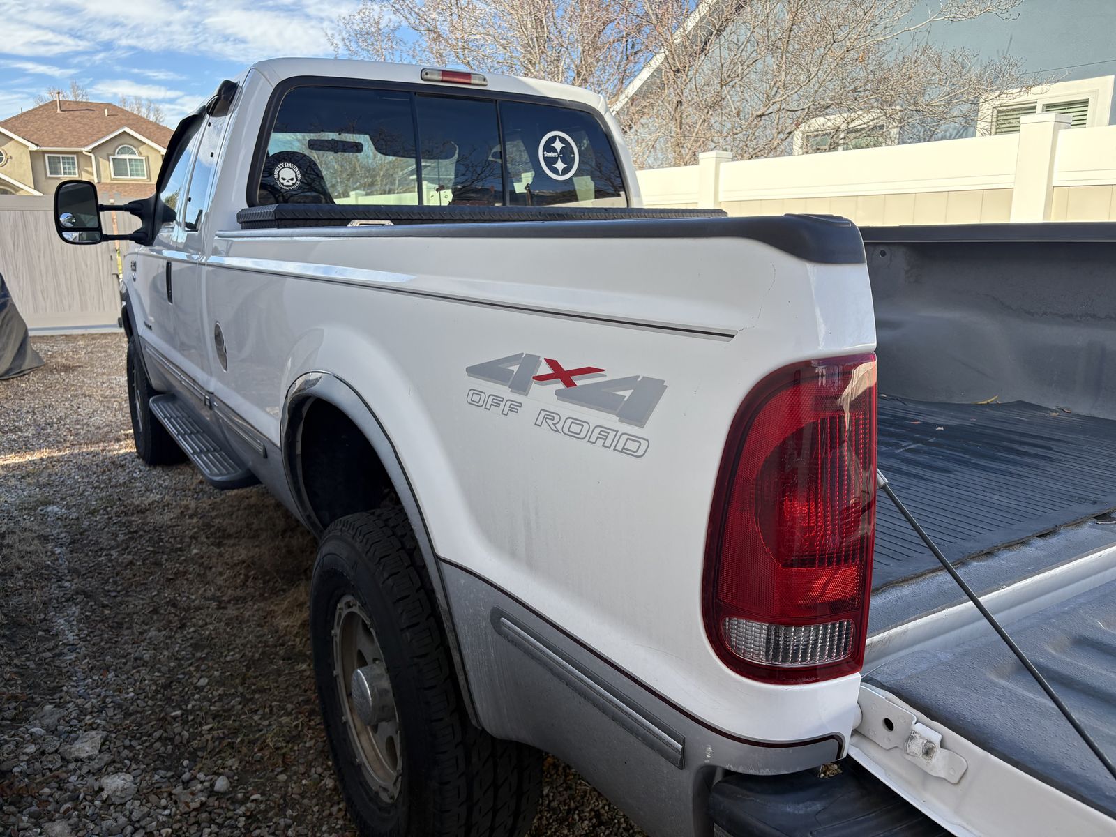 $27,500 -1999 Ford 7.3L Diesel, 50,000 miles. Equipped with a 4-inch exhaust, a 60 HP chip, and triple gauges on the pillar for transmission temperature, pyrometer, and boost pressure.