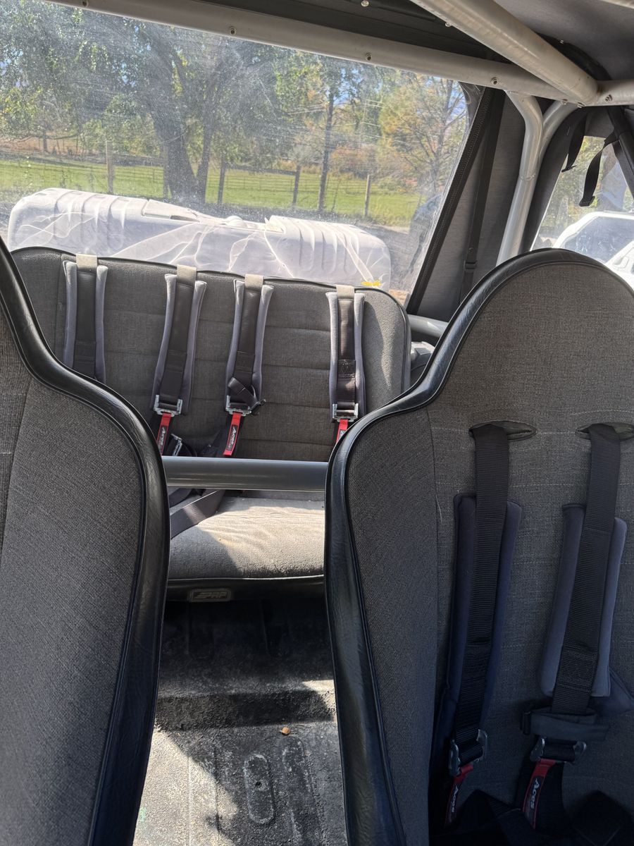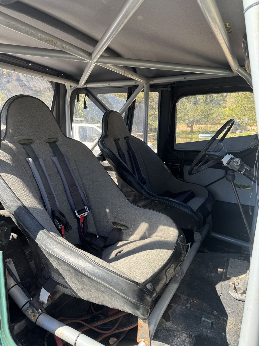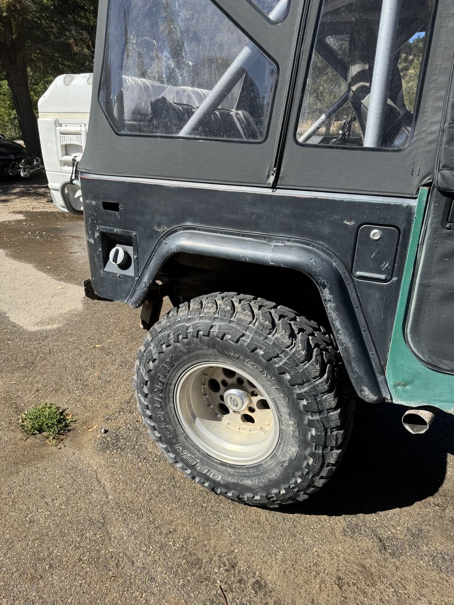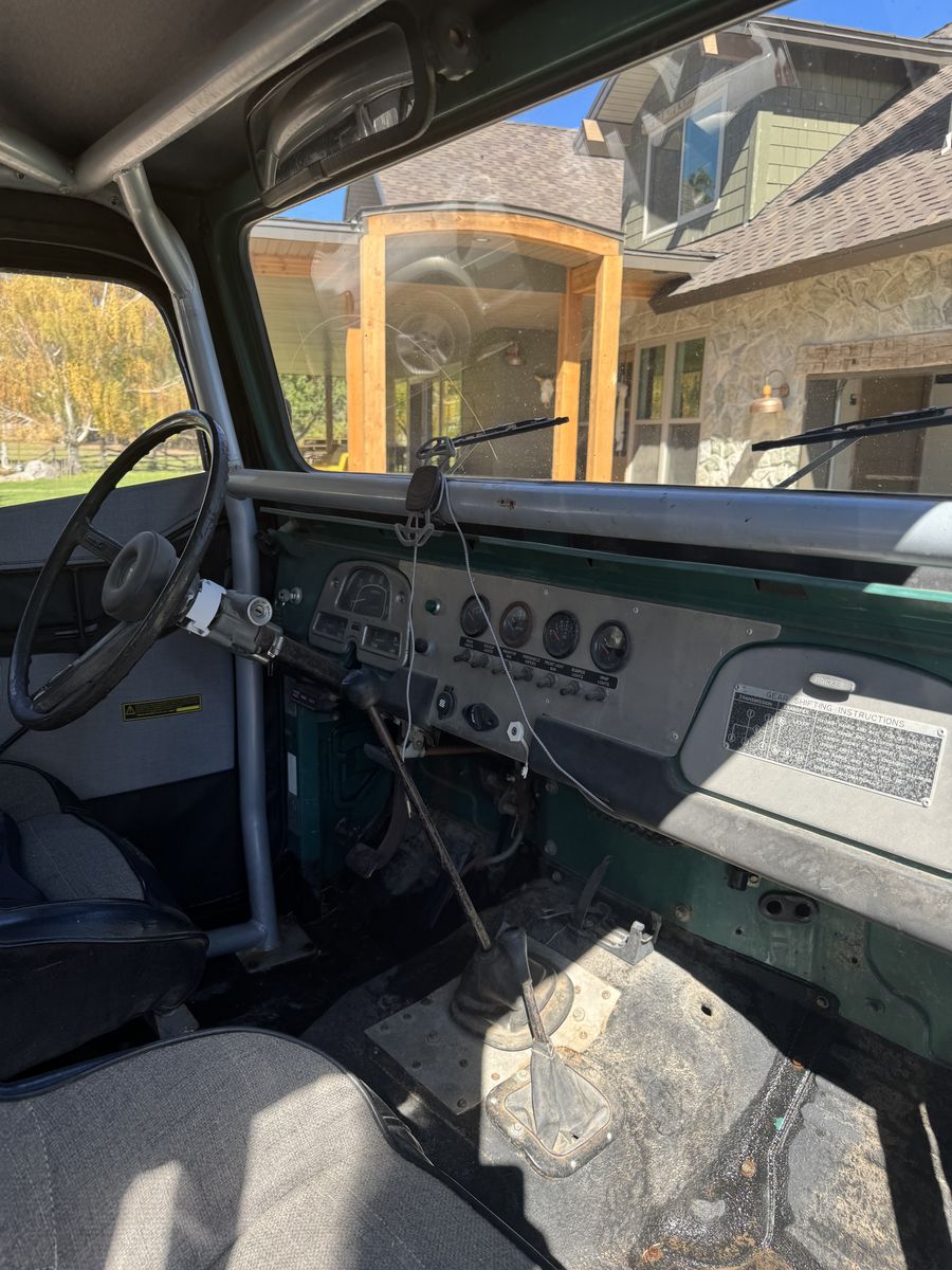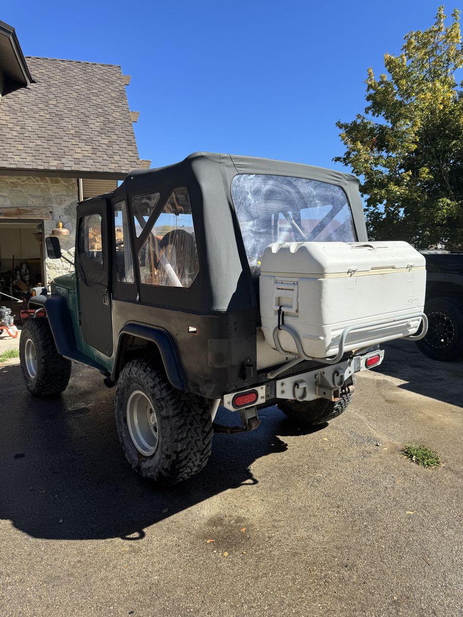 1976 Toyota Land Cruiser FJ40, powered by a Chevy V8 swap.==This upgraded, classic 4x4 features power steering for easy handling, custom wiring, race seats, and a brand-new soft top==. A powerful, reliable, and classic trail-ready rig combining vintage style with modern performance improvements.