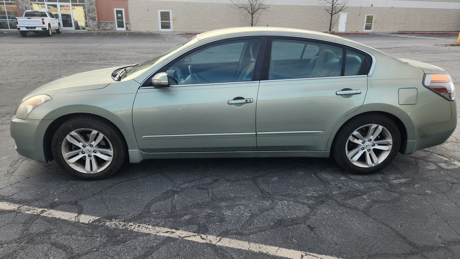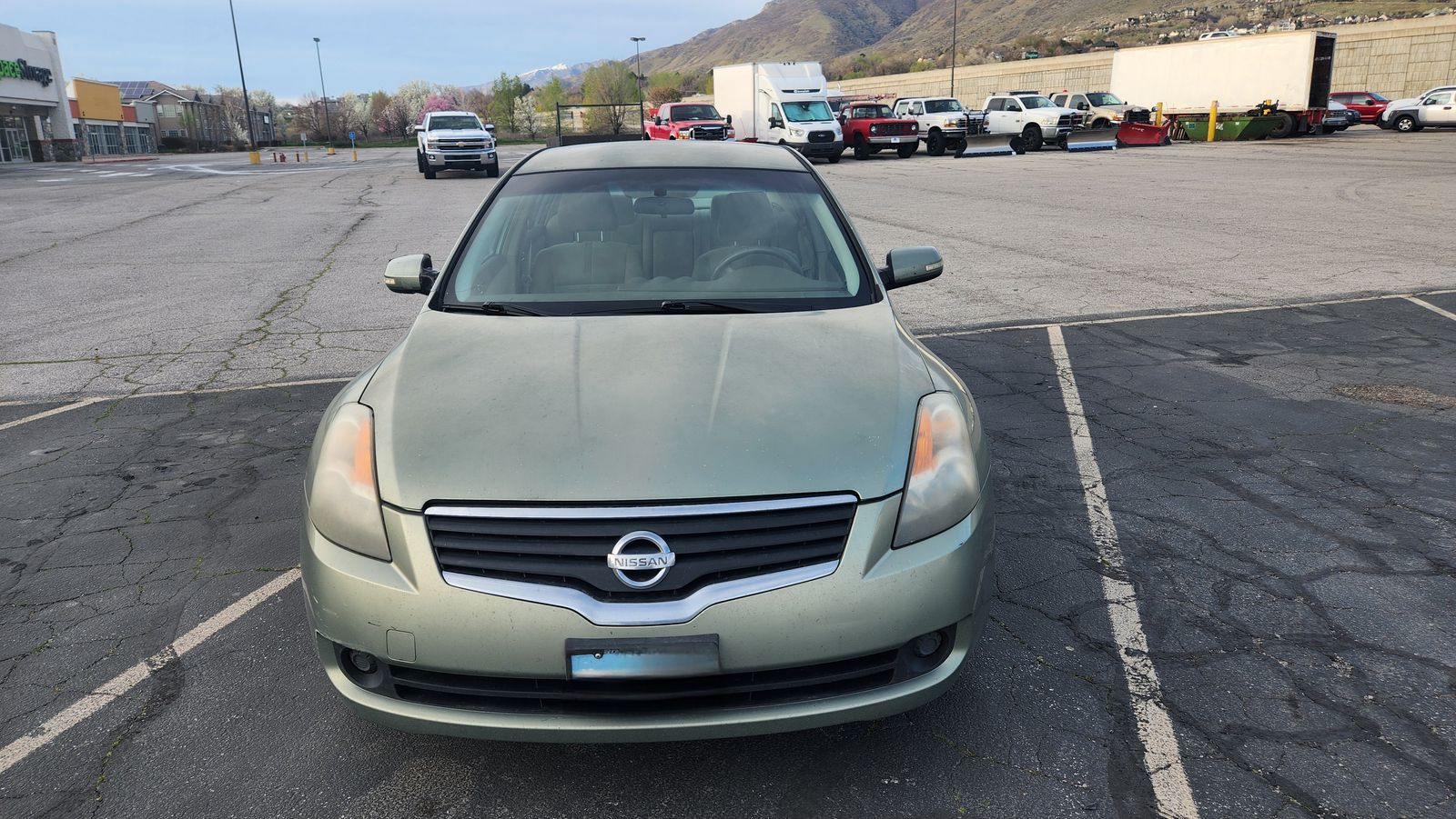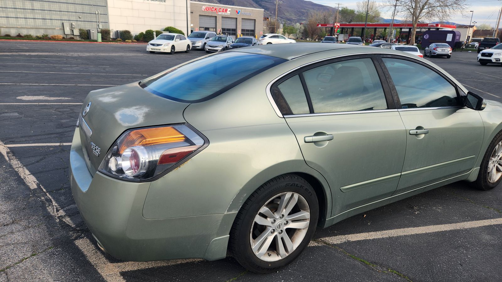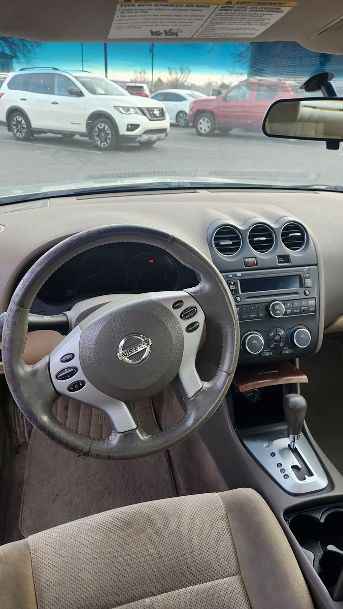The exterior has sun spots and the passenger mirror is currently taped on. The AC and heater need repaired.