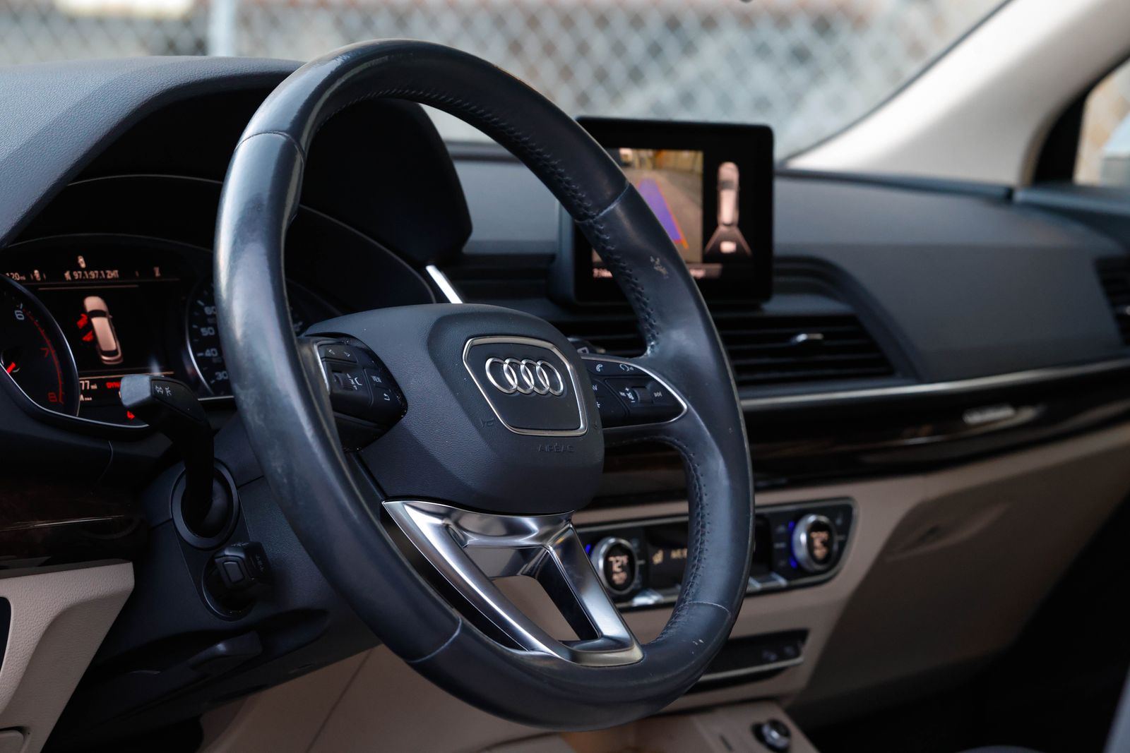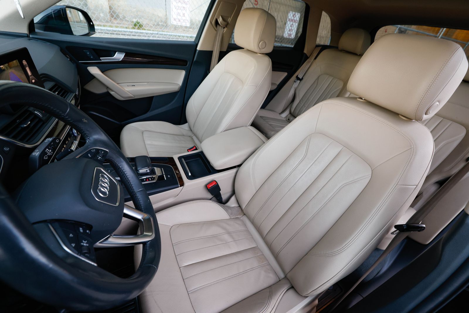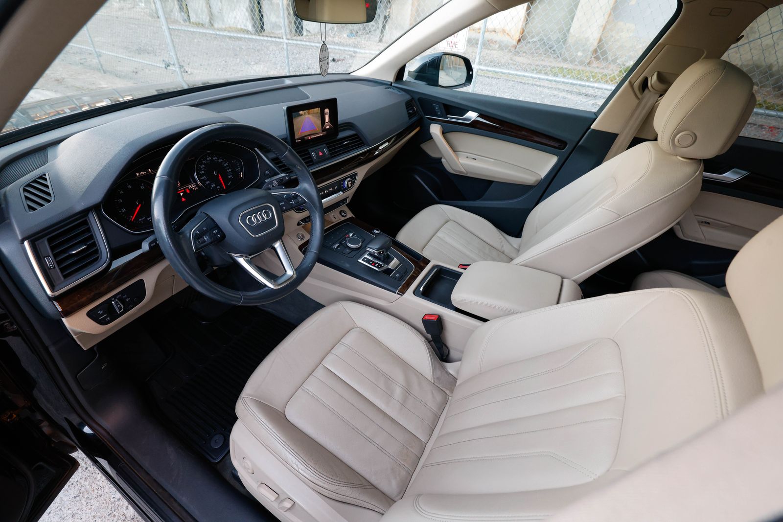 Clean title Q5 quattro (AWD) in Mythos Black metallic with Atlas Beige leather interior. 2.0 TFSI I4 engine and 7-speed S tronic automatic transmission produces 248 hp and 273 ft-lb of torque. Gas mileage: 22 city, 28 highway.