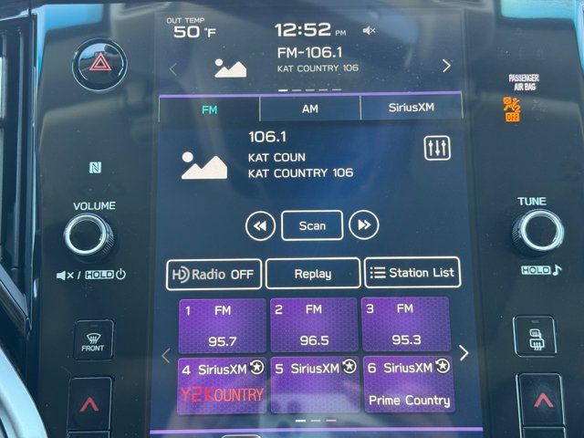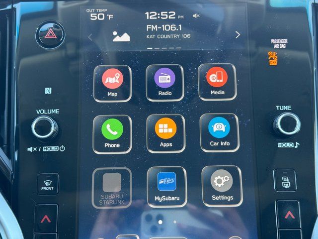 ROCKFORD FOSGATE AUDIO UPGRADE -inc: Part number H630SAN000,CRYSTAL WHITE PEARL,POWER MOONROOF & NAVIGATION & RAB -inc: Reverse Automatic Braking (RAB) audible warning off indicator Power Moonroof Radio: Subaru STARLINK 11.6 Multimedia Nav System AM/FM stereo HD Radio voice activated controls and navigation Bluetooth audio streaming and hands-free phone connectivity w/SMS text messaging (applicable w/compatible cellphone) Near Field Communication (NFC) iPod control capability SiriusXM All Access radio (4 months free trial/subscription required after) SiriusXM Traffic (3 years free trial/subscription required after) SiriusXM Travel Link (3 years free trial/subscription required after) smartphone integration: Android Auto CarPlay and STARLINK cloud applications 6 speakers 3.5mm auxiliary input jack and dual USB input ports,WIRELESS CHARGER -inc: Part number H671SAN200,GRAY STARTEX-TRIMMED UPHOLSTERY -inc: green stitching,POPULAR PACKAGE #2 -inc: Auto-Dimming Exterior Mirror w/Approach Light Part number J201SAN000 Splash Guards Part number J101SAN100 Dome Light LED Upgrade Part number H461SFL110 All-Weather Floor Liners Part number J501SAN100 Rear Seat Back Protector Part number J501SAN221 Rear Bumper Cover Part number E771SAN100,Turbocharged,All Wheel Drive,Power Steering,ABS,4-Wheel Disc Brakes,Brake Assist,Brake Actuated Limited Slip Differential,Aluminum Wheels,Tires - Front All-Season,Tires - Rear All-Season,Conventional Spare Tire,Heated Mirrors,Power Mirror(s),Integrated Turn Signal Mirrors,Rear Defrost,Privacy Glass,Intermittent Wipers,Variable Speed Intermittent Wipers,Rear Spoiler,Remote Trunk Release,Power Liftgate,Power Door Locks,Luggage Rack,Daytime Running Lights,Automatic Headlights,Headlights-Auto-Leveling,LED Headlights,Automatic Highbeams,Fog Lamps,AM/FM Stereo,Satellite Radio,MP3 Capability,Bluetooth Connection,Telematics,Auxiliary Audio Input,HD Radio,Smart Device Integration,Requires Subscription,MP3 Capability,Steering Wheel Audio Controls,Bluetooth Connection,Power Driver Seat,Power Passenger Seat,Bucket Seats,Heated Front Seat(s),Driver Adjustable Lumbar,Pass-Through Rear Seat,Heated Rear Seat(s),Rear Bench Seat,Adjustable Steering Wheel,Trip Computer,Power Windows,Telematics,Requires Subscription,Leather Steering Wheel,Keyless Entry,Power Door Locks,Keyless Entry,Power Door Locks,Keyless Start,Hands-Free Liftgate,Universal Garage Door Opener,Cruise Control,Adaptive Cruise Control,Climate Control,Multi-Zone A/C,A/C,Premium Synthetic Seats,Driver Vanity Mirror,Passenger Vanity Mirror,Driver Illuminated Vanity Mirror,Passenger Illuminated Visor Mirror,Auto-Dimming Rearview Mirror,Floor Mats,Cargo Shade,Keyless Start,Smart Device Integration,Smart Device Integration,Requires Subscription,Power Door Locks,Power Windows,Trip Computer,Security System,Immobilizer,Cruise Control Steering Assist,Traction Control,Stability Control,Traction Control,Front Side Air Bag,Lane Departure Warning,Lane Keeping Assist,Lane Departure Warning,Front Collision Mitigation,Driver Monitoring,Telematics,Requires Subscription,Blind Spot Monitor,Cross-Traffic Alert,Tire Pressure Monitor,Driver Air Bag,Passenger Air Bag,Front Head Air Bag,Rear Head Air Bag,Passenger Air Bag Sensor,Knee Air Bag,Child Safety Locks,Back-Up Camera