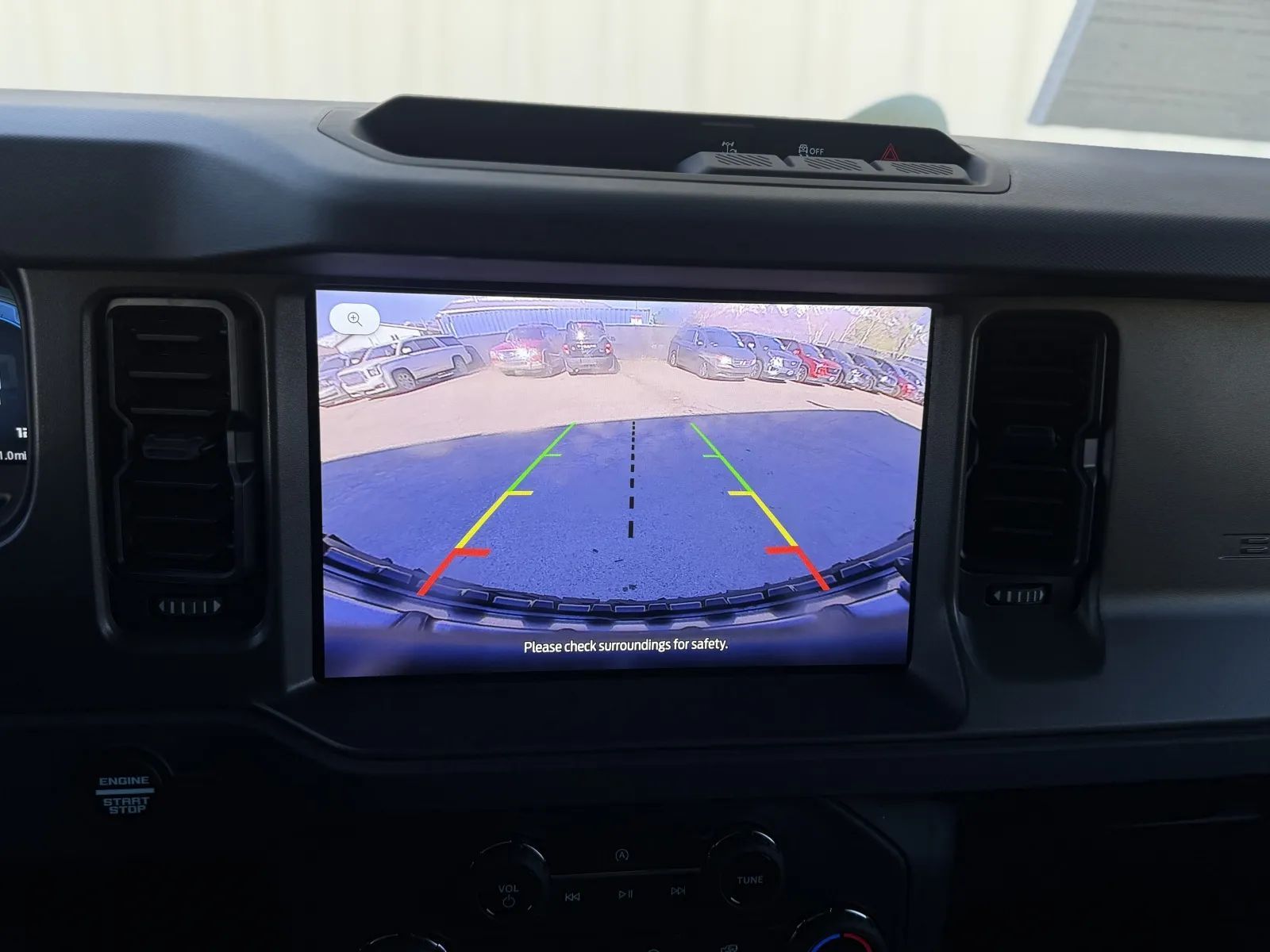 Front Pedestrian Automatic emergency braking, Front Automatic emergency braking, Check rear seat reminder, Pedestrian Detection Pre-collision warning system, Audible Warning Pre-collision warning system, Visual Warning Pre-collision warning system, Rearview Camera system, Front Side airbags, Rear Side curtain airbags, Front Side curtain airbags, 4-wheel ABS, Emergency braking preparation, Auto-locking Power door locks, Hill Descent Off-road driving assist, Auto Off Electronic parking brake, Perimeter Alarm Anti-theft system, Trailer stability control, Ventilated Disc Rear brake, Alarm Anti-theft system, Braking assist, Hill holder control, Ventilated Disc Front brake, Dual Front airbags, Vehicle Immobilizer Anti-theft system, Power brakes, LATCH System Child seat anchors, Electronic brakeforce distribution, Stability control, Traction control, In Dash Rearview monitor, Occupant Sensing Passenger Airbag deactivation, Front Seatbelt pretensioners, Front Seatbelt force limiters, Post-collision Safety System Impact sensor, Rear Seatbelt pretensioners, Roll stability control, Front Seatbelt warning sensor, Hotspot Wi-Fi, Wireless Apple CarPlay Smartphone integration, Wireless Android Auto Smartphone integration, 12 In. Infotainment screen size, FordPass Connect Smart device app compatibility, Bluetooth Wireless data link, Voice Operated Hands-free phone call integration, Voice Operated Radio, Bluetooth Auxiliary audio input, Engine Start Smart device app function, Touch Screen Display Radio, 1 Subwoofer, App Marketplace Integration Connected in-car apps, With Read Function Electronic messaging assistance, SiriusXM Satellite radio, 6 Total speakers, USB Auxiliary audio input, IPod/iPhone Auxiliary audio input, Vehicle Location Smart device app function, Lock Operation Smart device app function, SYNC Infotainment, Horn/light Operation Smart device app function, Maintenance Status Smart device app function, AM/FM Radio, Radio data system, Speed sensitive volume control, Google POIs Connected in-car apps, Google Search Connected in-car apps, LED Headlights, Auto High Beam Dimmer Headlights, Soft Top Removable roof, Safety Reverse Power windows, Power Side mirror adjustments, Heated Side mirrors, Acoustic Windshield Laminated glass, Daytime running lights, Full-size Matching Spare tire size, Steel Wheels, Manual Flip-up Liftgate window, Steel Spare wheel, Variable Intermittent Front wipers, Rear privacy glass, Tire Pressure Monitoring System, Active grille shutters, Solar-tinted glass, Auto On/off Headlights, Auto Delay Off Headlights, Black Fender lip moldings, Side-hinged Rear trunk/liftgate, Black Rear bumper color, Black Window trim, Black Door handle color, Black Mirror color, Manual Folding Side mirror adjustments, Stainless Steel Exhaust tip color, Accent Grille color, Black Front bumper color, Push-button start, Leather Shift knob trim, 12 In. Instrument cluster screen size, Variable/speed-proportional Power steering, Cruise control, Cloth Upholstery, Bucket Front seat, Ambient lighting, Front air conditioning, Keyless Entry Multi-function remote, 60-40 Split Bench Rear seat, Air filtration, Capless fuel filler system, Customizable instrument cluster, Split Rear seat folding, USB Front Power outlet(s), USB-C Front Power outlet(s), USB-C Rear Power outlet(s), 12V Cargo Area Power outlet(s), 12V Front Power outlet(s), Tilt And Telescopic Steering wheel, Multi-function display, USB-C Cargo Area Power outlet(s), Front Console With Armrest And Storage Center console, Compass, External temperature display, MPG Fuel economy display, Range Fuel economy display, 6 Driver seat manual adjustments, 6 Passenger seat manual adjustments, Front Reading lights, Tachometer Gauge, Metallic-tone Interior accents, Manual Day/night Rearview mirror, Front Cupholders, Maintenance Due Warnings and reminders, Front Overhead console, Rear Cupholders, Cargo area light, 2 One-touch windows, Panic Alarm Multi-function remote, Audio Steering wheel mounted controls, Dual Vanity mirrors, Cargo Tie-down Anchors And Hooks Storage, Carpet Floor material, Cruise Control Steering wheel mounted controls, Phone Steering wheel mounted controls, Multi-function Steering wheel mounted controls, Front Seatback Storage, Voice Control Steering wheel mounted controls, Single Front air conditioning zones, Sunglasses Holder Storage, Auto start/stop, Electronic Hi-lo 4WD selector, 4-pin Trailer wiring, 7-pin Trailer wiring, Part Time 4WD, Off-road Tuned suspension, Receiver Hitch Trailer hitch, Front Tow hooks, 800 CCA Battery rating, Rear Tow hooks, Drive mode selector, Independent Front suspension classification, Multi-link Rear suspension, Short And Long Arm Front suspension, Solid Live Axle Rear suspension classification, Monotube Front shock, Monotube Rear shock, Front stabilizer bar, Rear stabilizer bar, Battery saver
