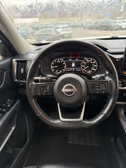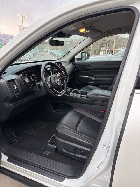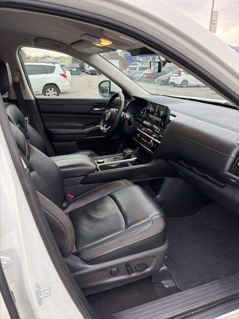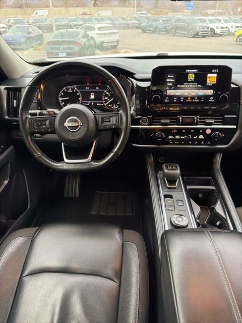 The 2023 Nissan Pathfinder SL delivers a confident blend of rugged capability, modern technology, and family friendly comfort. With its bold exterior design, signature V-motion grille, and sleek LED lighting, the Pathfinder SL stands out as a stylish and versatile midsize SUV. Its 3.5liter V6 engine provides smooth, responsive power, while the available Intelligent 4x4 system enhances traction and control for weekend adventures or challenging road conditions.