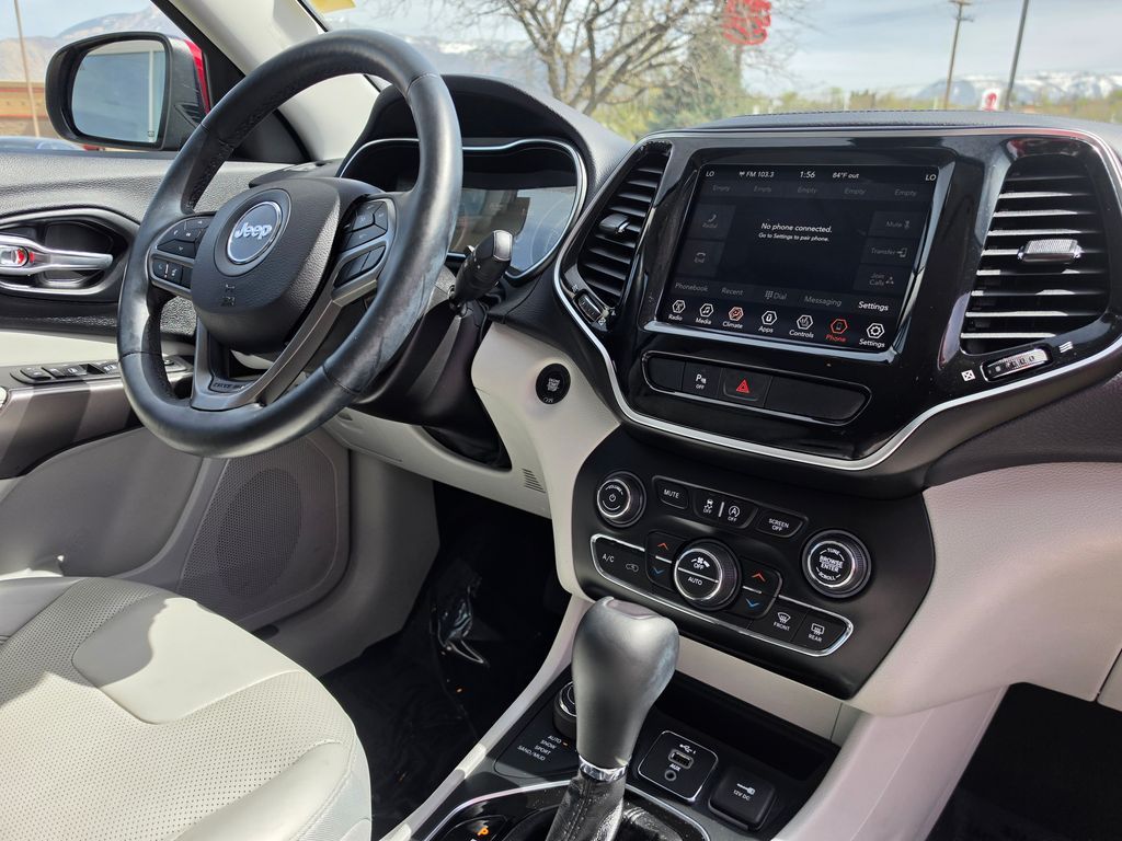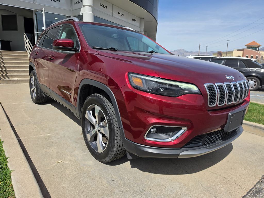 Velvet Red Pearlcoat 2019 Jeep Cherokee Limited 4WD 9-Speed 948TE Automatic 3.2L V6 10 Speakers, 3.251 Axle Ratio, 4-Wheel Disc Brakes, 8.4'' Touchscreen Display, ABS brakes, Air Conditioning, Alloy wheels, AM/FM radio: SiriusXM, Anti-whiplash front head restraints, Apple CarPlay, Apple CarPlay/Android Auto, Audio memory, Auto-dimming Rear-View mirror, Automatic temperature control, AutoStick Automatic Transmission, Auxiliary Transmission Oil Cooler, Brake assist, Bumpers: body-color, Compass, Delay-off headlights, Driver door bin, Driver vanity mirror, Dual Bright Exhaust Tips, Dual front impact airbags, Dual front side impact airbags, Electronic Stability Control, Engine Oil Cooler, Exterior Mirrors Courtesy Lamps, Exterior Mirrors w/Supplemental Signals, Four wheel independent suspension, Front anti-roll bar, Front Bucket Seats, Front Center Armrest, Front dual zone A/C, Front fog lights, Front reading lights, Fully automatic headlights, Garage door transmitter, Glove Box Lamp, Glove Box w/Damped Door (DISC), Google Android Auto, GPS Antenna Input, Heated door mirrors, Heated front seats, Heated steering wheel, Illuminated entry, Integrated Voice Command w/Bluetooth, Knee airbag, Leather Shift Knob, Low tire pressure warning, Memory seat, Normal Duty Suspension, Occupant sensing airbag, Outside temperature display, Overhead airbag, Overhead console, Panic alarm, ParkView Rear Back-Up Camera, Passenger door bin, Passenger vanity mirror, Power door mirrors, Power driver seat, Power Liftgate, Power passenger seat, Power steering, Power windows, Premium Leather Trimmed Bucket Seats, Quick Order Package 26G, Radio data system, Radio: Uconnect 4 w/8.4'' Display, Rear anti-roll bar, Rear reading lights, Rear seat center armrest, Rear side impact airbag, Rear window defroster, Rear window wiper, Remote keyless entry, Roof rack: rails only, Security system, SiriusXM Satellite Radio, Speed control, Speed-sensing steering, Split folding rear seat, Spoiler, Steering wheel mounted audio controls, Stop-Start Multiple VSM System, Tachometer, Telescoping steering wheel, Tilt steering wheel, Traction control, Trip computer, Turn signal indicator mirrors, USB Host Flip, Variably intermittent wipers, Voltmeter, Wheels: 18'' x 7'' Polished/Painted Aluminum.