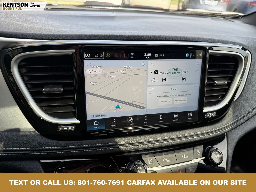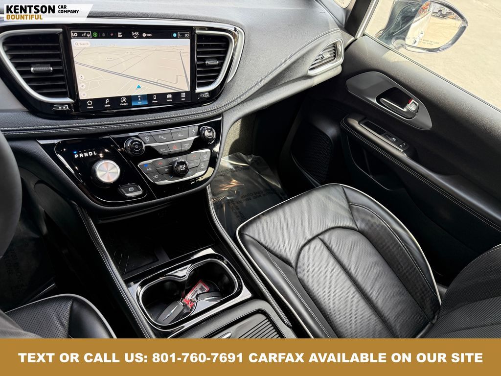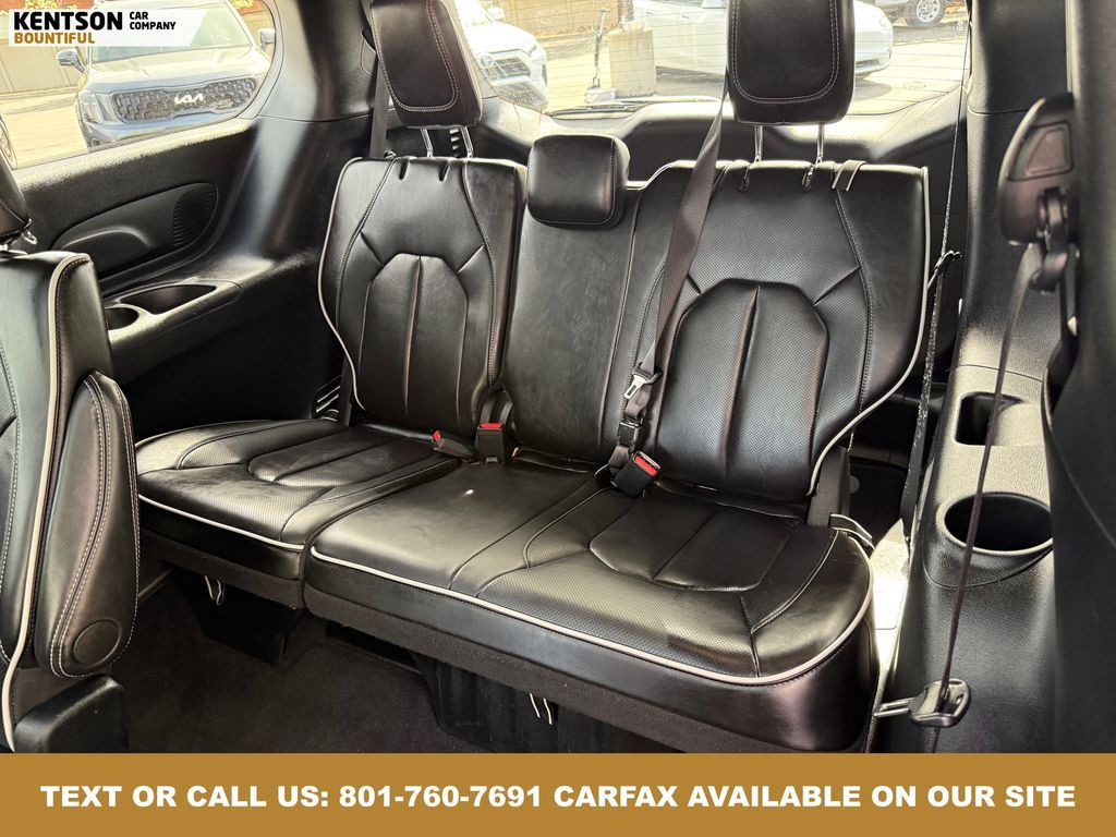 Quick Order Package 27P, 13 Speakers, 18'' x 7.5'' Painted Aluminum Wheels, 3.73 Axle Ratio, 3rd row seats: split-bench, 4-Wheel Disc Brakes, ABS brakes, Air Conditioning, Alloy wheels, AM/FM radio: SiriusXM 360L, Apple CarPlay/Android Auto, Audio memory, Auto-dimming Rear-View mirror, Automatic temperature control, AWD Suspension, Black Seats, Brake assist, Bumpers: body-color, Compass, Delay-off headlights, Driver door bin, Driver vanity mirror, Driver's Seat Mounted Armrest, Dual front impact airbags, Dual front side impact airbags, Electronic Stability Control, Emergency communication system: Chrysler Connect, Four wheel independent suspension, Front anti-roll bar, Front Bucket Seats, Front dual zone A/C, Front fog lights, Front reading lights, Fully automatic headlights, Garage door transmitter, Gloss Black Exterior Mirrors, Heated door mirrors, Heated front seats, Heated rear seats, Heated steering wheel, Illuminated entry, Integrated Active Noise Cancellation, Knee airbag, Low tire pressure warning, Memory seat, Nappa Leather Bucket Seats, Navigation System, Occupant sensing airbag, Outside temperature display, Overhead airbag, Overhead console, Panic alarm, ParkView Rear Back-Up Camera, Passenger door bin, Passenger seat mounted armrest, Passenger vanity mirror, Power door mirrors, Power driver seat, Power Liftgate, Power moonroof, Power passenger seat, Power steering, Power windows, Radio data system, Radio: Uconnect 5 Nav with 10.1'' Display, Rain sensing wipers, Rear air conditioning, Rear reading lights, Rear window defroster, Rear window wiper, Reclining 3rd row seat, Remote keyless entry, Security system, Speed control, Split folding rear seat, Spoiler, Steering wheel mounted audio controls, Tachometer, Telescoping steering wheel, Tilt steering wheel, Traction control, Trip computer, Turn signal indicator mirrors, Variably intermittent wipers, Ventilated front seats, and Voltmeter.