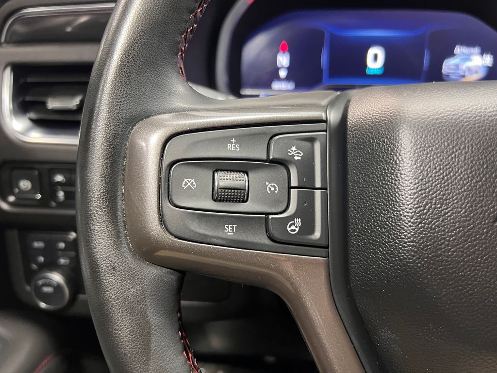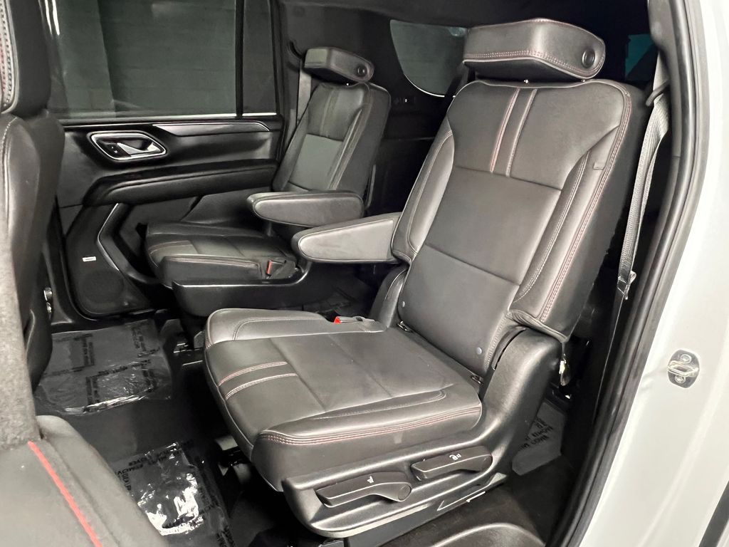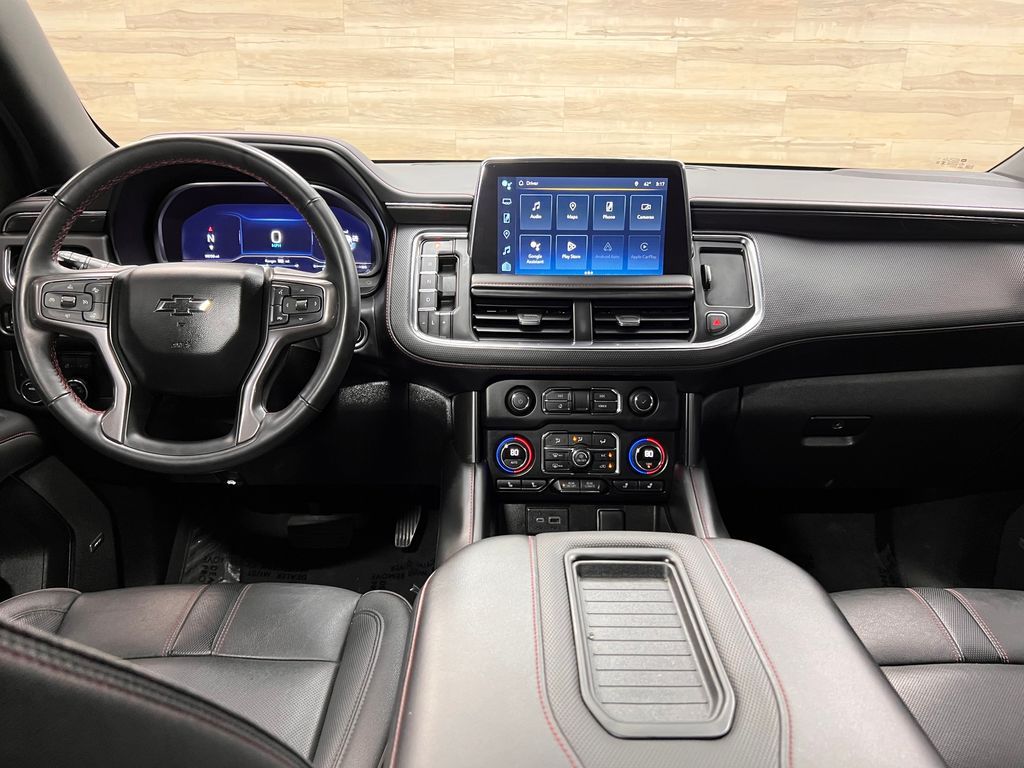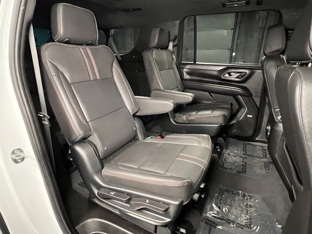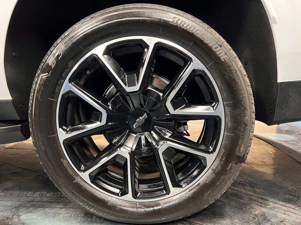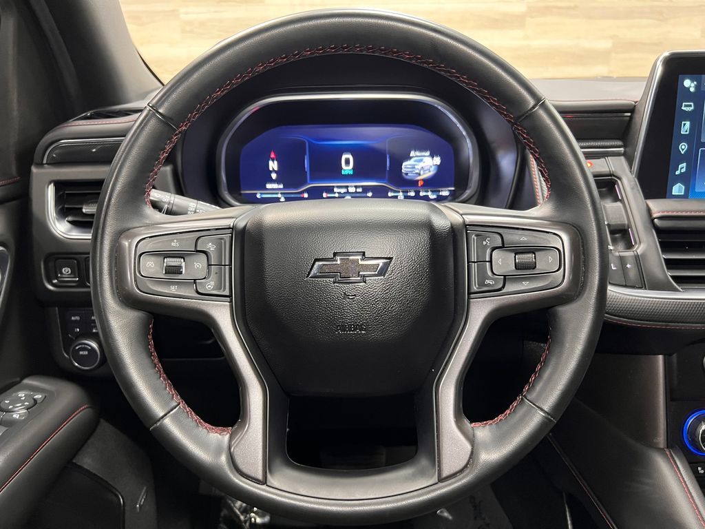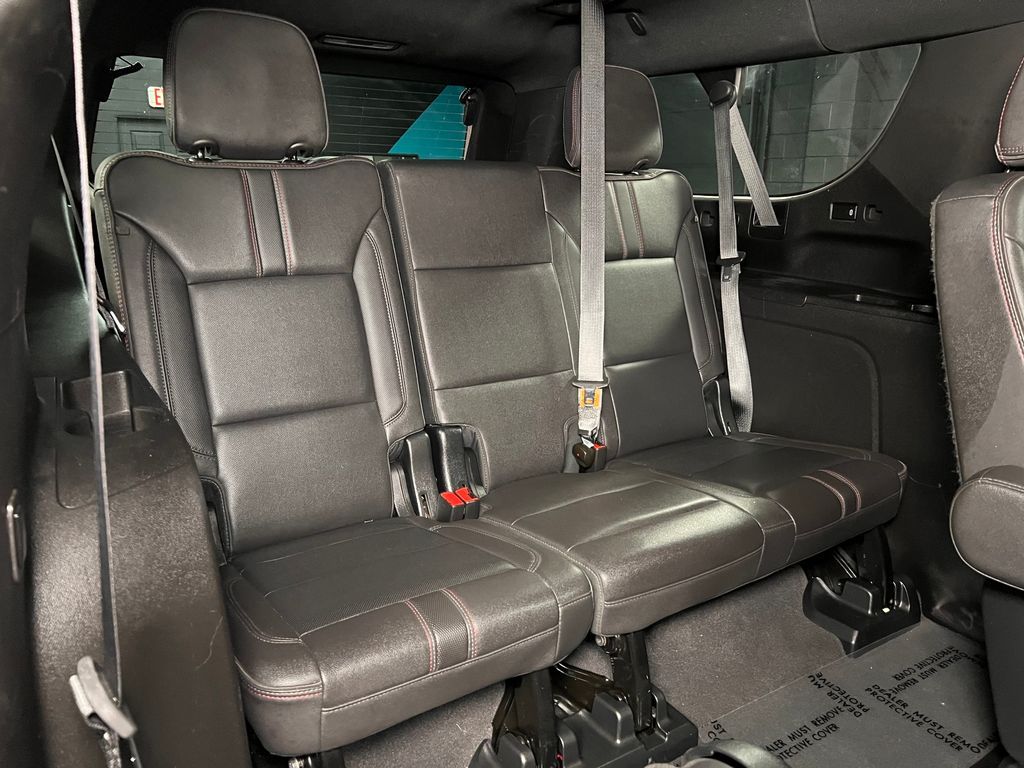 10-Way Power Driver & Passenger Seat Adjusters, 1st & 2nd Row Color-Keyed Carpeted Floor Mats, 2nd Row Pwr Release 60/40 Split-Folding Bench Seat, 3.23 Rear Axle Ratio, 3rd Row 60/40 Power-Folding Split-Bench, 3rd row seats: split-bench, 4-Wheel Disc Brakes, 9 Speakers, ABS brakes, Adaptive Cruise Control, Air Conditioning, Alloy wheels, AM/FM radio: SiriusXM with 360L, Apple CarPlay/Android Auto, Auto High-beam Headlights, Auto-Dimming Inside Rear-View Mirror, Auto-dimming Rear-View mirror, Automatic temperature control, Bose 9-Speaker Stereo Audio System Feature, Brake assist, Bright Front & Rear Door Sill Plates, Bumpers: body-color, Color-Keyed Carpeting Floor Covering, Compass, Delay-off headlights, Driver & Front Outboard Passenger Airbags, Driver Alert Package, Driver door bin, Driver vanity mirror, Dual front impact airbags, Dual front side impact airbags, Dual-Pane Power Panoramic Sunroof, Electronic Stability Control, Emergency communication system: OnStar and Chevrolet connected services capable, Enhanced Automatic Emergency Braking, Enhanced Driver Information Center, Floor Console w/Storage Area, Four wheel independent suspension, Front anti-roll bar, Front Bucket Seats, Front Center Armrest, Front dual zone A/C, Front reading lights, Fully automatic headlights, Garage door transmitter, Hands-Free Rear Power Programmable Liftgate, HD Surround Vision, Heated 2nd Row Outboard Seats, Heated door mirrors, Heated Driver & Front Passenger Seats, Heated front seats, Heated Steering Wheel, Illuminated entry, Infotainment Display, Lane Change Alert w/Side Blind Zone Alert, LED Daytime Running Lamps, Low tire pressure warning, Luxury Package, Memory seat, Memory Settings, Memory Settings For Driver, Navigation System, Not Equipped w/Wheel Locks (LPO), Occupant sensing airbag, Outside Heated Power-Adjustable Mirrors, Outside temperature display, Overhead airbag, Overhead console, Panic alarm, Passenger door bin, Passenger vanity mirror, Perforated Leather Seating Surfaces, Power door mirrors, Power driver seat, Power Liftgate, Power passenger seat, Power Release 2nd Row Bucket Seats, Power steering, Power Tilt & Telescopic Steering Column, Power windows, Preferred Equipment Group 1SP, Premium audio system: Chevrolet Infotainment 3 Premium, Premium Smooth Ride Suspension, Radio: Chevrolet Infotainment 3 Premium System, Rain sensing wipers, Rear air conditioning, Rear anti-roll bar, Rear Cross Traffic Alert, Rear Pedestrian Alert, Rear reading lights, Rear seat center armrest, Rear window defroster, Rear window wiper, Remote keyless entry, Remote Start, Roof rack: rails only, Security system, SiriusXM Radio w/360L, Speed control, Speed-sensing steering, Split folding rear seat, Spoiler, Steering wheel mounted audio controls, Tachometer, Telescoping steering wheel, Tilt steering wheel, Traction control, Trip computer, Universal Home Remote, Variably intermittent wipers, Voltmeter, Wheel Locks (Set of 4) (LPO), Wheels: 22'' x 9'' Bright Machined, Wireless Charging, Wrapped Steering Wheel.
