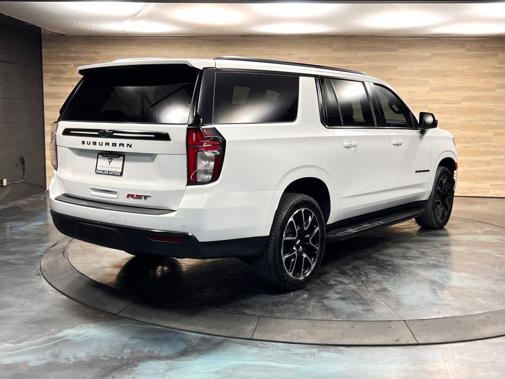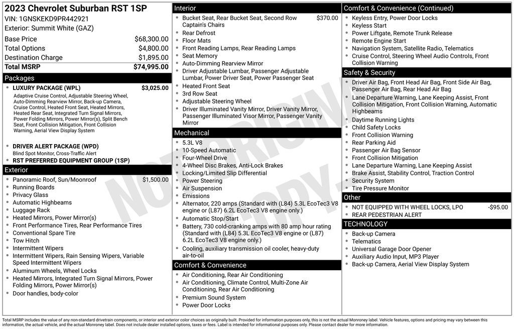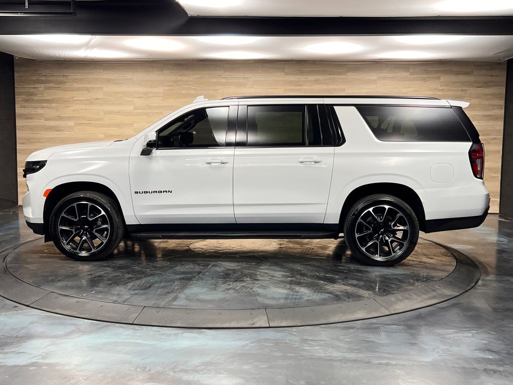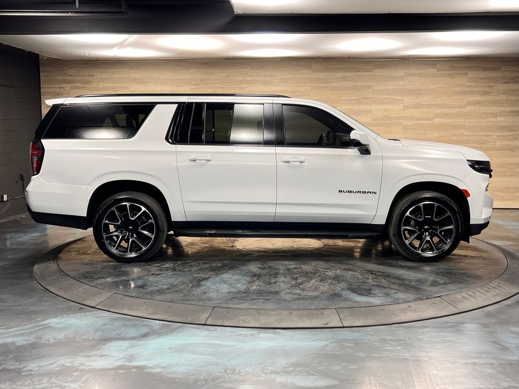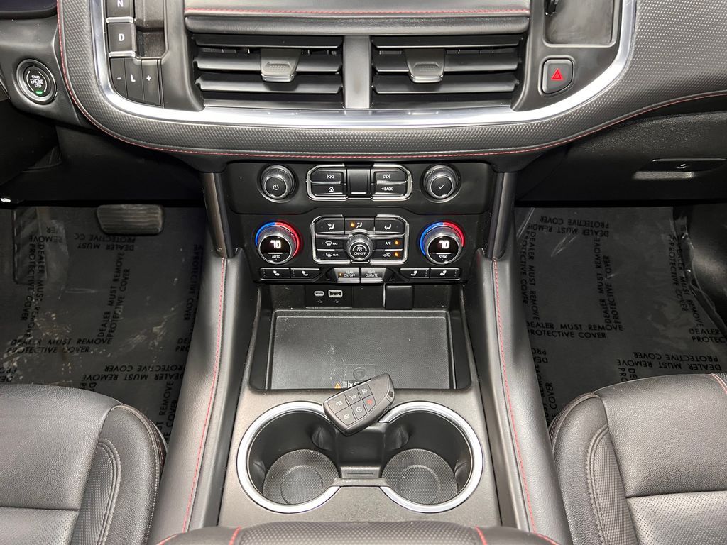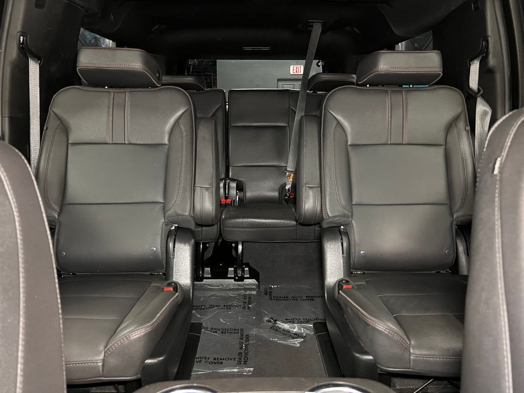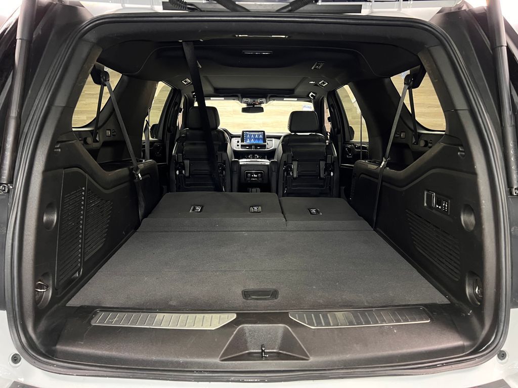 10-Way Power Driver & Passenger Seat Adjusters, 1st & 2nd Row Color-Keyed Carpeted Floor Mats, 2nd Row Pwr Release 60/40 Split-Folding Bench Seat, 3.23 Rear Axle Ratio, 3rd Row 60/40 Power-Folding Split-Bench, 3rd row seats: split-bench, 4-Wheel Disc Brakes, 9 Speakers, ABS brakes, Adaptive Cruise Control, Air Conditioning, Alloy wheels, AM/FM radio: SiriusXM with 360L, Apple CarPlay/Android Auto, Auto High-beam Headlights, Auto-Dimming Inside Rear-View Mirror, Auto-dimming Rear-View mirror, Automatic temperature control, Bose 9-Speaker Stereo Audio System Feature, Brake assist, Bright Front & Rear Door Sill Plates, Bumpers: body-color, Color-Keyed Carpeting Floor Covering, Compass, Delay-off headlights, Driver & Front Outboard Passenger Airbags, Driver Alert Package, Driver door bin, Driver vanity mirror, Dual front impact airbags, Dual front side impact airbags, Dual-Pane Power Panoramic Sunroof, Electronic Stability Control, Emergency communication system: OnStar and Chevrolet connected services capable, Enhanced Automatic Emergency Braking, Enhanced Driver Information Center, Floor Console w/Storage Area, Four wheel independent suspension, Front anti-roll bar, Front Bucket Seats, Front Center Armrest, Front dual zone A/C, Front reading lights, Fully automatic headlights, Garage door transmitter, Hands-Free Rear Power Programmable Liftgate, HD Surround Vision, Heated 2nd Row Outboard Seats, Heated door mirrors, Heated Driver & Front Passenger Seats, Heated front seats, Heated Steering Wheel, Illuminated entry, Infotainment Display, Lane Change Alert w/Side Blind Zone Alert, LED Daytime Running Lamps, Low tire pressure warning, Luxury Package, Memory seat, Memory Settings, Memory Settings For Driver, Navigation System, Not Equipped w/Wheel Locks (LPO), Occupant sensing airbag, Outside Heated Power-Adjustable Mirrors, Outside temperature display, Overhead airbag, Overhead console, Panic alarm, Passenger door bin, Passenger vanity mirror, Perforated Leather Seating Surfaces, Power door mirrors, Power driver seat, Power Liftgate, Power passenger seat, Power Release 2nd Row Bucket Seats, Power steering, Power Tilt & Telescopic Steering Column, Power windows, Preferred Equipment Group 1SP, Premium audio system: Chevrolet Infotainment 3 Premium, Premium Smooth Ride Suspension, Radio: Chevrolet Infotainment 3 Premium System, Rain sensing wipers, Rear air conditioning, Rear anti-roll bar, Rear Cross Traffic Alert, Rear Pedestrian Alert, Rear reading lights, Rear seat center armrest, Rear window defroster, Rear window wiper, Remote keyless entry, Remote Start, Roof rack: rails only, Security system, SiriusXM Radio w/360L, Speed control, Speed-sensing steering, Split folding rear seat, Spoiler, Steering wheel mounted audio controls, Tachometer, Telescoping steering wheel, Tilt steering wheel, Traction control, Trip computer, Universal Home Remote, Variably intermittent wipers, Voltmeter, Wheel Locks (Set of 4) (LPO), Wheels: 22'' x 9'' Bright Machined, Wireless Charging, Wrapped Steering Wheel.
