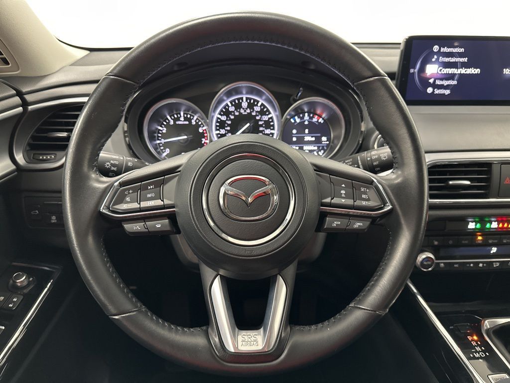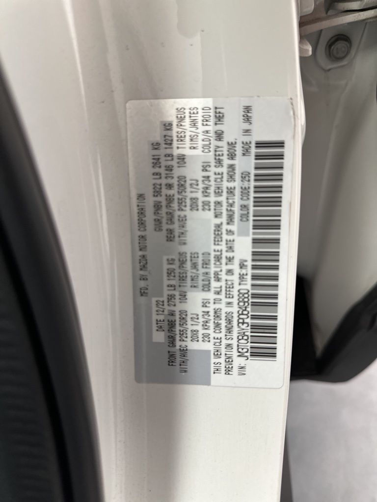 AWD, 3rd row seats: bench, 4-Wheel Disc Brakes, 4.411 Axle Ratio, 6 Speakers, ABS brakes, Air Conditioning, Alloy wheels, AppLink/Apple CarPlay and Android Auto, Auto High-beam Headlights, Auto-dimming Rear-View mirror, Automatic temperature control, Brake assist, Bumpers: body-color, Cargo Net & Side Storage Nets Package, Carpeted Cargo Mat, Compass, Delay-off headlights, Driver door bin, Driver vanity mirror, Dual front impact airbags, Dual front side impact airbags, E911 Automatic Emergency Notification, Electronic Stability Control, Emergency communication system: MAZDA CONNECT, Exterior Parking Camera Rear, Four wheel independent suspension, Front anti-roll bar, Front Bucket Seats, Front Center Armrest, Front dual zone A/C, Front fog lights, Front reading lights, Fully automatic headlights, Garage door transmitter: HomeLink, Heated 2nd-Row Captain's Chairs, Heated door mirrors, Heated front seats, Heated/Ventilated Front Bucket Seats, Illuminated entry, Infotainment System Voice Command, Leather Seat Trim, Leather Shift Knob, Leather steering wheel, Low tire pressure warning, Mazda Connected Services, Memory seat, Occupant sensing airbag, Outside temperature display, Overhead airbag, Overhead console, Pandora Internet Radio Integration, Panic alarm, Passenger door bin, Passenger vanity mirror, Power door mirrors, Power driver seat, Power Liftgate, Power moonroof, Power passenger seat, Power steering, Power windows, Radio Broadcast Data System Program Information, Radio data system, Radio: AM/FM Sound System, Rain sensing wipers, Rear air conditioning, Rear anti-roll bar, Rear reading lights, Rear seat center armrest, Rear window defroster, Rear window wiper, Remote keyless entry, SMS Text Msg Audio Delivery & Reply, Snowflake White Pearl Mica Paint, Speed control, Speed-sensing steering, Split folding rear seat, Spoiler, Steering wheel mounted audio controls, Tachometer, Telescoping steering wheel, Tilt steering wheel, Traction control, Trip computer, Turn signal indicator mirrors, Variably intermittent wipers, Ventilated front seats, Wheel Locks, Wheels: 20'' x 8.5J Aluminum Alloy, AWD.