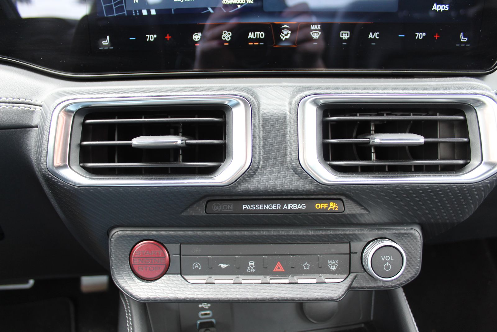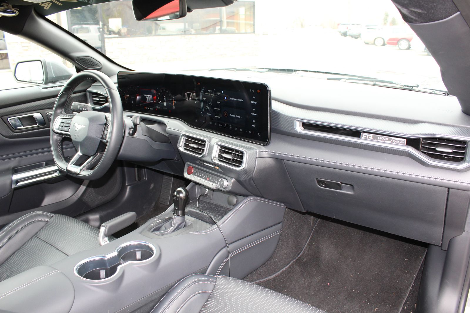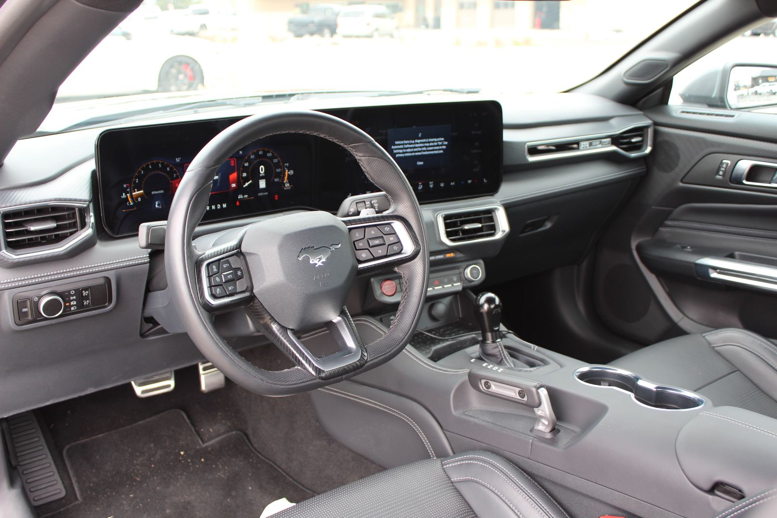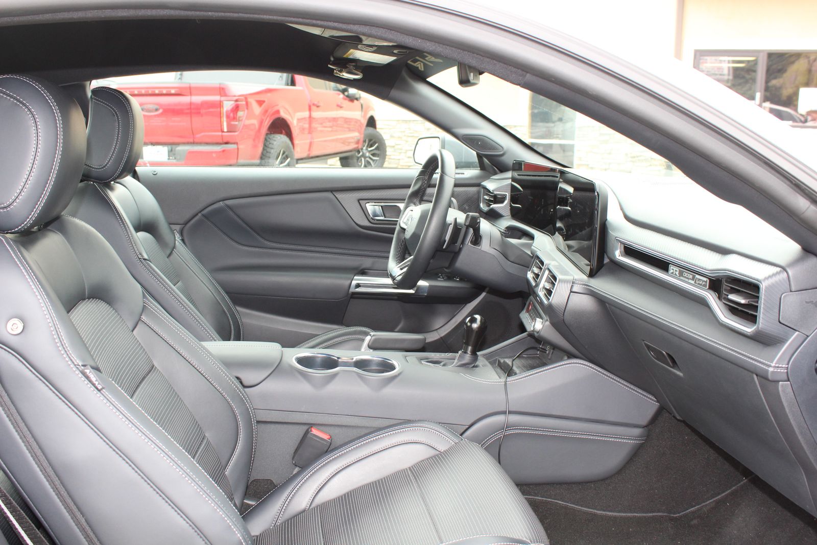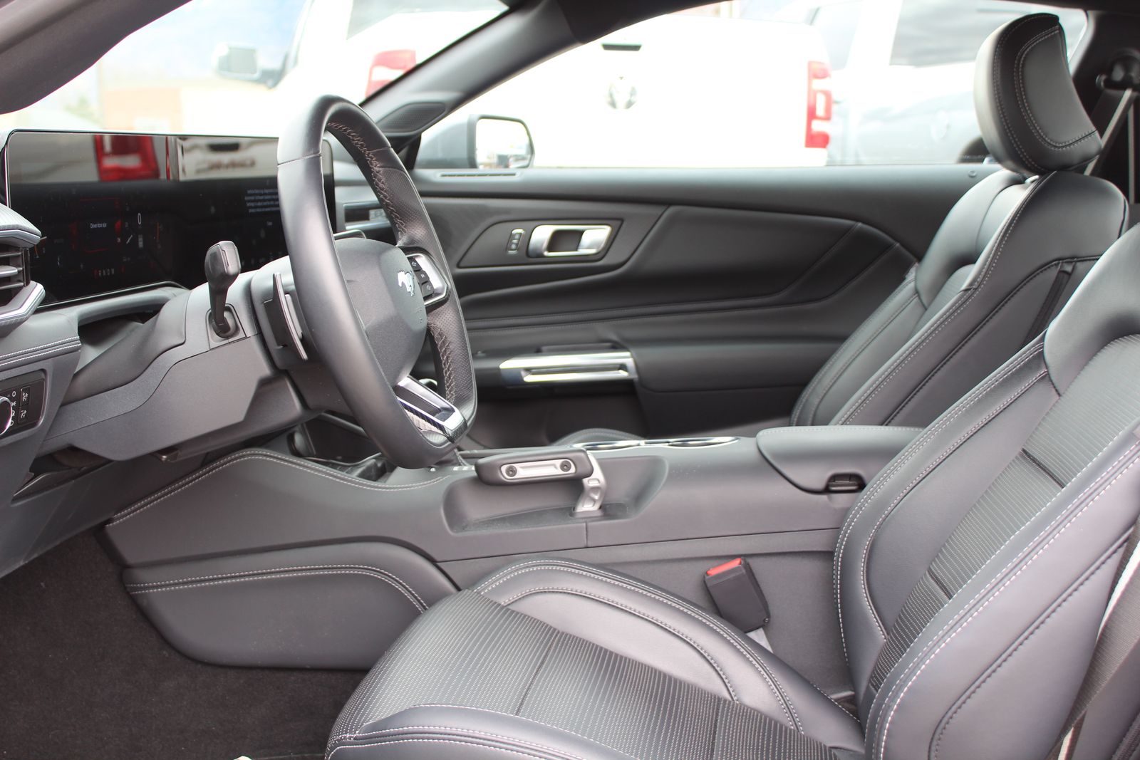 Inside, the cabin is just as impressive, offering a high-tech, driver-focused environment. A large 12.4-inch digital instrument cluster pairs with a 13.2-inch touchscreen running SYNC® 4 with built-in navigation, giving you seamless control over performance data and connectivity. A B&O 12-speaker premium sound system provides exceptional audio quality, while features like a heated leather-wrapped steering wheel, dual-zone climate control, wireless charging, and ambient lighting with MyColor® ensure comfort and personalization.