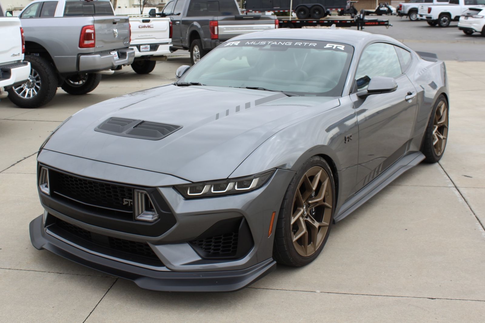 This 2024 Ford Mustang GT Premium is anything but ordinary—this is a professionally built RTR Spec 3 performance machine that takes an already iconic muscle car and transforms it into something far more aggressive, exclusive, and track-capable. Finished in Carbonized Gray Metallic with a Black Onyx leather-trimmed interior, it delivers a perfect blend of modern performance and premium comfort. Under the hood sits the legendary supercharged 5.0L Ti-VCT V8, producing an impressive 810 horsepower, and 615 lb-ft of torque paired to a smooth and responsive 10-speed automatic transmission that delivers quick, precise shifts and exhilarating acceleration.