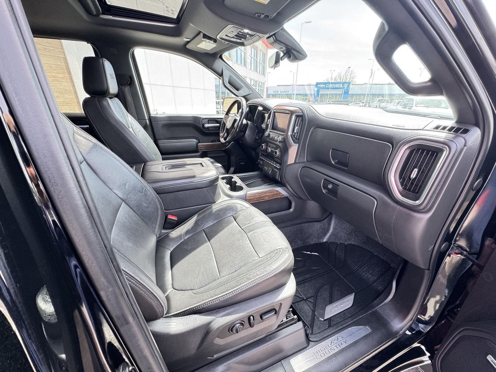 Safety Package IISafety Alert SeatIntelliBeam Automatic High Beam On/offFollowing Distance IndicatorForward Collision AlertLane Keep Assist with Lane Departure WarningLow Speed Forward Automatic BrakingFront Pedestrian BrakingTechnology Package ($1,875 value)Rear Camera MirrorHD Surround Vision15" Diagonal Head-Up DisplayPreferred Equipment Group 3LZ10-Way Power Driver Seat with LumbarDriver MemoryPower Sliding Rear Window with Rear DefoggerFront Bucket Seats10-Way Power Passenger Seat Adjuster with LumbarPower Front Passenger Windows with Express Up/downPower Rear Windows with Express DownDeep-Tinted GlassKeyless Open and StartPower Front Windows with Driver Express Up/downColor-Keyed Carpeting Floor CoveringFront Carpeted Floor MatsRear Carpeted Floor MatsBluetooth For PhoneRemote Vehicle Starter SystemChrome Assist StepsChevytec Spray-On Black BedlinerCompassHitch GuidanceFloor Mounted ConsoleAuto-Dimming Inside Rearview MirrorOutside Heated Power-Adjustable MirrorsPainted Mirror CapsChrome GrilleIntegrated Trailer Brake ControllerElectronic Cruise ControlWireless ChargingHeated Driver and Front Passenger Seats2nd Row Heated Outboard SeatsHeated Steering Wheel120-Volt Instrument Panel Power OutletAuxiliary External Transmission Oil CoolerVentilated Driver and Front Passenger Seats170 Amp AlternatorElectrical Lock Control Steering ColumnDual Exhaust with Polished OutletsManual Tilt/telescoping Steering ColumnLeather Wrapped Steering Wheel2-Speed Transfer CaseTrailer Tire Pressure Monitor SystemHitch Guidance with Hitch ViewUp-Level Rear Seat with Storage PackagePerforated Leather Appointed Seat TrimFront LED Fog LampsAdvanced Trailering SystemSiriusXM RadioHD RadioUltrasonic Front and Rear Park AssistOnStar and Chevrolet Connected Services CapableLED Cargo Area LightingRear Cross Traffic AlertUniversal Home Remote8" Driver Information CenterSteering Wheel Audio ControlsLane Change Alert with Side Blind Zone AlertRear Dual USB Charging-Only PortsTheft Deterrent System (unauthorized Entry)HD Rear Vision CameraChrome Recovery HooksTrailering PackageHigh Country Deluxe ($1,800 value)Power SunroofAll-Weather Floor LinerP275/50R22SL AS BW Tires