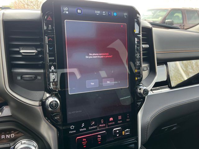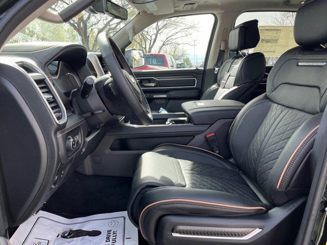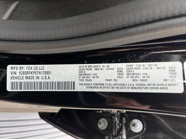 Quick Order Package 22V Tungsten,MyFlexCare Service Plan,Bed Utility Group,Truck Bed Cargo Divider,MOPAR 4 Adjustable Cargo Tie-Down Hooks,3.92 Rear Axle Ratio,Auto-Dimming Exterior Driver Mirror,Premium Leather Bucket Seats,Remote Tailgate Release,Exterior Mirrors with Supplemental Signals,Exterior Mirrors Courtesy Lamps,Exterior Mirrors with Memory,Chrome Exterior Mirrors,Auto Power-Folding Mirrors,Front License Plate Bracket,RAM's Head Badge,Multi-Function Tailgate,Exterior Mirrors with Heating Element,Radio: Uconnect 5 Nav with 14.4 Display,Wheels: 22 x 9 Polish/Painted with Inserts,Exterior 115V AC Outlet,12-Way/1-Way Trailer Connector,Manufacturer's Statement of Origin,4-Wheel Disc Brakes,Apple CarPlay/Android Auto,Auto High-beam Headlights,Exterior Parking Camera Rear,Front Center Armrest w/Storage,Compass,Heads-Up Display,Auto-dimming Rear-View mirror,Ventilated rear seats,Ventilated front seats,Variably intermittent wipers,Turn signal indicator mirrors,Trip computer,Traction control,Tilt steering wheel,Telescoping steering wheel,Steering wheel mounted audio controls,Split folding rear seat,Speed control,Security system,Remote keyless entry,Rear window defroster,Rear step bumper,Rear seat center armrest,Rear reading lights,Rear anti-roll bar,Rain sensing wipers,Radio data system,Power windows,Power steering,Power passenger seat,Power moonroof,Power driver seat,Power door mirrors,Power adjustable front head restraints,Pedal memory,Passenger vanity mirror,Passenger door bin,Panic alarm,Overhead console,Overhead airbag,Outside temperature display,Occupant sensing airbag,Memory seat,Low tire pressure warning,Leather steering wheel,Illuminated entry,Heated steering wheel,Heated rear seats,Heated front seats,Heated door mirrors,Garage door transmitter,Fully automatic headlights,Front wheel independent suspension,Front reading lights,Front fog lights,Front dual zone A/C,Front anti-roll bar,Dual front side impact airbags,Dual front impact airbags,Driver vanity mirror,Driver door bin,Delay-off headlights,Bumpers: body-color,Brake assist,Bodyside moldings,Automatic temperature control,Auto-leveling suspension,Auto-dimming door mirrors,Audio memory,Alloy wheels,Adjustable pedals,AM/FM radio,ABS brakes,Voltmeter,Tachometer,Navigation System,Front Bucket Seats,Electronic Stability Control,Air Conditioning,Adaptive Cruise Control,MYFLEXCARE SERVICE PLAN,DIAMOND BLACK CRYSTAL PEARLCOAT,TIRES: 285/45R22XL BSW ALL SEASON (STD),QUICK ORDER PACKAGE 22V TUNGSTEN -inc: Engine: 3.0L I6 Hurricane HO Twin Turbo ESS Transmission: 8-Speed Automatic (8HP75),TRANSMISSION: 8-SPEED AUTOMATIC (8HP75) (STD),MULTI-FUNCTION TAILGATE -inc: Remote Tailgate Release RAM's Head Badge,FRONT LICENSE PLATE BRACKET,ENGINE: 3.0L I6 HURRICANE HO TWIN TURBO ESS (STD),BED UTILITY GROUP -inc: MOPAR 4 Adjustable Cargo Tie-Down Hooks Truck Bed Cargo Divider Exterior 115V AC Outlet,MANUFACTURER'S STATEMENT OF ORIGIN,BLACK PREMIUM LEATHER BUCKET SEATS,Turbocharged,Four Wheel Drive,Tow Hitch,Air Suspension,Power Steering,Air Suspension,Air Suspension,ABS,4-Wheel Disc Brakes,Brake Assist,Locking/Limited Slip Differential,Aluminum Wheels,Tires - Front Performance,Tires - Rear Performance,Bed Liner,Conventional Spare Tire,Sun/Moonroof,Generic Sun/Moonroof,Panoramic Roof,Tow Hooks,Power Mirror(s),Integrated Turn Signal Mirrors,Power Folding Mirrors,Heated Mirrors,Rear Defrost,Privacy Glass,Intermittent Wipers,Variable Speed Intermittent Wipers,Rain Sensing Wipers,Running Boards/Side Steps,Power Retractable Running Boards,Power Door Locks,Pickup Bed Tonneau Cover,Fog Lamps,Automatic Highbeams,Daytime Running Lights,Automatic Headlights,LED Headlights,AM/FM Stereo,Navigation System,Satellite Radio,Bluetooth Connection,HD Radio,Requires Subscription,Premium Sound System,MP3 Capability,Steering Wheel Audio Controls,Auxiliary Audio Input,Premium Sound System,Bluetooth Connection,Heated Front Seat(s),Cooled Front Seat(s),Power Driver Seat,Power Passenger Seat,Bucket Seats,Driver Adjustable Lumbar,Seat Memory,Seat-Massage,Power Driver Seat,Driver Adjustable Lumbar,Seat-Massage,Power Passenger Seat,Passenger Adjustable Lumbar,Seat-Massage,Pass-Through Rear Seat,Heated Rear Seat(s),Cooled Rear Seat(s),Rear Bench Seat,Adjustable Steering Wheel,Trip Computer,Power Windows,WiFi Hotspot,Leather Steering Wheel,Heated Steering Wheel,Keyless Entry,Power Door Locks,Keyless Entry,Power Door Locks,Keyless Start,Universal Garage Door Opener,Cruise Control,Adaptive Cruise Control,Climate Control,Multi-Zone A/C,A/C,Leather Seats,Auto-Dimming Rearview Mirror,Driver Vanity Mirror,Passenger Vanity Mirror,Driver Illuminated Vanity Mirror,Passenger Illuminated Visor Mirror,Floor Mats,Remote Engine Start,Smart Device Integration,Requires Subscription,Smart Device Integration,Seat Memory,Navigation System,Remote Engine Start,Keyless Start,Mirror Memory,Power Windows,Power Door Locks,Adjustable Pedals,Trip Computer,Heads-Up Display,Security System,Immobilizer,Cruise Control Steering Assist,Traction Control,Stability Control,Traction Control,Front Side Air Bag,Rear Parking Aid,Blind Spot Monitor,Cross-Traffic Alert,Front Collision Mitigation,Lane Departure Warning,Lane Keeping Assist,Lane Departure Warning,Cross-Traffic Alert,Aerial View Display System,Driver Monitoring,Evasion Assist,Tire Pressure Monitor,Driver Air Bag,Passenger Air Bag,Front Head Air Bag,Rear Head Air Bag,Passenger Air Bag Sensor,Child Safety Locks,Back-Up Camera
