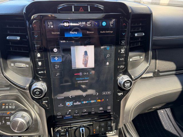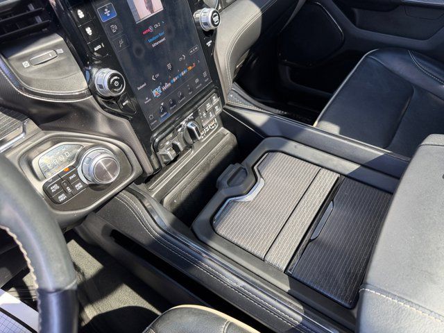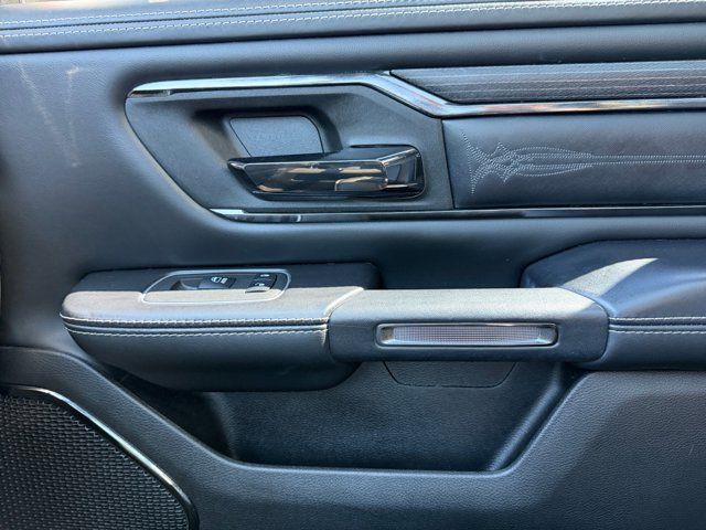 Quick Order Package 25M Limited,3.21 Rear Axle Ratio,Wheels: 20 x 9 Aluminum Painted/Polished,Premium Leather Trimmed Bucket Seats,Trailer Tow Group,33 Gallon Fuel Tank,Chrome Power-Fold Trailer Tow Mirrors,Dual-Pane Panoramic Sunroof,Front License Plate Bracket,Manufacturer's Statement of Origin,Trailer Brake Control,Radio: Uconnect 5 Nav w/12.0 Display,Bucket Seats,Ventilated Front Seats,Rear 60/40 Folding Split Recline Seat,4 Way Front Headrests,Full Length Premium Floor Console,Heated Front Seats,Front Seat Back Map Pockets,Auto-Dimming Exterior Driver Mirror,Trailer Light Check,Active Noise Control System,Power 4-Way Driver Lumbar Adjust,Heated Second Row Seats,Power 4-Way Passenger Lumbar Adjust,Power 8-Way Driver & Passenger Seats,Dome Dual LED Reading Lamp,LED Dome/Reading Lamp,Exterior Mirrors w/Supplemental Signals,Exterior Mirrors Courtesy Lamps,Trailer Tow Mirrors,Exterior Mirrors w/Memory,Chrome Exterior Mirrors,Driver Seat Memory,Power-Folding Mirrors,Convex Wide-Angle Mirror Insert,Auto-Dimming Exterior Passenger Mirror,Mirror Clearance/Running Lights,Mirror-Mounted Aux Reverse Lamps,HEMI Badge,Dual Rear Exhaust w/Bright Tips,Exterior Mirrors w/Heating Element,Heated Steering Wheel,Heavy-Duty Engine Cooling,48V Belt Starter Generator,Trailer Tire Pressure Monitoring System,4-Wheel Disc Brakes,Apple CarPlay/Android Auto,AM/FM radio: SiriusXM with 360L,Auto High-beam Headlights,Front Center Armrest w/Storage,Compass,10 Speakers,Auto-dimming Rear-View mirror,Ventilated front seats,Variably intermittent wipers,Turn signal indicator mirrors,Trip computer,Traction control,Tilt steering wheel,Telescoping steering wheel,Steering wheel mounted audio controls,Split folding rear seat,Speed control,Security system,Remote keyless entry,Rear window defroster,Rear step bumper,Rear seat center armrest,Rear anti-roll bar,Rain sensing wipers,Radio data system,Power windows,Power steering,Power passenger seat,Power driver seat,Power door mirrors,Pedal memory,Passenger vanity mirror,Passenger door bin,Panic alarm,Overhead console,Overhead airbag,Outside temperature display,Occupant sensing airbag,Memory seat,Low tire pressure warning,Leather steering wheel,Illuminated entry,Heated steering wheel,Heated rear seats,Heated front seats,Heated door mirrors,Genuine wood door panel insert,Genuine wood dashboard insert,Genuine wood console insert,Garage door transmitter,Fully automatic headlights,Front wheel independent suspension,Front reading lights,Front fog lights,Front dual zone A/C,Front anti-roll bar,Dual front side impact airbags,Dual front impact airbags,Driver vanity mirror,Driver door bin,Delay-off headlights,Bumpers: chrome,Brake assist,Bodyside moldings,Automatic temperature control,Auto-leveling suspension,Auto-dimming door mirrors,Audio memory,Alloy wheels,Adjustable pedals,ABS brakes,Voltmeter,Tachometer,ParkView Rear Back-Up Camera,Navigation System,Front Bucket Seats,Electronic Stability Control,Bedliner,Air Conditioning