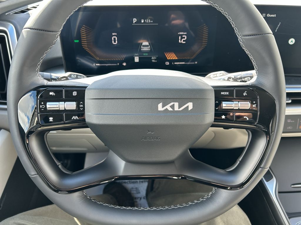 Apple CarPlay & Android Auto smart device wireless mirroring,Highway Driving Assist (HDA) hands-on cruise control,Forward Collision-Avoidance Assist-Ped/Cyclist pedestrian impact prevention,Highway Driving Assist (HDA) Automatic curve slowdown cruise control,Kia Connect mobile hotspot internet access,Rear mounted camera,Lane Keep Assist System (LKAS),Rear Cross-Traffic Collision Avoidance (RCCA),Navigation-Based Smart Cruise Control-Ramp w/Stop & Go & Curve Control (NSCC-R),Brake assist system,Cruise control with steering wheel mounted controls,Smart Power Liftgate power liftgate rear cargo door,Integrated navigation system with voice activation,Keyfob remote start,Heated driver and front passenger seats,SynTex leatherette front seat upholstery,Primary monitor touchscreen,Fixed third-row seats,Driver seat power reclining, lumbar support, cushion tilt, fore/aft control and height adjustable control,Automatic full-time AWD,1.6L I-4 gasoline direct injection, DOHC, variable valve control, intercooled turbo, regular unleaded, engine with 177HP,1.6L I-4 DOHC,Front wireless smart device charging,Forward Collision-Avoidance Assist (FCA-JT: Cyc/Ped/Junction Turning),Driver Attention Warning (DAW ) w/Lead Vehicle Departure Alert (LVDA),Intelligent Speed Limit Assist (ISLA) traffic sign recognition with automatic speed limit assist,Smart Key with hands-free access and push button start,Smart device remote start,Push-button,Automatic brake hold,Bluetooth wireless audio streaming,Power rear child safety door locks,Smart Liftgate proximity cargo area access release,Blind Spot Collision Warning (BCW) w/Parallel Exit,External exit warning system,Dual-zone front climate control,Kia Connect voice-activated climate control,High Beam Assist (HBA) auto high-beam headlights,Manual fold into floor third-row seat,Immobilizer,Kia Connect vehicle tracker,Selectable Terrain Modes,Real-time traffic,Bluetooth handsfree wireless device connectivity,Multi-level cargo floor,External memory control,7 USB ports,Electronic stability control system with anti-roll,Downhill Brake Control (DBC),Virtual Engine Sound System (VESS) external acoustic pedestrian alert