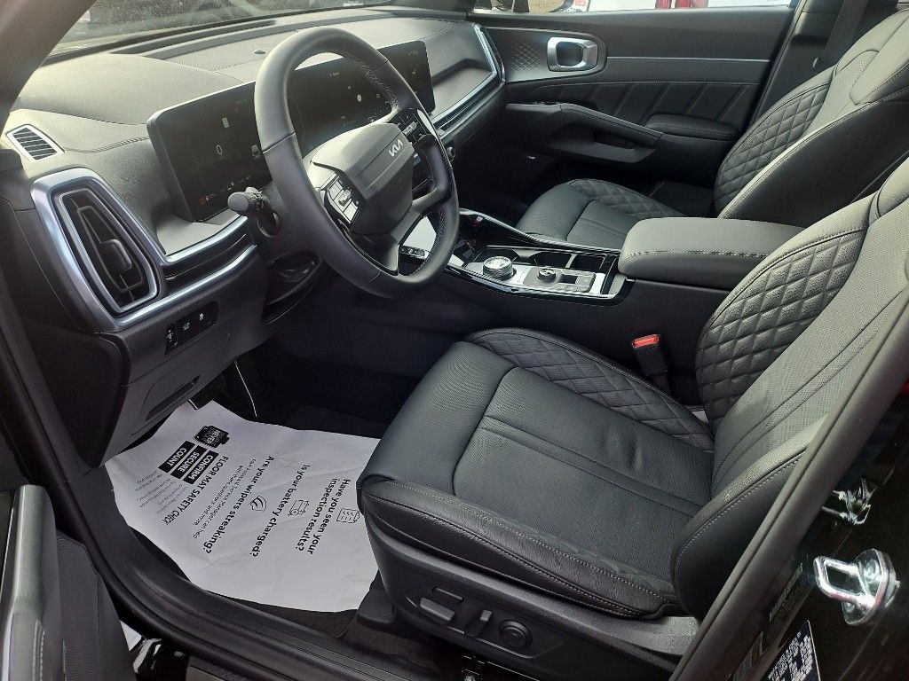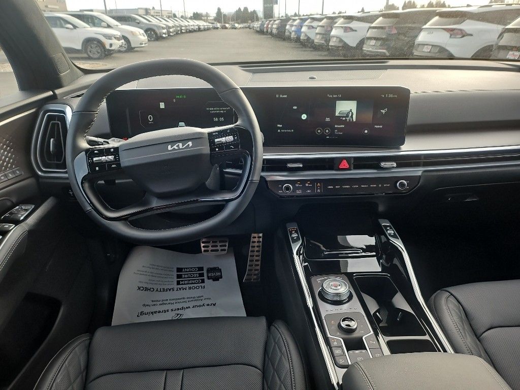 Apple CarPlay & Android Auto smart device wireless mirroring,Forward Collision-Avoidance Assist-Ped/Cyclist pedestrian impact prevention,Highway Driving Assist 2 (HDA 2) Automatic curve slowdown cruise control,Kia Connect mobile hotspot internet access,Rear mounted camera,Lane Keep Assist System (LKAS),Blind-Spot Collision-Avoidance Assist (BCA) active blind spot system,Rear Cross-Traffic Collision Avoidance (RCCA),Navigation-Based Smart Cruise Control-Ramp w/Stop & Go & Curve Control (NSCC-R) & Machine Learning (SCC-ML),Brake assist system,Cruise control with steering wheel mounted controls,Smart Power Liftgate power liftgate rear cargo door,Ventilated driver and front passenger seats,Integrated navigation system with voice activation,Keyfob remote start,Heated steering wheel,Heated driver and front passenger seats,Heated rear seats,Leather front seat upholstery,Primary monitor touchscreen,Fixed third-row seats,First and second-row sliding and tilting glass sunroof with express open/close activation sunshade,Driver seat power reclining, lumbar support, cushion extension, cushion tilt, fore/aft control and height adjustable control,Automatic full-time AWD,1.6L I-4 gasoline direct injection, DOHC, variable valve control, intercooled turbo, regular unleaded, engine with 177HP,1.6L I-4 DOHC,Front wireless smart device charging,Forward Collision-Avoidance Assist (FCA-LO/LS/JX),Driver Attention Warning (DAW ) w/Lead Vehicle Departure Alert (LVDA),Intelligent Speed Limit Assist (ISLA) traffic sign recognition with automatic speed limit assist,Evasive Steering Assist (ESA) evasion assist system,Parking Collision Avoidance Assist - Rear (PCA-R) rear pedestrian detection prevention,Junction Crossing front cross traffic mitigation,Smart Key with hands-free access and push button start,Surround View Monitor (SVM) aerial view camera,Blind-Spot View Monitor (BVM) left and right blind spot view,Smart device remote start,Push-button,Automatic brake hold,Video-feed rearview mirror,Bluetooth wireless audio streaming,Power rear child safety door locks,Digital Key 2.0 Advanced smart device-as-key proximity door locks,Gauge cluster display size: 12.30,Smart Liftgate proximity cargo area access release,Front mounted camera,Right side camera,Left side camera,Safe Exit Warning (SEW) external exit warning system,Dual-zone front climate control