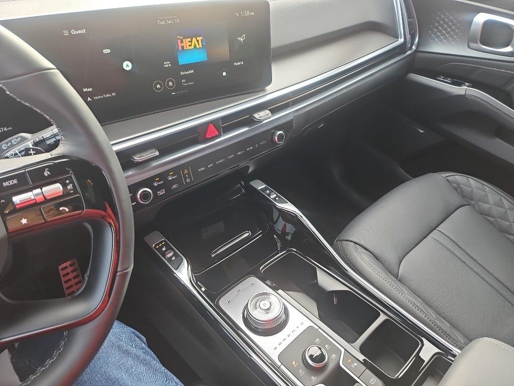 This Kia Sorento Hybrid stays safely in its lane with Lane Keep Assist. This mid-size suv employs advanced tech for collision avoidance, enhancing safety on the road. Start this mid-size suv from inside with remote start. See what's behind you with the back up camera on it. This unit offers Android Auto for seamless smartphone integration. The installed navigation system will keep you on the right path. Bluetooth technology is built into this Kia Sorento Hybrid, keeping your hands on the steering wheel and your focus on the road. The leather seats in the vehicle are a must for buyers looking for comfort, durability, and style. This unit offers Apple CarPlay for seamless connectivity. Keep your hands warm all winter with a heated steering wheel in this model . Set the temperature exactly where you are most comfortable in this mid-size suv. The fan speed and temperature will automatically adjust to maintain your preferred zone climate.