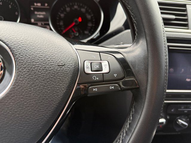 Wheels: 17 Bathurst Black Alloy,Heated Front Comfort Seats,V-Tex Leatherette Seat Trim,Radio: Composition Media w/6.3 Touchscreen,First Aid Kit,Roadside Assistance Kit,Chrome Exhaust Tips,Monster Mats w/Logo Rubber Mat Kit (Set of 4),Luggage Net,Heavy Duty Trunk Liner w/VW CarGo Blocks,4 Speakers,Emergency communication system: VW Car-Net,Exterior Parking Camera Rear,AM/FM radio: SiriusXM,Front beverage holders,Variably intermittent wipers,Turn signal indicator mirrors,Trip computer,Traction control,Tilt steering wheel,Telescoping steering wheel,Steering wheel mounted audio controls,Split folding rear seat,Speed-sensing steering,Speed control,Remote keyless entry,Rear window defroster,Rear seat center armrest,Rear reading lights,Rear anti-roll bar,Radio data system,Power windows,Power steering,Power moonroof,Power door mirrors,Passenger vanity mirror,Passenger door bin,Panic alarm,Overhead console,Overhead airbag,Outside temperature display,Occupant sensing airbag,Low tire pressure warning,Illuminated entry,Heated front seats,Heated door mirrors,Front reading lights,Front fog lights,Front anti-roll bar,Four wheel independent suspension,Dual front side impact airbags,Dual front impact airbags,Driver vanity mirror,Driver door bin,CD player,Bumpers: body-color,Brake assist,Alloy wheels,ABS brakes,Tachometer,Spoiler,Leather Shift Knob,Front Center Armrest,Front Bucket Seats,Electronic Stability Control,Air Conditioning,4-Wheel Disc Brakes