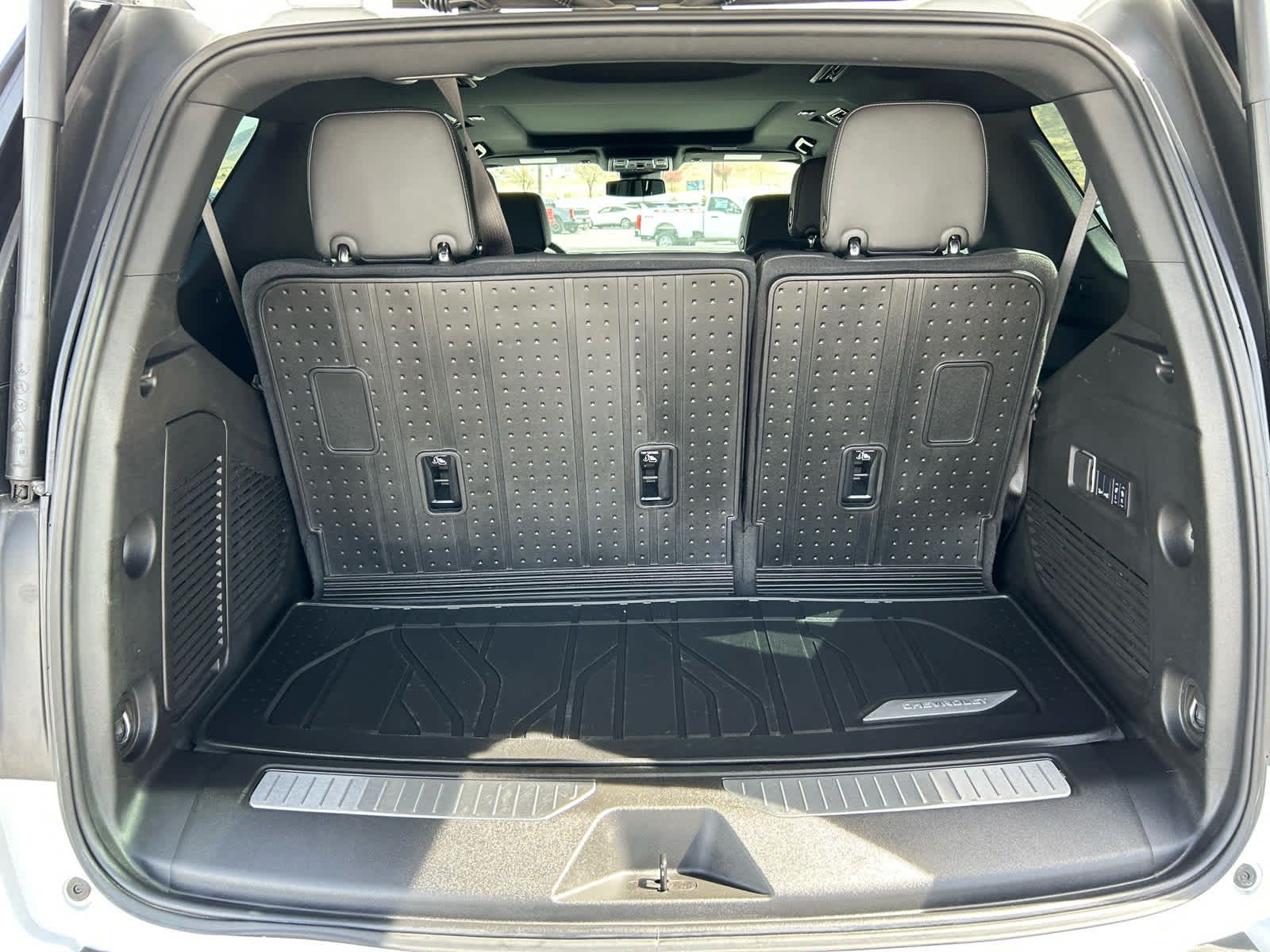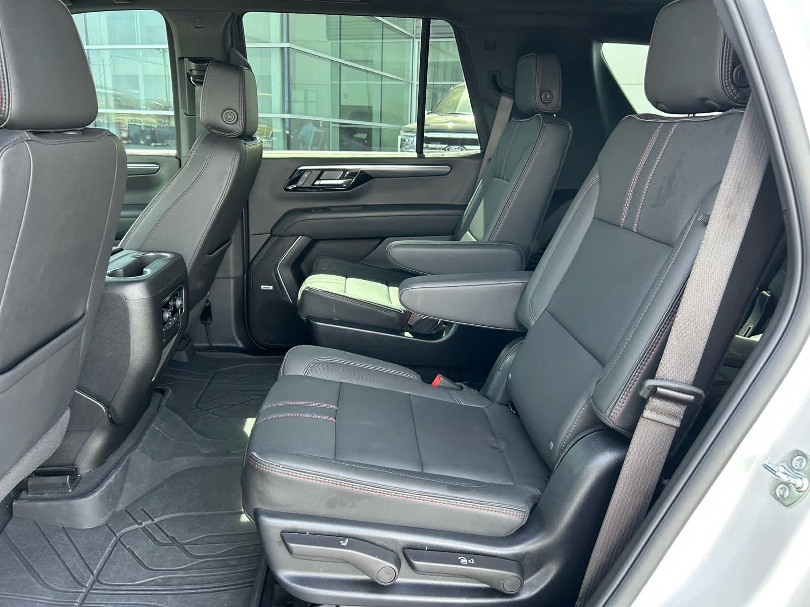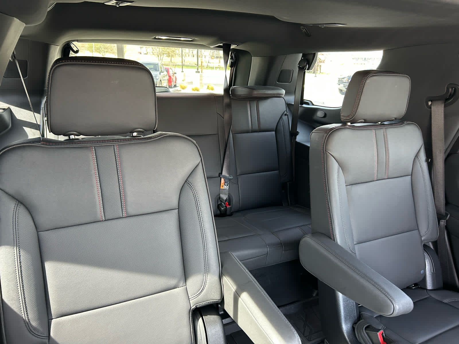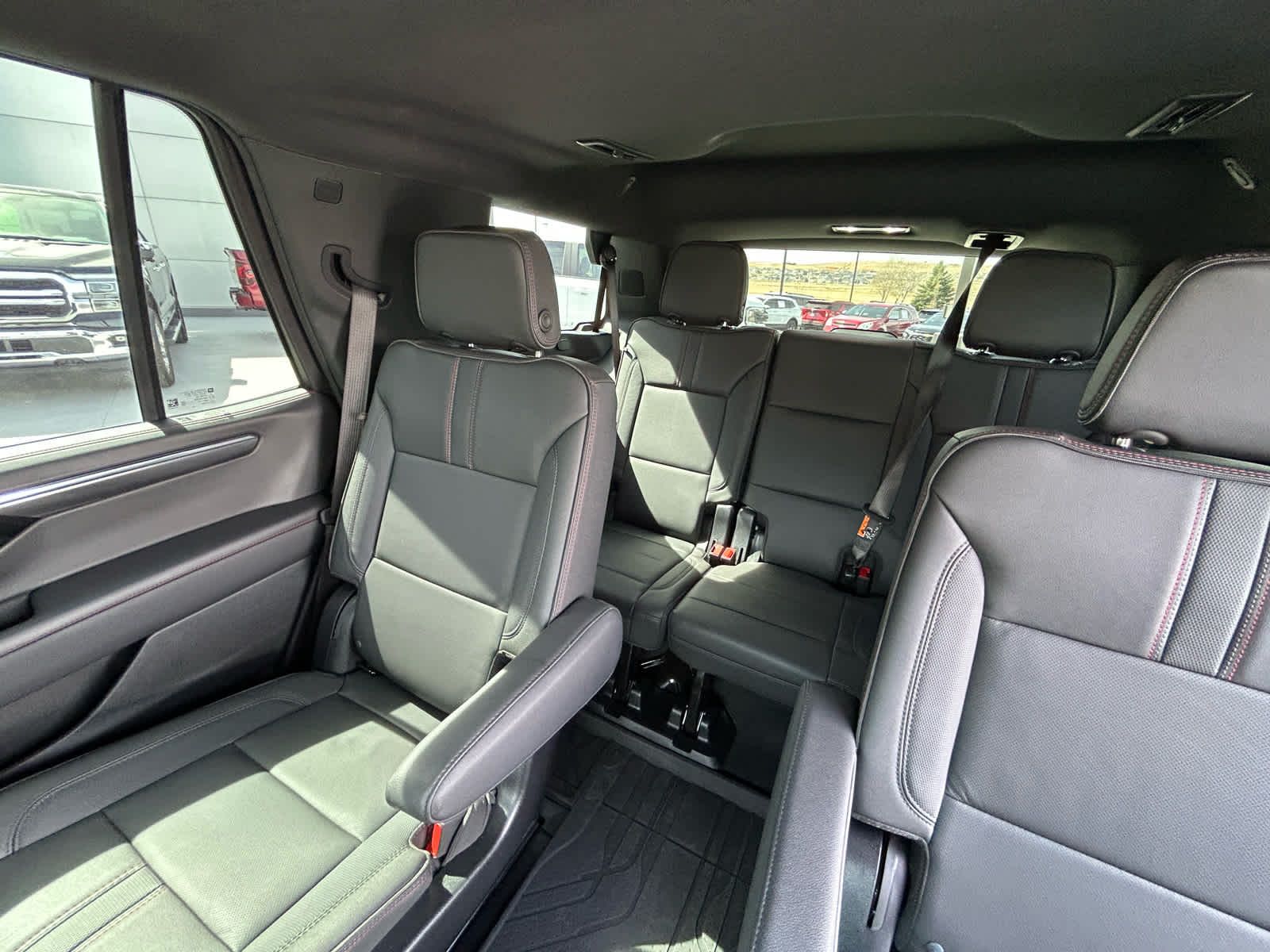 includes (A45) memory settings, (UQS) Bose 10-speaker Surround with CenterPoint, (DXR) outside heated power-adjustable, power-folding, body-color mirrors with driver-side auto-dimming and integrated turn signal indicators, (KI3) heated steering wheel, (KA6) second row outboard heated seats, (ATT) second row power 60/40 split-folding bench seats, (AS8) third row power 60/40 split-folding bench seats, (TGE) LED animated headlamps and (TAU) LED animated tail lamps, Includes (SFE) wheel locks, LPO. with express-open and close and power sunshade, SEATS, SECOND ROW BUCKET, POWER RELEASE, SUSPENSION, AIR RIDE ADAPTIVE, with Dynamic Fuel Management, Direct Injection and Variable Valve Timing, includes aluminum block construction (355 hp [265 kW] @ 5600 rpm, 383 lb-ft of torque [518 Nm] @ 4100 rpm) (STD), electronically controlled with overdrive, includes Traction Select System including tow/haul (STD), with Google built-in compatibility (select service plan required, terms and limitations apply), including navigation capability, connected apps, personalized profiles for each drivers settings, Natural Voice Recognition and Phone Integration (STD).