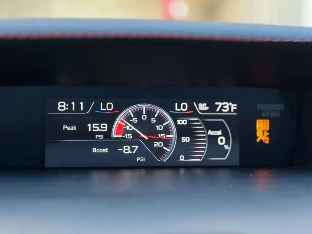 Leather Upholstery, Recaro Front seat, Proximity Entry System Multi-function remote, Faux Suede Steering wheel trim, Automatic Climate Control Front air conditioning, Dual Front air conditioning zones, 8 Driver seat power adjustments, Push-button start, Heated Driver seat, Leather Shift knob trim, Heated Passenger seat, Faux Suede Upholstery accents, Contrast Stitching Upholstery accents, Variable/speed-proportional Power steering, Cruise control, Leather Parking brake trim, Ambient lighting, Simulated Carbon Fiber Dash trim, Stainless Steel Door sill trim, 60-40 Split Bench Rear seat, Leatherette Door trim, Carpet Floor mat material, Air filtration, Aluminum Alloy Foot pedal trim, In Floor Storage, Split Rear seat folding, Two 12V Front Power outlet(s), Tilt And Telescopic Steering wheel, Rear Floor mats, Front Floor mats, Multi-function display, Front Console With Armrest And Storage Center console, Rear Center With Cupholders Armrests, Rear Folding Armrests, Illuminated Center console, External temperature display, MPG Fuel economy display, Range Fuel economy display, Front Reading lights, Tachometer Gauge, Door Courtesy lights, Manual Day/night Rearview mirror, Reclining Driver seat power adjustments, Height Driver seat power adjustments, 4.2 In. Instrument cluster screen size, Front Cupholders, Maintenance Due Warnings and reminders, Front Overhead console, Dual Illuminating Vanity mirrors, Rear Cupholders, Cargo area light, 1 One-touch windows, Panic Alarm Multi-function remote, Audio Steering wheel mounted controls, Carpet Floor material, Cruise Control Steering wheel mounted controls, Phone Steering wheel mounted controls, Multi-function Steering wheel mounted controls, Front Seatback Storage, Voice Control Steering wheel mounted controls, Trunk Release Multi-function remote, Organizer Tray Center console, Painted Aluminum Alloy Wheels, Cornering Headlights, LED Headlights, Carbon Fiber Rear spoiler color, Self-leveling Headlights, Quad Tip Exhaust, Safety Reverse Power windows, Heated windshield wiper rests, Wing Rear spoiler, Power Side mirror adjustments, Heated Side mirrors, Daytime running lights, Ground effects/lower spoilers, Approach Lamps Exterior entry lights, Steel Spare wheel, Hood scoop, Rear Window defogger, Variable Intermittent Front wipers, Tire Pressure Monitoring System, Integrated Turn Signals Side mirrors, Auto On/off Headlights, Auto Delay Off Headlights, Temporary Spare tire size, Front Underguard Bumper detail, Rear Underguard Bumper detail, Wiper Activated Headlights, Black Window trim, Black Mirror color, Manual Folding Side mirror adjustments, Black Grille color, Stainless Steel Exhaust tip color, Black Headlight bezel color, Brembo Premium brakes, Driver Knee airbags, Rearview Camera system, Front Side airbags, Rear Side curtain airbags, Front Side curtain airbags, 4-wheel ABS, Anti-lockout Power door locks, Cornering brake control, Painted brake calipers, Ventilated Disc Rear brake, Alarm Anti-theft system, Braking assist, Hill holder control, Ventilated Disc Front brake, Dual Front airbags, Vehicle Immobilizer Anti-theft system, Power brakes, LATCH System Child seat anchors, Electronic brakeforce distribution, Stability control, Traction control, In Dash Rearview monitor, Occupant Sensing Passenger Airbag deactivation, Front Seatbelt pretensioners, Front Seatbelt force limiters, Front Seatbelt warning sensor, Driver Emergency locking retractors, Fuel Cut-off Impact sensor, MySubaru Smart device app compatibility, Bluetooth Wireless data link, Voice Operated Radio, Bluetooth Auxiliary audio input, HD Radio Radio, Pandora Internet radio app, 7 In. Infotainment screen size, Touch Screen Display Radio, With Read Function Electronic messaging assistance, Voice Operated Electronic messaging assistance, SiriusXM Satellite radio, 6 Total speakers, IHeartRadio Internet radio app, Stitcher Internet radio app, AHA Internet radio app, USB Auxiliary audio input, IPod/iPhone Auxiliary audio input, Voice Guided Directions Satellite communications, Vehicle Location Smart device app function, Lock Operation Smart device app function, STARLINK Infotainment, Single Disc In-Dash CD, MP3 Playback In-Dash CD, Maintenance Status Smart device app function, Maintenance Scheduling Smart device app function, Jack Auxiliary audio input, Roadside Assistance Driver assistance app, AM/FM Radio, Radio data system, Speed sensitive volume control, Yelp Connected in-car apps, Performance exhaust, Rear Limited slip differential, Center Limited slip differential, Front Limited slip differential, Center Locking differential, Sport Tuned suspension, Full Time 4WD, Drive mode selector, Independent Front suspension classification, Independent Rear suspension classification, Inverted Front struts, Double Wishbone Rear suspension, 110 Amps Alternator, Diameter 20 Mm Rear stabilizer bar, Diameter 24 Mm Front stabilizer bar