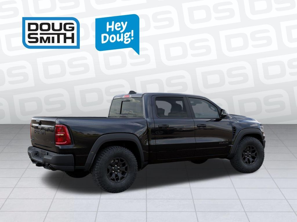 Diamond Black Crystal Pearlcoat 2026 Ram 1500 RHO 4WD 8-Speed Automatic 3.0L I6 Price includes: - Sale Price Includes: $1,500 Trade-In Allowance Incentive Program for customers that trade in a 2015 or newer passenger vehicle with 100,000 miles or less. - Offer Exp. 04/30/2026 - See Doug Smith CDJR for full details.