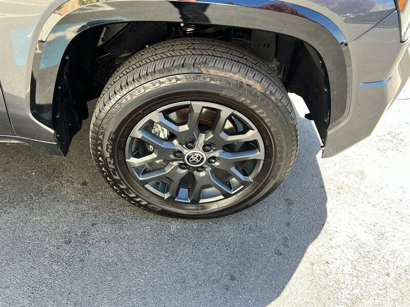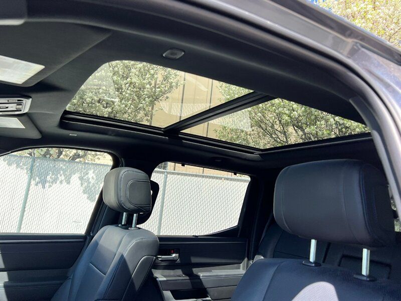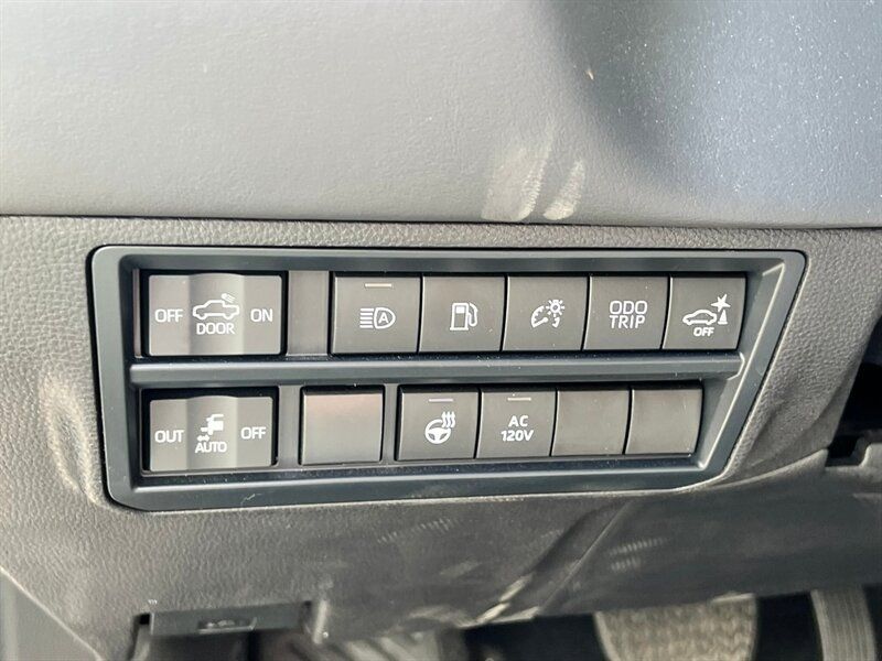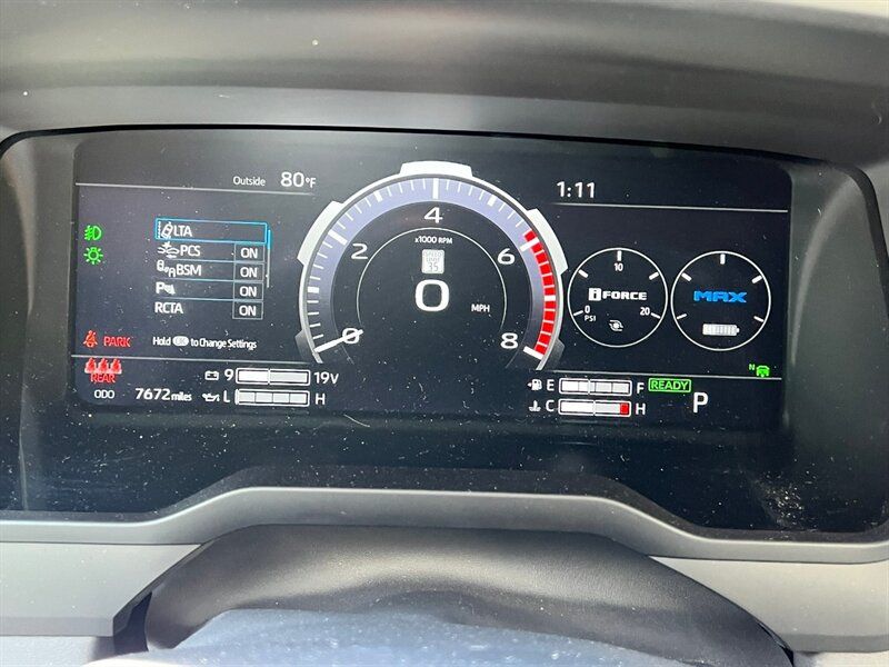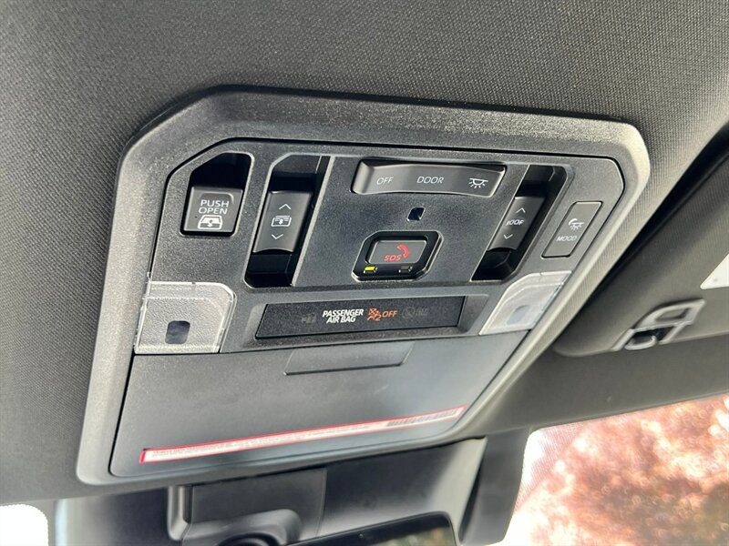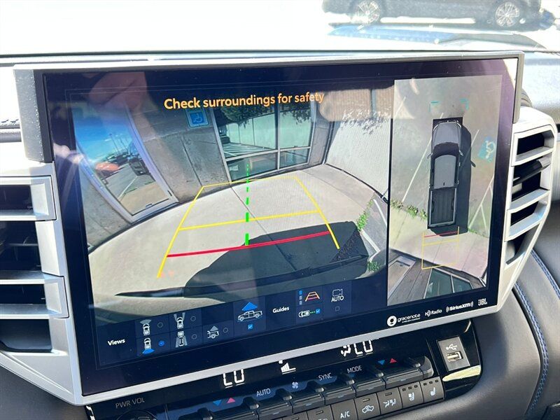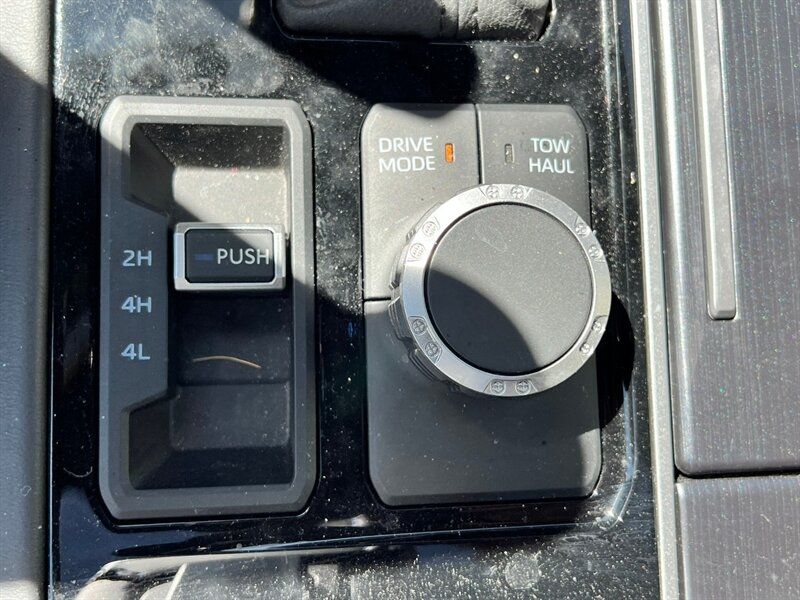 INSTALLED FEATURES: Air filtration, Front air conditioning: automatic climate control, Front air conditioning zones: dual, Rear vents: second row, Airbag deactivation: occupant sensing passenger, Front airbags: dual, Knee airbags: dual front, Side airbags: front, Side curtain airbags: front / rear, Antenna type: diversity / mast, Auxiliary audio input: Bluetooth / iPod/iPhone / USB, Digital sound processing, Premium brand: JBL, Radio: AM/FM / HD radio / touch screen display / voice operated, Radio data system, Satellite radio: SiriusXM, Speed sensitive volume control, Subwoofer: 1, Total speakers: 11, ABS: 4-wheel, Braking assist, Electronic brakeforce distribution, Electronic parking brake: auto off, Emergency braking preparation, Front brake type: ventilated disc, Power brakes, Rear brake type: ventilated disc, Regenerative braking system, Armrests: rear center with cupholders / rear folding, Center console trim: simulated alloy, Dash trim: simulated alloy, Door trim: simulated alloy, Floor material: carpet, Heated steering wheel, Interior accents: metallic-tone, Shift knob trim: leather / simulated alloy, Steering wheel trim: leather, Adaptive cruise control, Adaptive stop and go cruise control: semi-automatic, Ambient lighting, Assist handle: front / rear, Autonomous lane guidance: lane centering, Center console: front console with armrest and storage / illuminated, Courtesy lights: door, Cupholders: front / rear, Easy entry: power driver seat / power steering wheel, Footwell lights, Memorized settings: 2 driver / driver seat / side mirrors / steering wheel, Multi-function remote: panic alarm / proximity entry system / vehicle and key memory, One-touch windows: 4, Overhead console: front, Power outlet(s): 115V cargo area / 115V rear / 12V front / USB front / USB rear / USB-C front / USB-C rear, Power steering: variable/speed-proportional, Power windows: lockout button, Push-button start, Reading lights: front / rear, Rearview mirror: camera-based, Steering wheel: power tilt and telescopic, Steering wheel mounted controls: audio / cruise control / multi-function / phone / voice control, Storage: accessory hook / door pockets / front seatback / sunglasses holder, Sun visors, Sunshade: side window, Universal remote transmitter: Homelink - garage door opener, Vanity mirrors: dual illuminating, Wireless charging station: front, Active grille shutters, Body side moldings: black, Door handle color: body-color, Fender lip moldings: black, Front bumper color: black, Grille color: smoked chrome, Mirror color: body-color, Pickup bed light: LED, Rear bumper color: body-color, Rocker panel color: body-color, Tailgate: bedside/taillight release button / lift assist / power locking / removable, Window trim: black, Connected in-car apps: Google POIs / Google search, Infotainment: Toyota Audio Multimedia, Infotainment screen size: 14 in., Smartphone integration: wireless Android Auto / wireless Apple CarPlay, Clock, Compass, Customizable instrument cluster, Digital odometer, External temperature display, Fuel economy display: MPG / range, Gauge: oil pressure, Instrument cluster screen size: 12.3 in., Multi-function display, Trip odometer, Warnings and reminders: coolant temperature warning / low battery / low fuel level / low oil pressure / maintenance due, Daytime running lights: LED, Exterior entry lights: approach lamps, Front fog lights: LED, Headlights: auto delay off / auto high beam dimmer / auto on/off / LED / self-leveling / wiper activated, Taillights: LED, Side mirror adjustments: power / power folding / reverse gear tilt, Side mirrors: auto-dimming / heated / integrated turn signals, 4WD selector: electronic hi-lo, 4WD type: part time, Auto start/stop, Battery: maintenance-free, Battery saver, Drive mode selector, Electric motor battery type: nickel-metal hydride, EV battery capacity: 1.9 kWh, Starter type: starter/belt alternator, Moonroof / Sunroof: anti-trapping / one-touch open/close / power panoramic / power sunshade / tilt/slide, Active head restraints: dual front, Automatic emergency braking: front / front pedestrian / intersection/junction turn / rear / rear pedestrian, Blind spot safety: sensor/alert / trailer coverage, Camera system: surround view, Check rear seat reminder, Child safety door locks, Child seat anchors: LATCH system, Cross traffic alert: rear, Impact sensor: door unlock / fuel cut-off / post-collision safety system, Lane deviation sensors, Lane keeping assist, Parking sensors: front / rear, Pedestrian safety sound generation, Pre-collision warning system: audible warning / intersection/junction turn / pedestrian detection / visual warning, Rearview monitor: in dash, Safety brake pedal system, Traffic sign recognition, Emergency locking retractors: front / rear, Front seatbelts: 3-point, Rear seatbelts: 3-point, Seatbelt force limiters: front / rear, Seatbelt pretensioners: front / rear, Seatbelt warning sensor: front, Driver seat: heated / ventilated, Driver seat power adjustments: 10 / 4-way power lumbar / height / reclining, Front headrests: 2 / adjustable, Front seat type: bucket, Passenger seat: heated / ventilated, Passenger seat power adjustments: 10 / 4-way power lumbar / height / reclining, Rear headrests: 3 / adjustable / foldable, Rear seat: heated / ventilated, Rear seat folding, Rear seat type: 60-40 split bench, Upholstery: leather-trimmed, Anti-theft system: alarm / vehicle immobilizer, Power door locks: anti-lockout / auto-locking, Hill holder control, Stability control, Traction control, Trailer stability control, Front shock type: twin-tube gas, Front spring type: coil, Front stabilizer bar, Front struts, Front suspension classification: independent, Front suspension type: double wishbone, Rear shock type: twin-tube gas, Rear spring type: coil, Rear suspension classification: solid live axle, Rear suspension type: multi-link, Driver assistance app: roadside assistance, Electronic messaging assistance: voice operated / with read function, Hands-fre