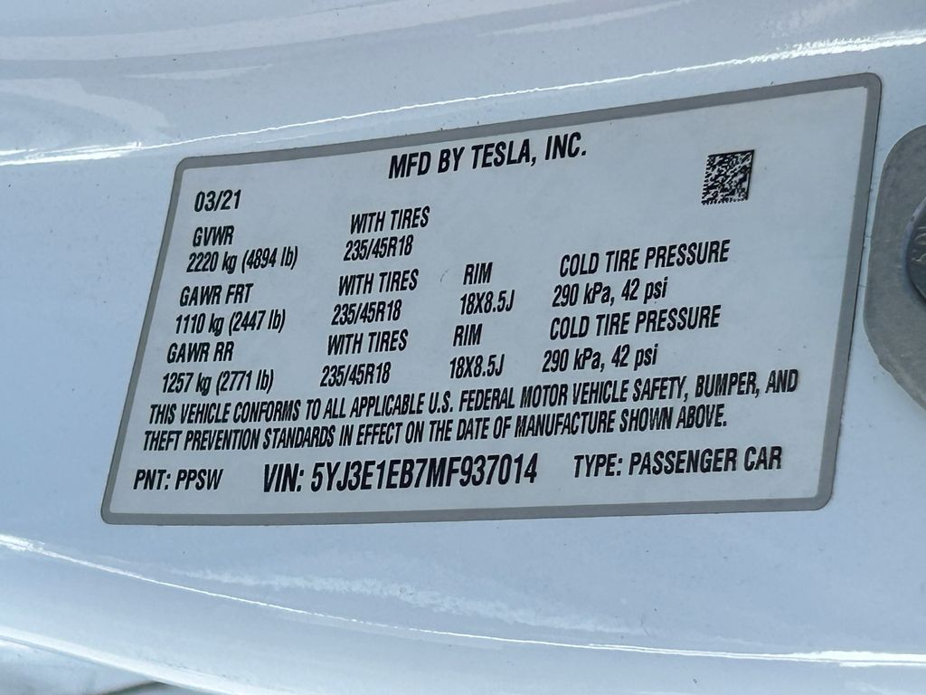 White 2021 Tesla Model 3 Long Range AWD 1-Speed Automatic Electric Motor