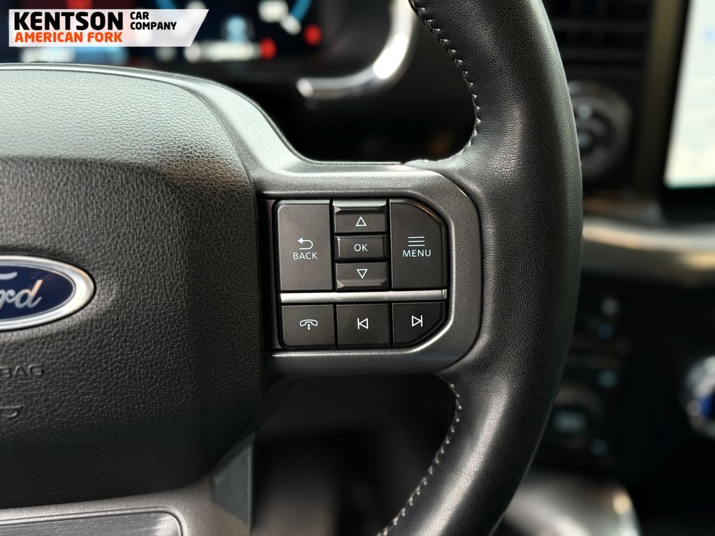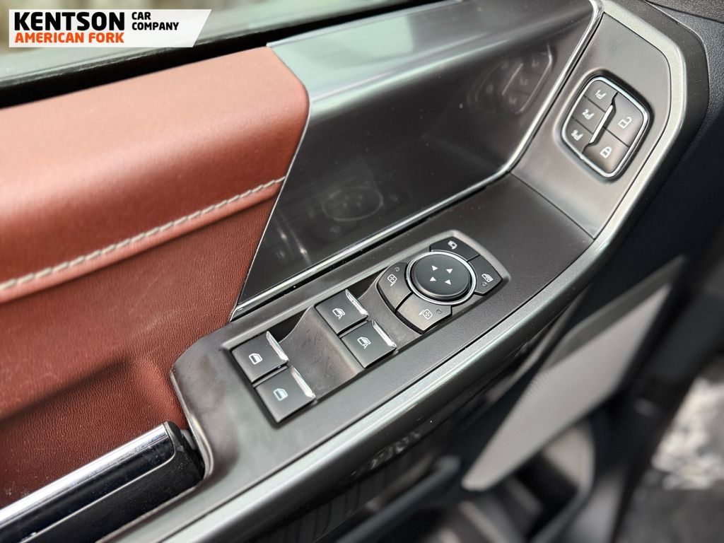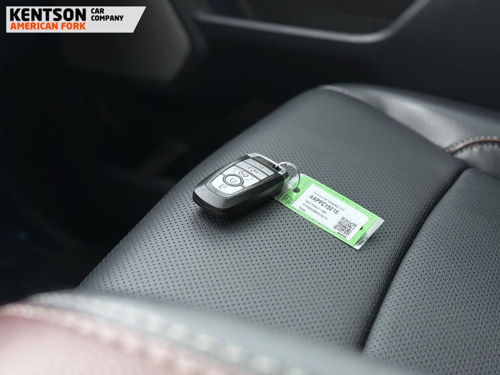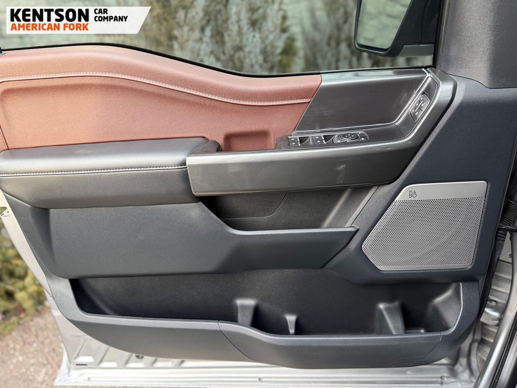 ABS brakes, Alloy wheels, Compass, Electronic Stability Control, Front dual zone A/C, Heated door mirrors, Heated front seats, Illuminated entry, Low tire pressure warning, Remote keyless entry, Traction control, 4-Wheel Disc Brakes, 8 Speakers, Adjustable pedals, Air Conditioning, AM/FM radio: SiriusXM with 360L, Auto High-beam Headlights, Auto-dimming door mirrors, Auto-dimming Rear-View mirror, Automatic temperature control, Brake assist, Bumpers: chrome, Chrome wheels, Class IV Trailer Hitch Receiver, Delay-off headlights, Driver door bin, Driver vanity mirror, Dual front impact airbags, Dual front side impact airbags, Emergency communication system: SYNC 4 911 Assist, Exterior Parking Camera Rear, Front anti-roll bar, Front Bucket Seats, Front Center Armrest, Front fog lights, Front reading lights, Front wheel independent suspension, Fully automatic headlights, Garage door transmitter, Heated steering wheel, Memory seat, Occupant sensing airbag, Outside temperature display, Overhead airbag, Overhead console, Panic alarm, Passenger door bin, Passenger vanity mirror, Pedal memory, Power door mirrors, Power driver seat, Power passenger seat, Power steering, Power windows, Radio data system, Radio: B&O Sound System by Bang & Olufsen, Rear reading lights, Rear seat center armrest, Rear step bumper, Rear window defroster, Security system, Speed control, Speed-sensing steering, Split folding rear seat, Steering wheel mounted audio controls, SYNC 4 w/Enhanced Voice Recognition, Tachometer, Telescoping steering wheel, Tilt steering wheel, Trip computer, Turn signal indicator mirrors, Variably intermittent wipers, Ventilated front seats, Voltmeter, and Wheels: 18'' Chrome-Like PVD.