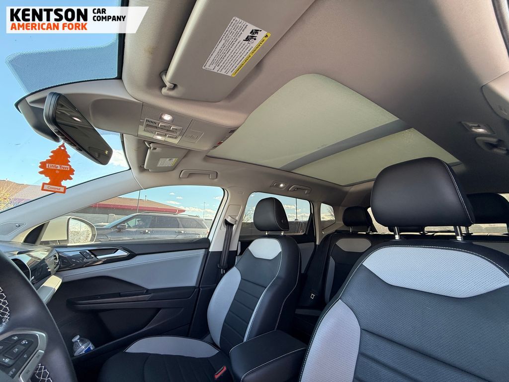 4-Wheel Disc Brakes, 5.20 Axle Ratio, 9 Speakers, ABS brakes, Active Blind Spot Monitor, Air Conditioning, Alloy wheels, AM/FM radio: SiriusXM with 360L, Auto High-beam Headlights, Auto-dimming Rear-View mirror, Automatic temperature control, Brake assist, Bumpers: body-color, Compass, Delay-off headlights, Driver door bin, Driver vanity mirror, Dual front impact airbags, Dual front side impact airbags, Electronic Stability Control, Emergency communication system: Car-Net, Exterior Parking Camera Rear, Four wheel independent suspension, Front anti-roll bar, Front Bucket Seats, Front Center Armrest, Front dual zone A/C, Front reading lights, Front Strut Rear Multi-Link Suspension, Fully automatic headlights, Heated & Ventilated Front Comfort Sport Seats, Heated door mirrors, Heated front seats, Heated steering wheel, Illuminated entry, Leather Shift Knob, Low tire pressure warning, Navigation system: VW Car-Net Guide & Inform, Occupant sensing airbag, Outside temperature display, Overhead airbag, Overhead console, Panic alarm, Passenger door bin, Passenger vanity mirror, Perforated Vienna Leather Seating Surfaces, Power door mirrors, Power driver seat, Power steering, Power windows, Radio data system, Radio: MIB3 Discover Media AM/FM/HD, Rain sensing wipers, Rear anti-roll bar, Rear Parking Sensors, Rear seat center armrest, Rear window defroster, Rear window wiper, Remote keyless entry, Roof rack: rails only, Security system, Speed control, Speed-sensing steering, Split folding rear seat, Spoiler, Steering wheel mounted audio controls, Tachometer, Telescoping steering wheel, Tilt steering wheel, Traction control, Trip computer, Variably intermittent wipers, Ventilated front seats, and Wheels: 19'' 2-Tone Machined Alloy.