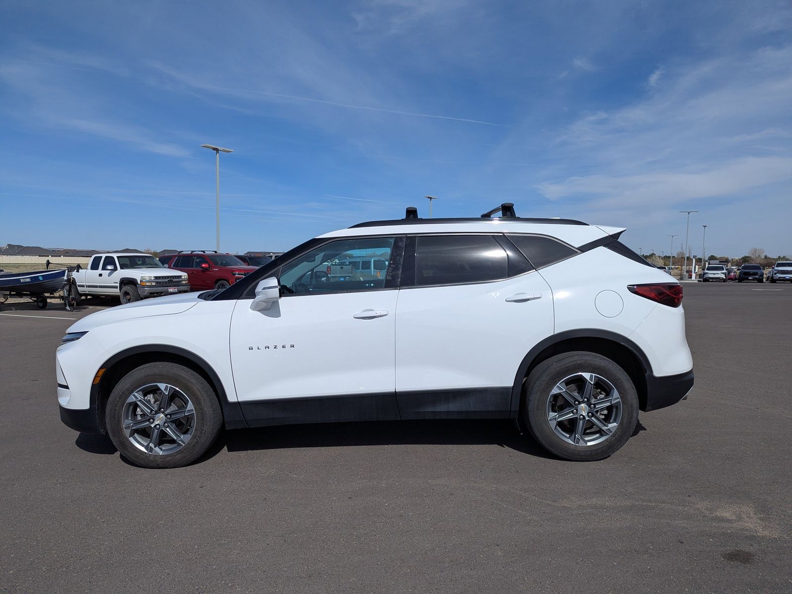 This one-owner Blazer stands out with its bold design, featuring black bowties, roof rails, and sleek 18 aluminum wheels for a modern, aggressive look.