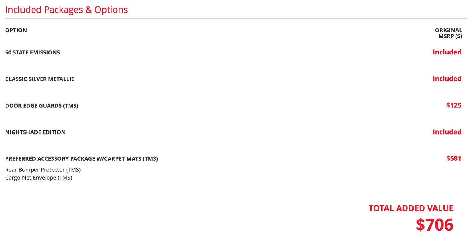 Preferred Accessory Package W/Carpet Mats (Tms)
