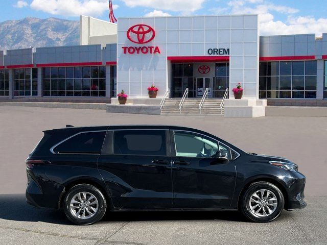 2024 Toyota Sienna LE 8 PassengerBlack 2.5L I436/36 City/Highway MPGCertified.Toyota Gold Certified Details:* Warranty Deductible: $0* Powertrain Limited Warranty: 84 Month/100,000 Mile (whichever comes first) from TCUV purchase date* Roadside Assistance for 7 Year / 100,000 Mile. Standard New-Car Financing Rates Available. Warranty honored at over 1,400 Toyota dealers in the continental U.S. & Canada. Trade-ins accepted. Trouble-free handling of your transaction, including DMV paperwork* Roadside Assistance* Transferable Warranty* Limited Warranty: 12 Month/12,000 Mile Limited Comprehensive Warranty: 12 Month/12,000 Mile (whichever comes first) from certified purchase date* Vehicle History* 160 Point InspectionCARFAX One-Owner.Clean CARFAX.To see more quality vehicles like this one right here just click on www.oremtoyota.com or dial (801) 823-6020. At Orem Toyota, we pledge to consistently provide a caring, value driven, and exceptional experience for all of our guests. We love being a family owned business and hope to welcome you to be part of our family. This Toyota Sienna is equipped with the following features: Toyota Gold Certified Certified, 17 Alloy Wheels, 3rd row seats: split-bench, 4-Wheel Disc Brakes, 6 Speakers, ABS brakes, Air Conditioning, Alloy wheels, AM/FM radio: SiriusXM, Apple CarPlay/Android Auto, Auto High-beam Headlights, Auto-dimming door mirrors, Automatic temperature control, Axle Ratio: TBA, Brake assist, Bumpers: body-color, Compass, Delay-off headlights, Door auto-latch, Driver door bin, Driver vanity mirror, Driver's Seat Mounted Armrest, Dual front impact airbags, Dual front side impact airbags, Electronic Stability Control, Emergency communication system: Safety Connect (1-year trial), Exterior Parking Camera Rear, Fabric Seat Material, Four wheel independent suspension, Front anti-roll bar, Front Bucket Seats, Front dual zone A/C, Front reading lights, Fully automatic headlights, Heated door mirrors, Illuminated entry, Knee airbag, Lane Departure Warning System, Low tire pressure warning, Occupant sensing airbag, Outside temperature display, Overhead airbag, Overhead console, Panic alarm, Passenger door bin, Passenger seat mounted armrest, Passenger vanity mirror, Power door mirrors, Power driver seat, Power steering, Power windows, Radio data system, Radio: Audio System, Rear air conditioning, Rear anti-roll bar, Rear reading lights, Rear seat center armrest, Rear side impact airbag, Rear window defroster, Rear window wiper, Reclining 3rd row seat, Remote keyless entry, Speed control, Speed-sensing steering, Split folding rear seat, Spoiler, Steering wheel mounted audio controls, Tachometer, Telescoping steering wheel, Tilt steering wheel, Traction control, Trip computer, Turn signal indicator mirrors, and Variably intermittent wiperS.