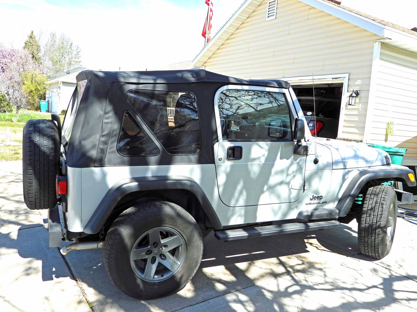 2006 Jeep Wrangler SE silver, last of the great TJ's. ONLY 70K original miles!! Automatic, 4.0 Liter 6 cylinder, 4x4. Runs great, no leaks, everything works great: Heating, A/C, Radio, all dash gauges, seat belts, and all interior and exterior lighting. Tires in very good condition with full size spare. Power steering, front and rear bumpers in great shape and aftermarket step sides. New Battery, Brakes, Brake shoes and Disc/Rotors, less than 300 miles on all of these. Soft top new in 2024 is in great shape, only been off twice in last 2 years, has new custom fit full rain cover. Additionally, includes 'doors-off' side mirrors for the open air road experience. Front bucket seats in like new condition and rear bench seat in like new condition. CASH sale only!