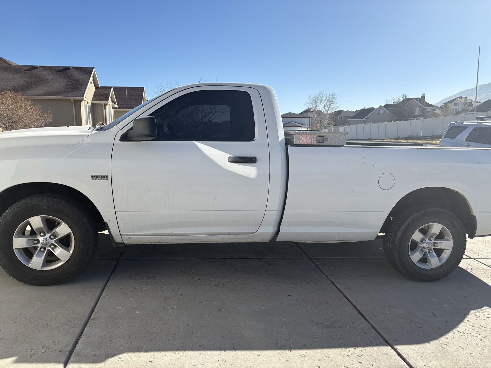 Solid work truck with the legendary 5.7L HEMI V8 paired to a smooth 6-speed automatic. The long 8-foot bed makes it a great hauler, and the HEMI has plenty of pull left in it. Has been a reliable driver — starts up, drives, and gets down the road without issue. High mileage honestly reflected in the price. Note: passenger-side manifold bolts snapped, so you’ll occasionally hear an exhaust tick — cosmetic/sound issue, not a drivability problem. Perfect for someone who wants a capable work truck without the new-truck price tag.