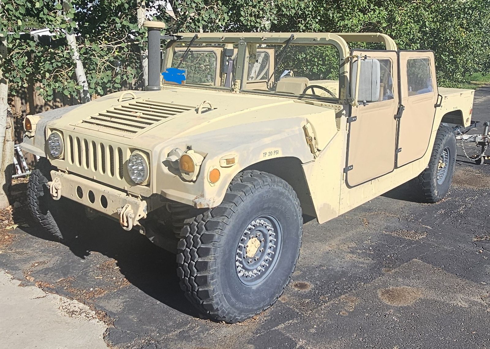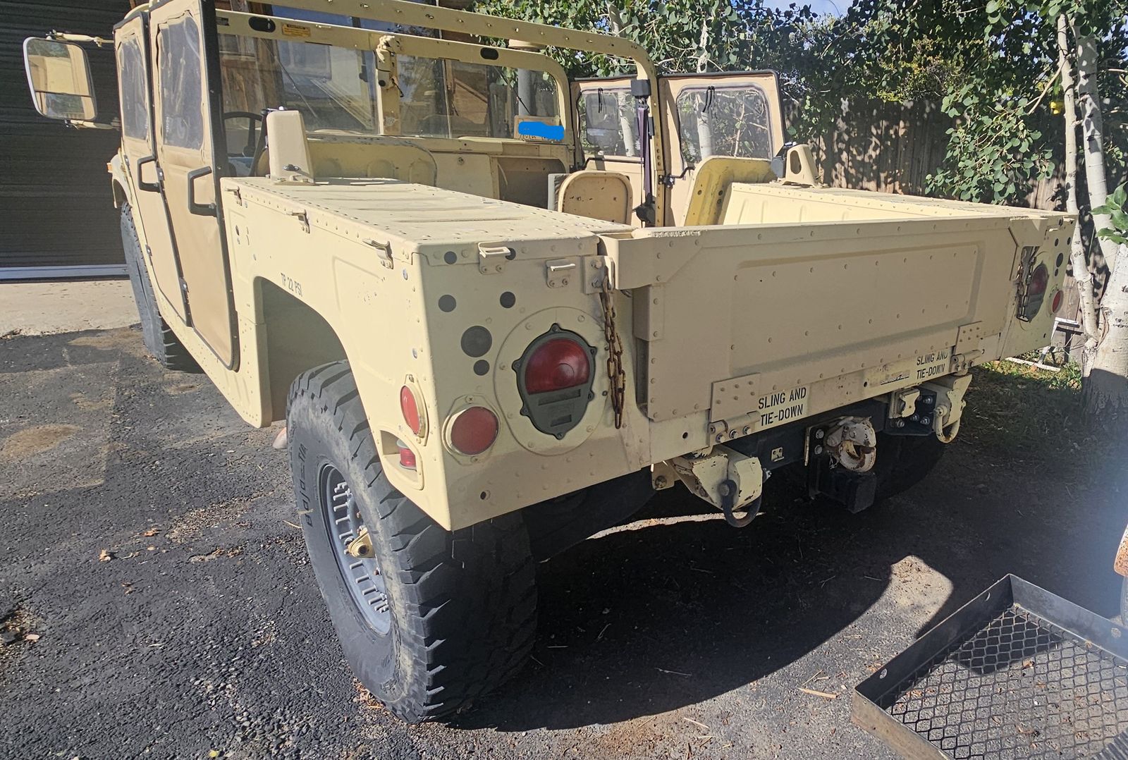 We wanted a HMMWV that was easy to drive, comfortable in the summer heat and winter cold. We wanted to be able to go hard core off roading and still drive around town and go on dates. We wanted to be able to use it as a truck or take a bunch of people to a party. All the while looking like a military truck. We also wanted to be able to go deep into the mountains and have a base camp where we could set-up and go off during the day then come back to camp. So we bought a matching military trailer that we were going to make into a camp rig. This is a running and driving fully registered/plated truck transferable to any state. To do all this we acquired the following and were about to install or have already installed these expensive parts.