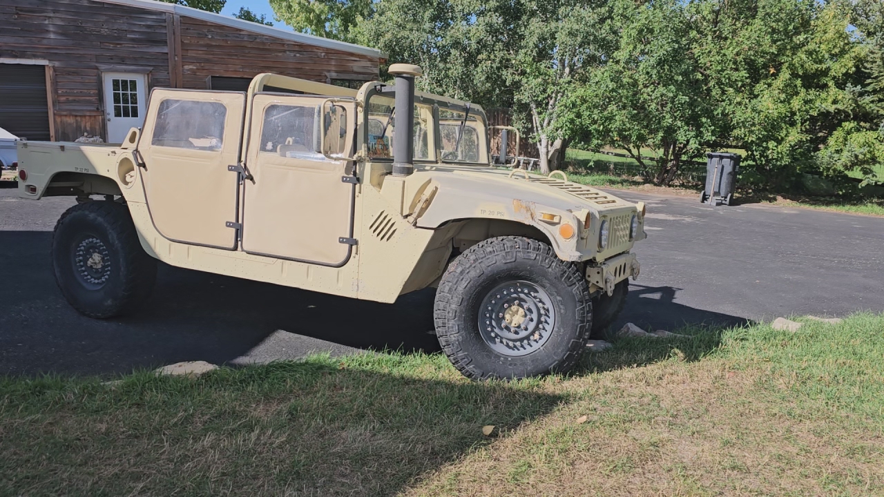 This is a VERY low mileage M998 with less than 10K miles! The engine was replaced with a new GEP 6.5 Diesel and matching transmission. We drove this truck from California out to Utah and she runs great. Arriving in Utah we started acquiring parts to make her the ultimate offroad vehicle than you can drop the kids at school with, go get groceries, or go to the movies in.