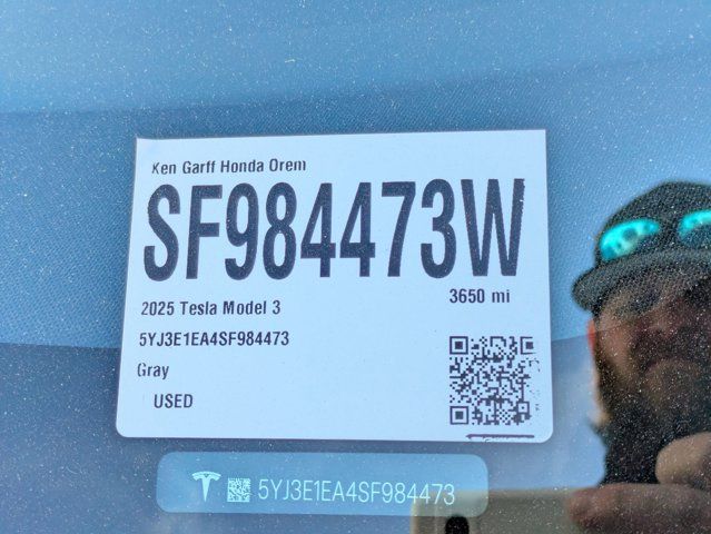 Ken Garff Honda is very proud to offer this charming-looking 2025 Tesla Model 3 Long Range in Gray.ABS brakes, Alloy wheels, Compass, Electronic Stability Control, Emergency communication system, Front dual zone A/C, Heated door mirrors, Heated front seats, Heated rear seats, Illuminated entry, Low tire pressure warning, Navigation System, Traction control.Certification Program Details: 118 point vehicle inspection 3 month / 3,000 miles comprehensive limited warranty with a $0 deductible Complementary vehicle history report GarffCARE roadside assistance Powertrain extending additives: Engine deposit cleaning additive Transmission conditioning additive Fuel system cleaner Cooling-system treatment Artic Blast A/C treatment Power steering fluid conditioner Second key and remote Free home delivery available No hassle return/exchange for 5-days or 500 milesIn addition to transparent, no hassle pricing and upfront no hassle trade evaluation.....We provide an enjoyably brief and easy Sales Experience...Your Pace...Your Deal...No Exceptions!