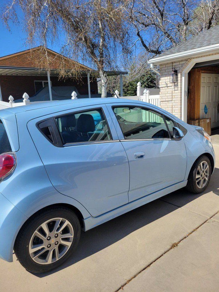 This is one sweet little blueberry.......CLEAN TITLE.....Chevy Spark EV, THE PERFECT CAR TO GET YOUR DAUGHTER, GRANDDAUGHTER OR YOURSELF TO SCHOOL OR TO WORK. Front wheel drive, a/c, sirius xm, heated seats, new tires ( less than 1000 miles) Everything working perfectly!!! My granddaughter used it to get to high school , college and do a bit of doordashing , has under 31000 miles in 11 years, but she's ready for something else. Perfect for a teenager , no gas , no oil needed, clean title. One small door ding from a careless person in a parking lot and one little scratch on the back bumper from a little brother's bike. (see pictures.) Range is 40 to 50 miles depending how warm it is outside and with regen braking, you always always always get more than that. So no , it's not as far as when brand new ,( range when new was 80) but it's nice to know that those teenagers can't get too far from home, or too close to mischief....... Cheaper than a golf cart , but with heat, xm and air conditioning.