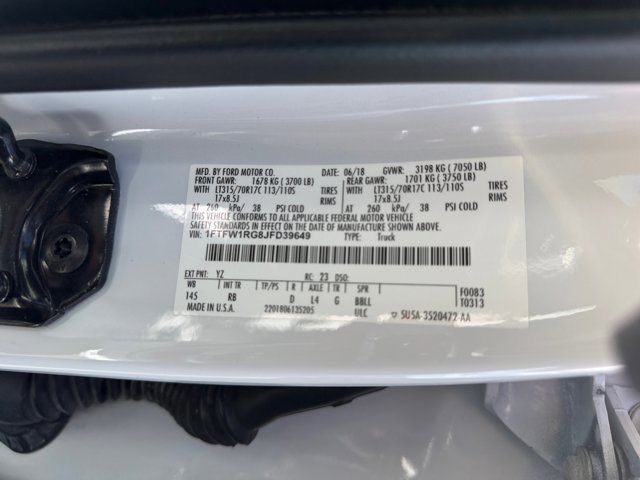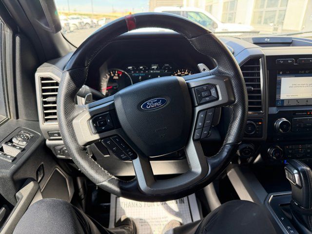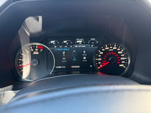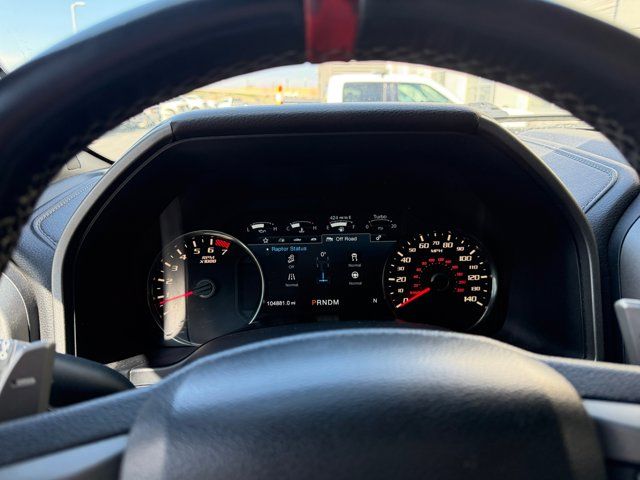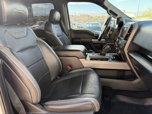 Equipment Group 802A Luxury,Electronic Locking w/4.10 Axle Ratio,4.10 Front Axle w/Torsen Differential,GVWR: 7,050 lbs Payload Package,17 Cast Aluminum Wheels,17 Forged Aluminum Bead-Lock Capable Wheels,Unique Cloth Trim Seats,Heated Leather 40/Console/40 Front Seats,Radio: B&O Play Premium Audio System,Raptor Technology Package,Integrated Trailer Brake Controller,LED Box Lighting,Pro Trailer Backup Assist,Tailgate Step w/Tailgate Lift Assist,BLIS Blind Spot Information System,LED Sideview Mirror Spotlights,Power Glass Heated Sideview Mirrors,360 Degree Camera,SYNC Connect,Inflatable Rear Safety Belts,Voice-Activated Touchscreen Navigation System,10-Way Power Driver & Passenger Seats,SYNC 3,SYNC,Adaptive Cruise Control w/Collision Mitigation,Auto High Beam,Lane-Keeping System,8 Productivity Screen,8-Way Power Driver's Seat w/Power Lumbar,Intelligent Access w/Push-Button Start,Advanced Security Pack,Ambient Lighting - Ice Blue Color Only,Dual-Zone Electronic Automatic Temperature Control,Heated Steering Wheel,Memory System (Seat,Pedal,Exterior Mirror),Power-Adjustable Pedals,Power-Sliding Rear Window,Remote Start System w/Remote Tailgate Release,Power Tilt/Telescoping Steering Column w/Memory,Tailgate Applique FORD,Universal Garage Door Opener,4-Wheel Disc Brakes,Emergency communication system: 911 Assist,Exterior Parking Camera Rear,AM/FM radio: SiriusXM,Compass,7 Speakers,Auto-dimming Rear-View mirror,Variably intermittent wipers,Trip computer,Traction control,Tilt steering wheel,Telescoping steering wheel,Steering wheel mounted audio controls,Split folding rear seat,Speed-sensing steering,Speed control,Security system,Remote keyless entry,Rear window defroster,Rear step bumper,Rear reading lights,Radio data system,Power windows,Power steering,Power driver seat,Power door mirrors,Passenger vanity mirror,Passenger door bin,Panic alarm,Overhead console,Overhead airbag,Outside temperature display,Occupant sensing airbag,Low tire pressure warning,Leather steering wheel,Illuminated entry,Fully automatic headlights,Front wheel independent suspension,Front reading lights,Front fog lights,Front anti-roll bar,Dual front side impact airbags,Dual front impact airbags,Driver vanity mirror,Driver door bin,Delay-off headlights,CD player,Brake assist,Alloy wheels,Adjustable head restraints: driver and passenger w/tilt,ABS brakes,Tachometer,Rear Parking Sensors,Front Center Armrest,Front Bucket Seats,Electronic Stability Control,Air Conditioning