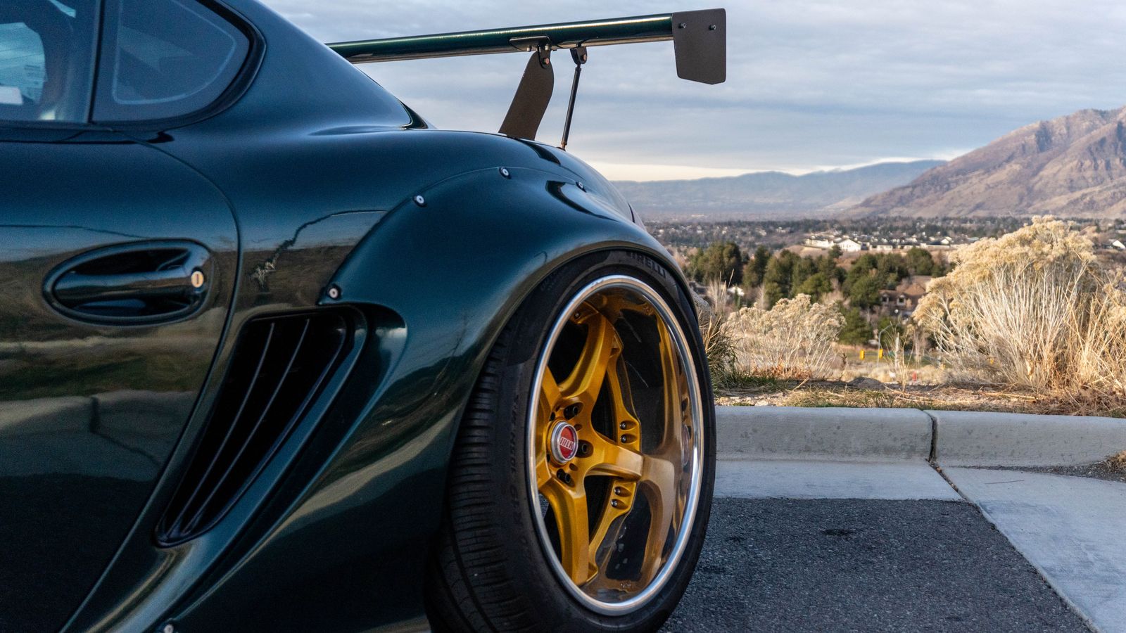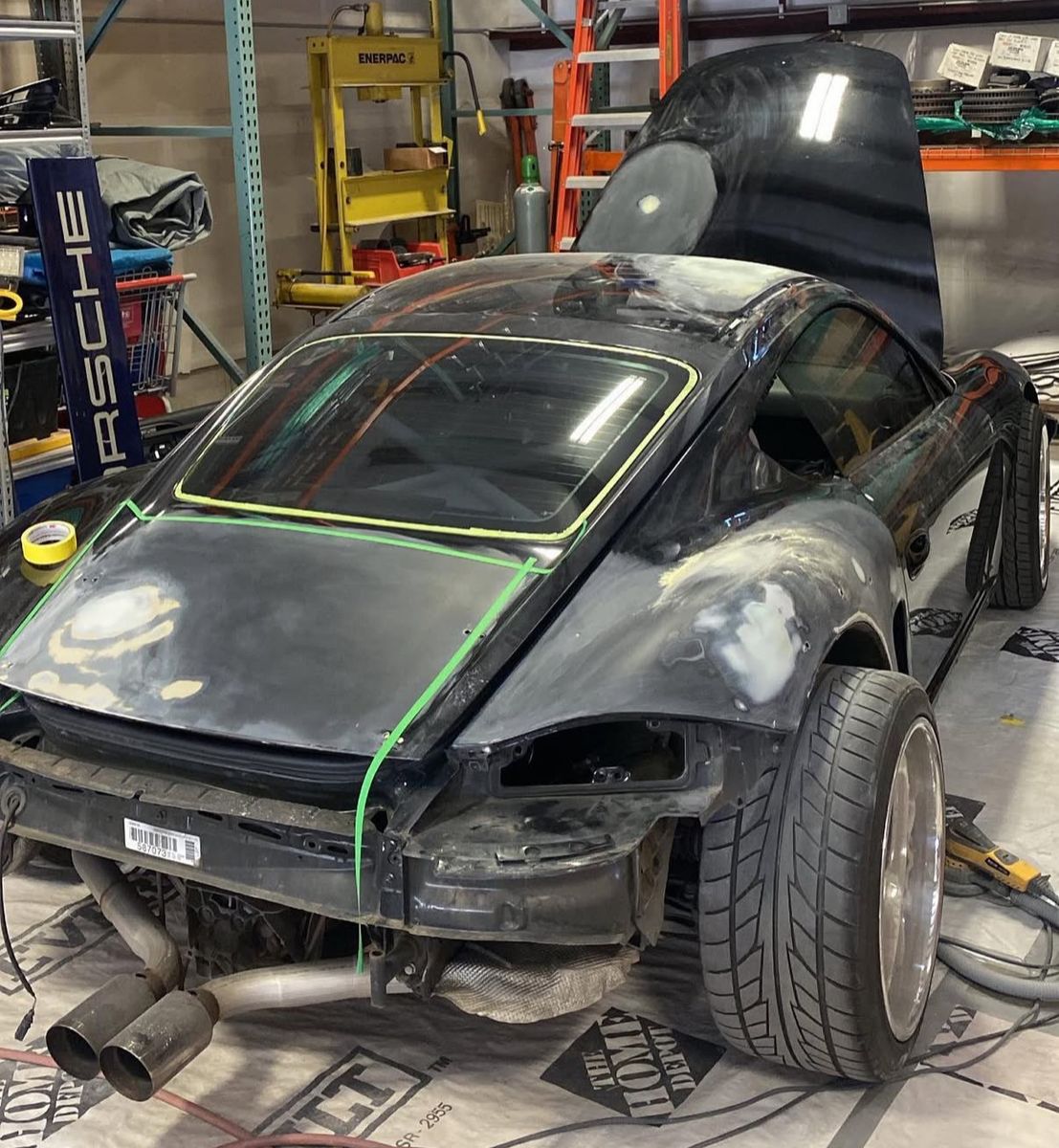 Rebuilt title. I have photos from the damage—very minor quarter-panel issue, not structural. With the widebody conversion, the quarters were modified and the car was fully repainted anyway, so it made sense.