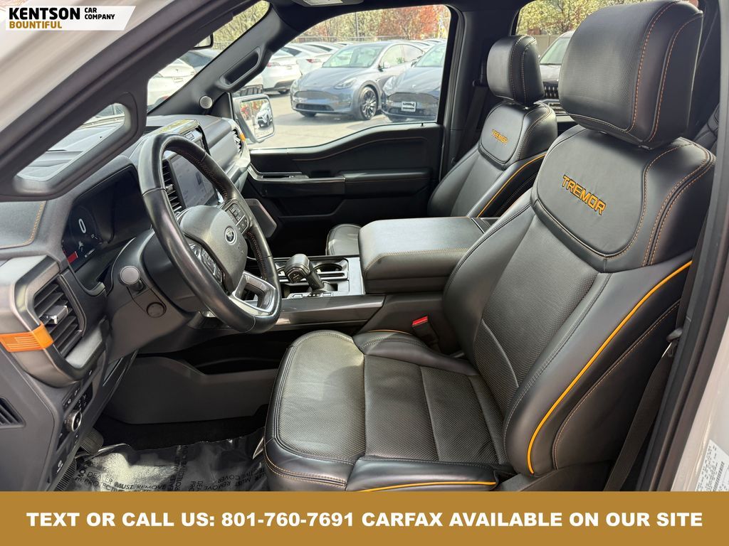 360 Degree Camera, Adaptive Cruise Control, Backup Camera, Bed Cover, Blind Spot Monitor, Convenience Package, Cooled Seats, Cross Traffic Alert, Heated Seats, Heated Steering Wheel, Home Link, Keyless Entry, Lane Departure, Lane Keep Assist, Multiple Terrain Modes, Navigation System, Panoramic Sunroof, Parking Sensors, Power Folding Mirrors, Power Rear Window, Push Start, Remote Start, Steering Wheel Audio Controls, Sunroof, Touch Screen, Tow Package, Wireless Charging, 4WD, 12'' Productivity Screen in Instrument Cluster, 2nd Row Heated Seats, 360 Degree Camera, ABS brakes, Advanced Security Pack, Alloy wheels, Compass, Electronic Stability Control, Equipment Group 402A High, Ford Co-Pilot360 Assist 2.0, Front dual zone A/C, Heated door mirrors, Heated front seats, Heated Steering Wheel, Illuminated entry, LED Projector w/Dynamic Bending Headlamps, Low tire pressure warning, Partitioned Lockable Fold-Flat Storage, Power Glass Sideview Mirr w/Body-Color Skull Caps, Power Tilt/Telescoping Steering Column w/Memory, Power-Adjustable Pedals w/Memory, Power-Sliding Rear Window, Pro Trailer Backup Assist & Pro Trailer Hitch Assist, Radio: B&O Sound System by Bang & Olufsen, Rain-Sensing Wipers, Remote keyless entry, Traction control, Twin Panel Moonroof, Unique Tremor Leather-Trimmed Bucket Seats, Universal Garage Door Opener, Wireless Charging Pad.