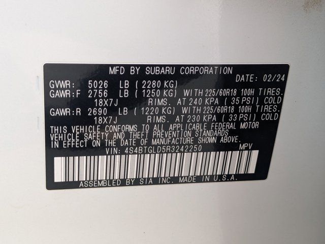 ALL-WEATHER FLOOR LINERS -inc: Part number J501SAN100,GRAY STARTEX-TRIMMED UPHOLSTERY -inc: green stitching,CRYSTAL WHITE PEARL,STANDARD MODEL,WINDSHIELD SUNSHADE -inc: Part number SOA3991722,Turbocharged,All Wheel Drive,Power Steering,ABS,4-Wheel Disc Brakes,Brake Assist,Brake Actuated Limited Slip Differential,Aluminum Wheels,Tires - Front All-Season,Tires - Rear All-Season,Conventional Spare Tire,Sun/Moonroof,Generic Sun/Moonroof,Heated Mirrors,Power Mirror(s),Integrated Turn Signal Mirrors,Rear Defrost,Privacy Glass,Intermittent Wipers,Variable Speed Intermittent Wipers,Rear Spoiler,Remote Trunk Release,Power Liftgate,Power Door Locks,Luggage Rack,Daytime Running Lights,Automatic Headlights,Headlights-Auto-Leveling,LED Headlights,Fog Lamps,Automatic Highbeams,AM/FM Stereo,Premium Sound System,Satellite Radio,MP3 Capability,Bluetooth Connection,Telematics,Auxiliary Audio Input,HD Radio,Smart Device Integration,Requires Subscription,MP3 Capability,Steering Wheel Audio Controls,Bluetooth Connection,Power Driver Seat,Power Passenger Seat,Bucket Seats,Heated Front Seat(s),Driver Adjustable Lumbar,Pass-Through Rear Seat,Heated Rear Seat(s),Rear Bench Seat,Adjustable Steering Wheel,Trip Computer,Power Windows,Telematics,Requires Subscription,Leather Steering Wheel,Heated Steering Wheel,Keyless Entry,Power Door Locks,Keyless Entry,Power Door Locks,Keyless Start,Hands-Free Liftgate,Universal Garage Door Opener,Cruise Control,Adaptive Cruise Control,Climate Control,Multi-Zone A/C,A/C,Premium Synthetic Seats,Driver Vanity Mirror,Passenger Vanity Mirror,Driver Illuminated Vanity Mirror,Passenger Illuminated Visor Mirror,Auto-Dimming Rearview Mirror,Floor Mats,Cargo Shade,Keyless Start,Smart Device Integration,Smart Device Integration,Requires Subscription,Power Door Locks,Power Windows,Trip Computer,Security System,Immobilizer,Cruise Control Steering Assist,Traction Control,Stability Control,Traction Control,Front Side Air Bag,Lane Departure Warning,Lane Keeping Assist,Lane Departure Warning,Front Collision Mitigation,Driver Monitoring,Telematics,Requires Subscription,Blind Spot Monitor,Cross-Traffic Alert,Rear Collision Mitigation,Evasion Assist,Tire Pressure Monitor,Driver Air Bag,Passenger Air Bag,Front Head Air Bag,Rear Head Air Bag,Passenger Air Bag Sensor,Knee Air Bag,Child Safety Locks,Back-Up Camera