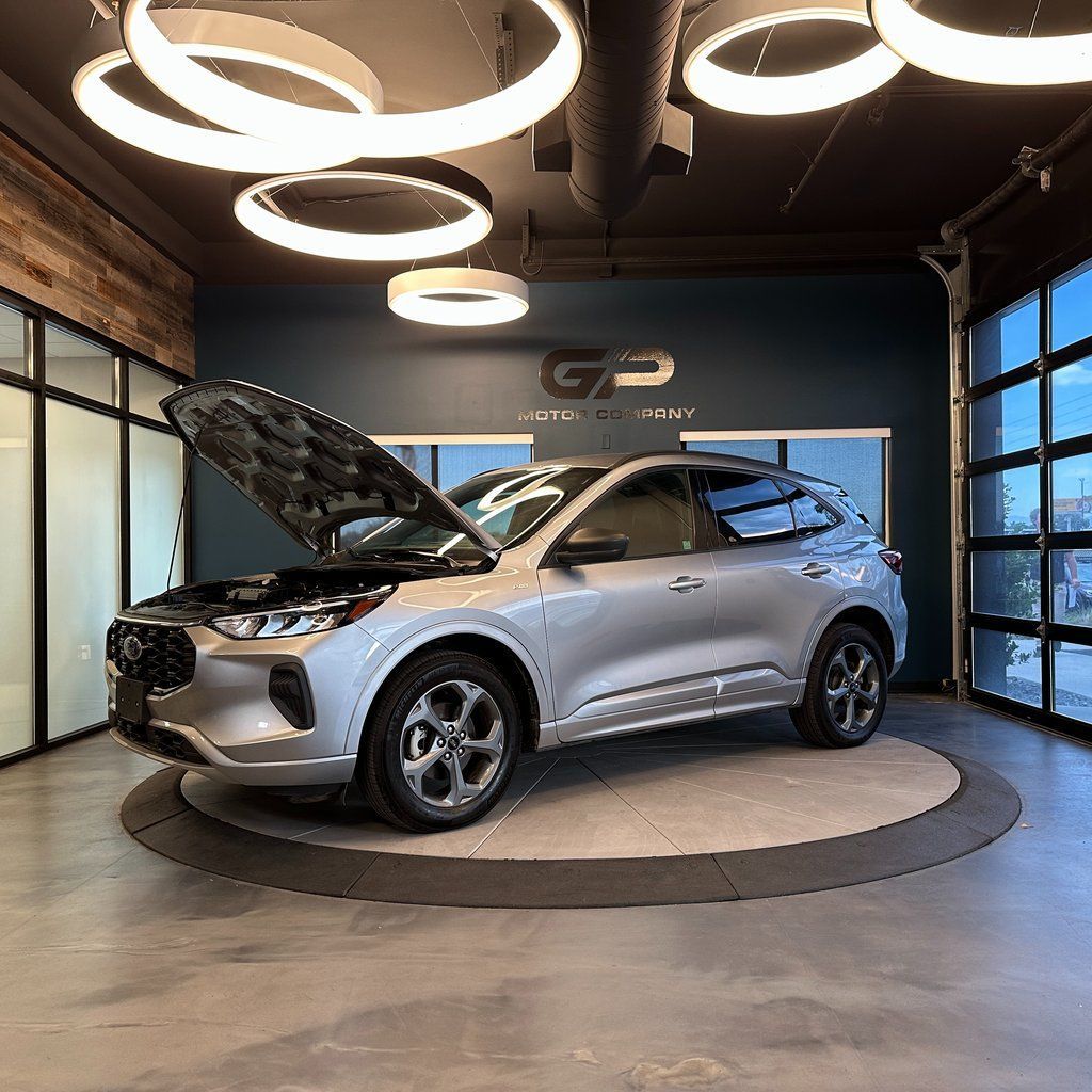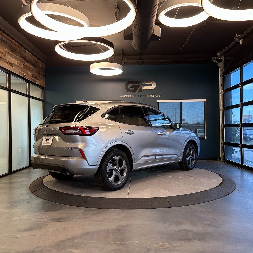 No accident history, AWD, ST-Line series with heated front seats, power liftgate, backup camera, heated steering wheel, 6 speakers, and more! 2023 Ford Escape ST-Line AWD with branded title from hail. 8-Speed Automatic 1.5L EcoBoost 26/32 City/Highway MPG