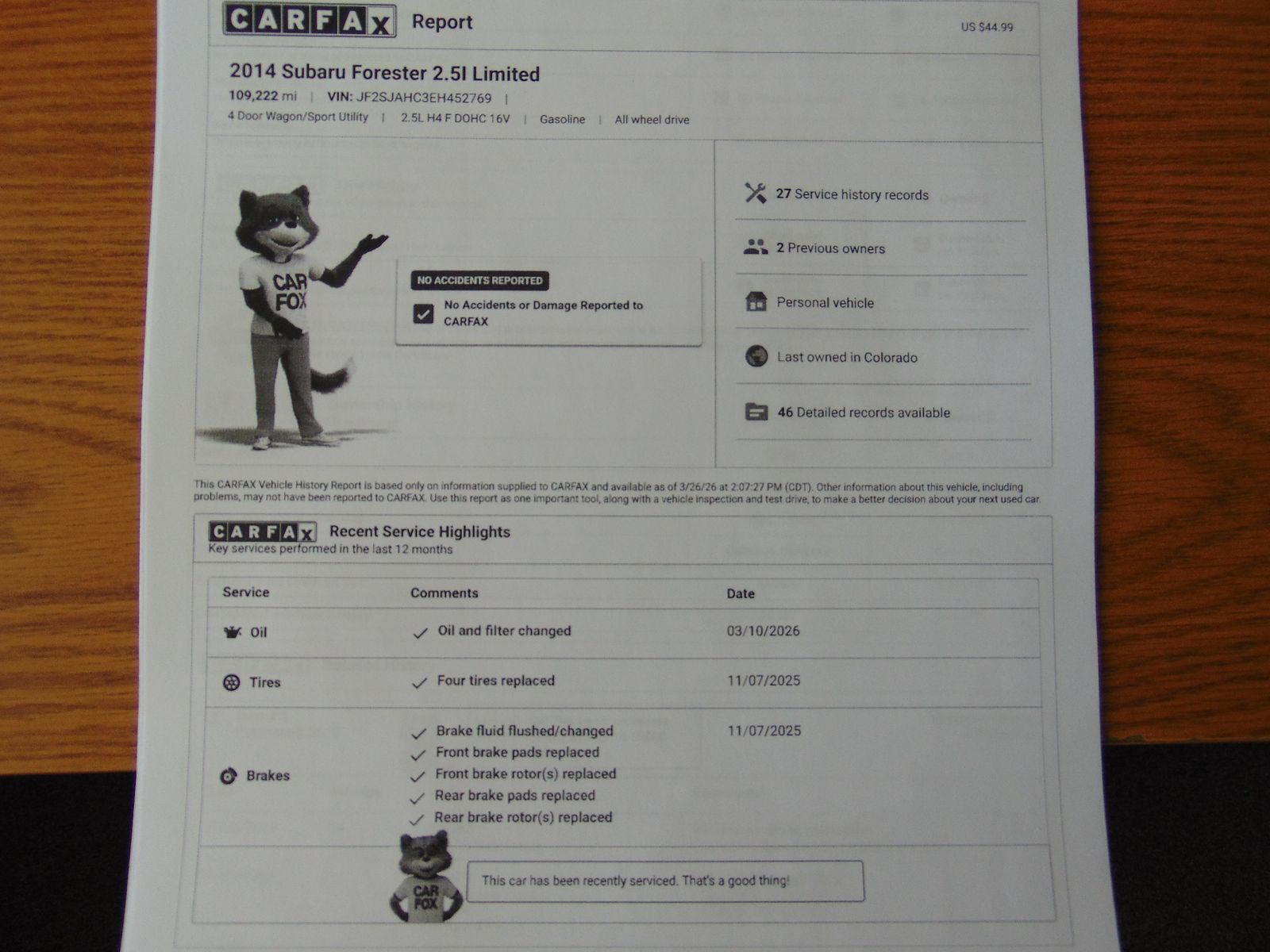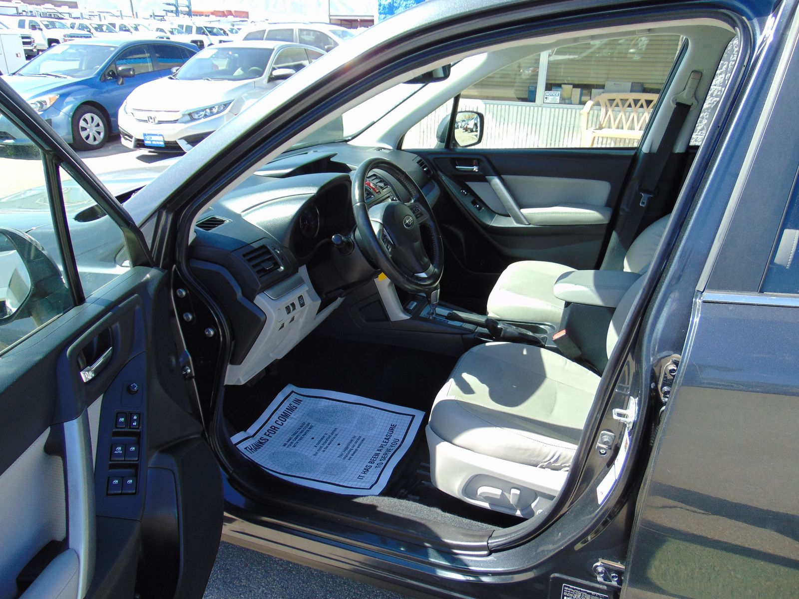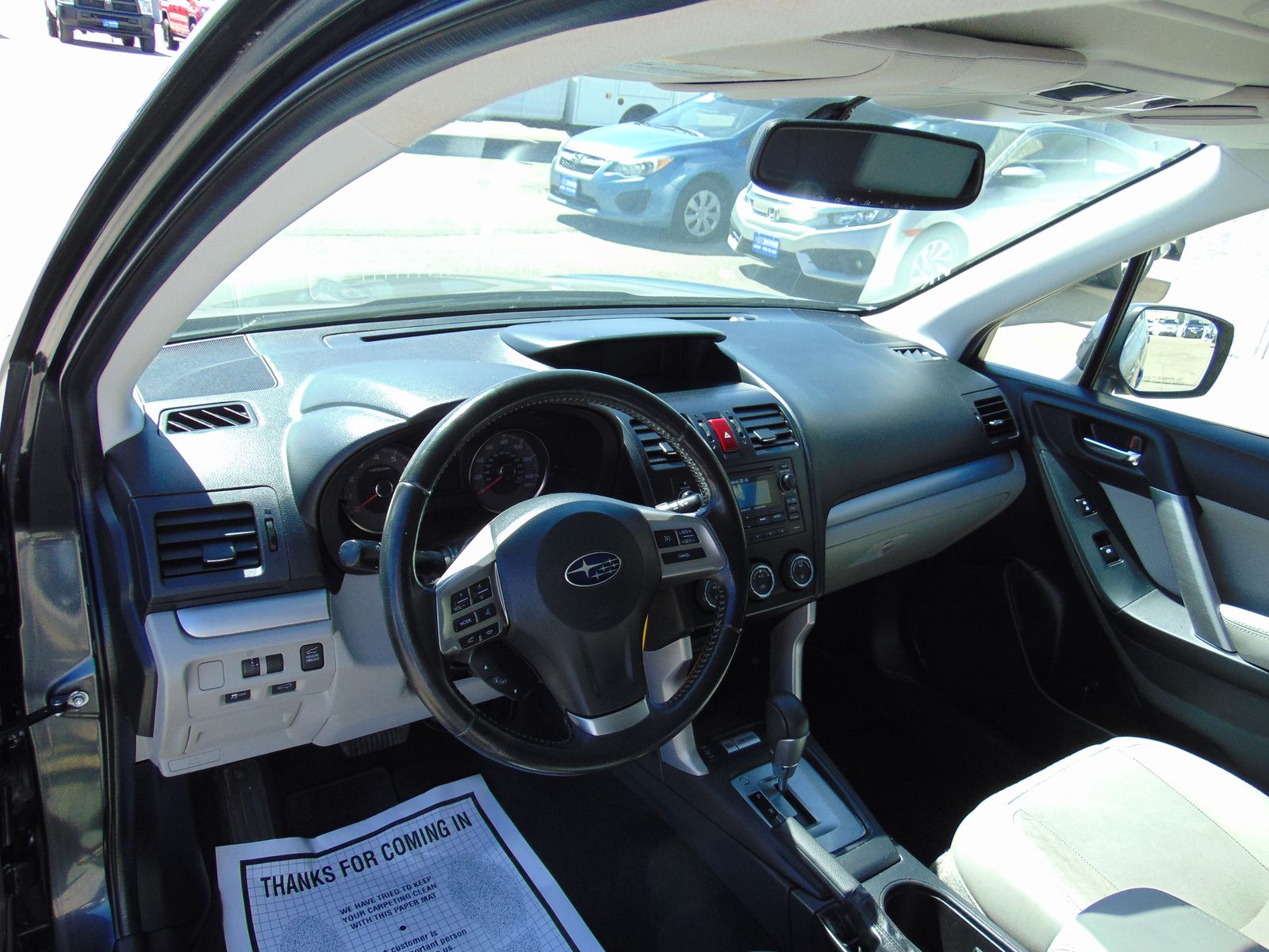 2014 SUBARU FORESTER, LIMITED, 2.5L 4CYL, AUTOMATIC, ALL WHEEL DRIVE, 109,212 MILES, MEDIUM GRAY LEATHER INTERIOR, 5 PASSENGER SEATING, X MODE, DRIVERS SIDE POWER SEAT WITH LUMBAR SUPPORT, HEATED FRONT SEATS, AUTO DIMMING REAR VIEW MIRROR, PANORAMIC SUNROOF, CD PLAYER WITH STEERING WHEEL AUDIO CONTROLS, BLUETOOTH, BACKUP CAMERA, CLIMATE CONTROL, USB/AUX PORT, UNIVERSAL GARAGE DOOR OPENER, COMPASS, TOW PACKAGE, LUGGAGE RACK, FACTORY ALLOY WHEELS. 2 OWNERS WITH NO ACCIDENTS AND 27 SERVICE RECORDS. CLEAN TITLE AND ACTUAL MILES. THIS FORESTER IS IN EXCELLENT CONDITION!